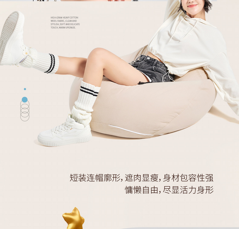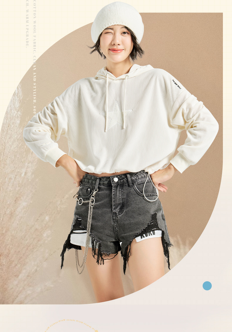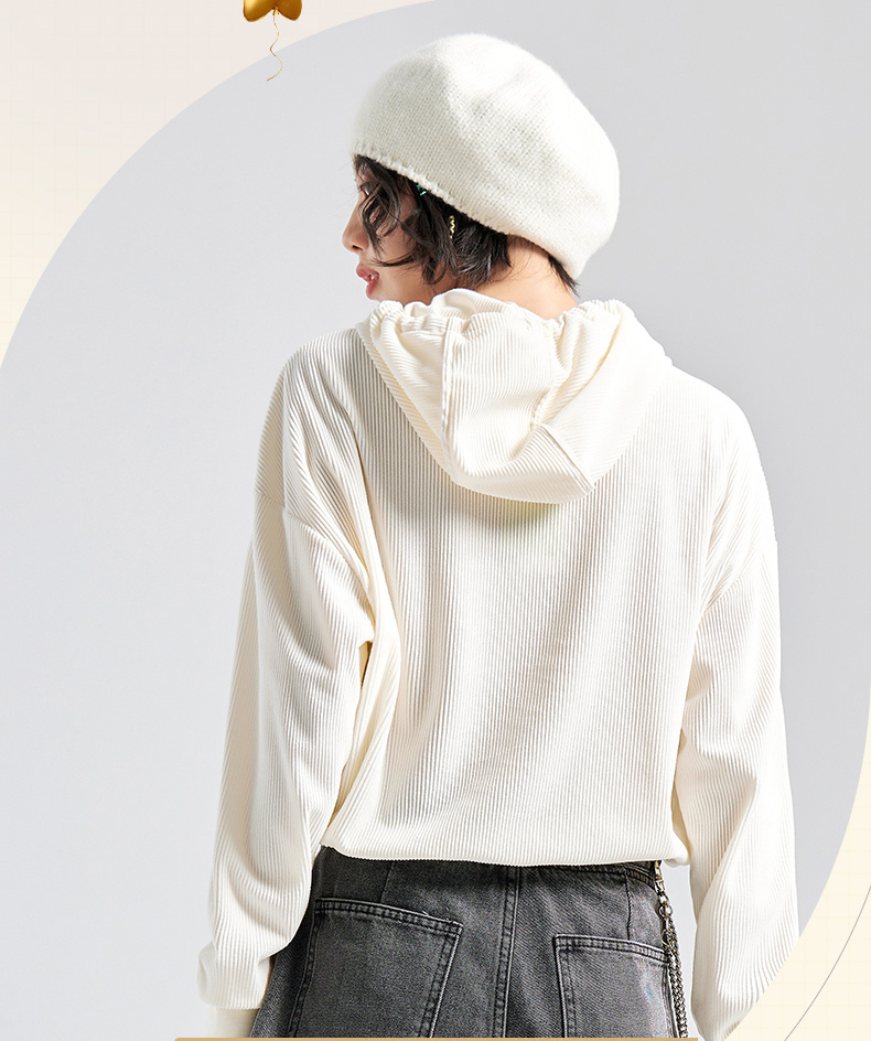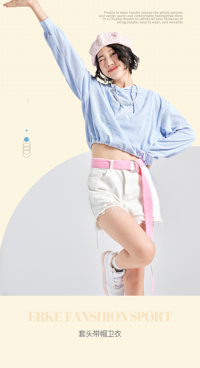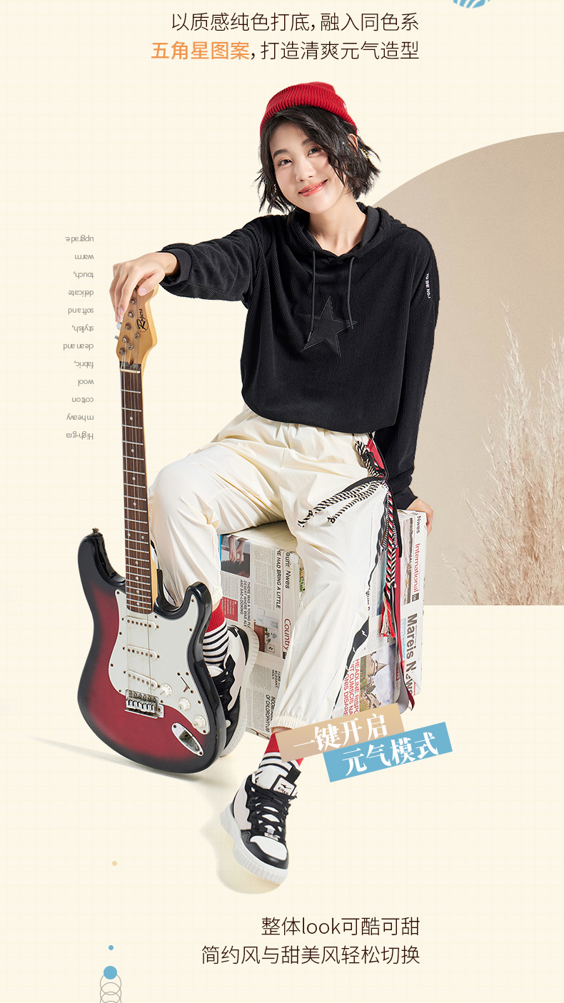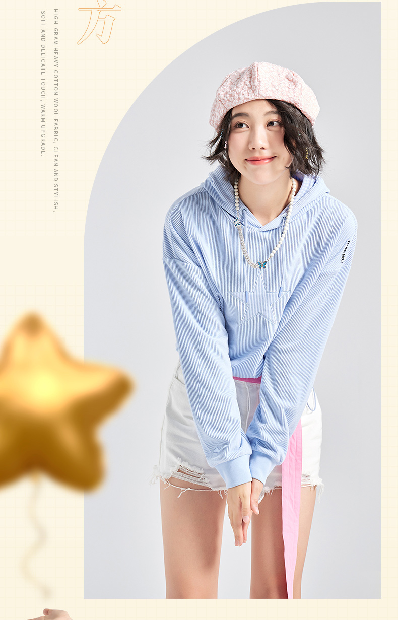 鸿星尔克卫衣女春秋女士灯芯绒宽松运动连帽星星卫衣短款上衣女装