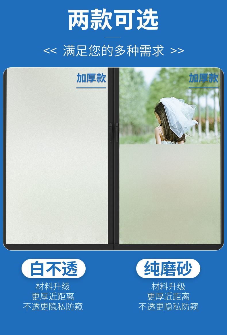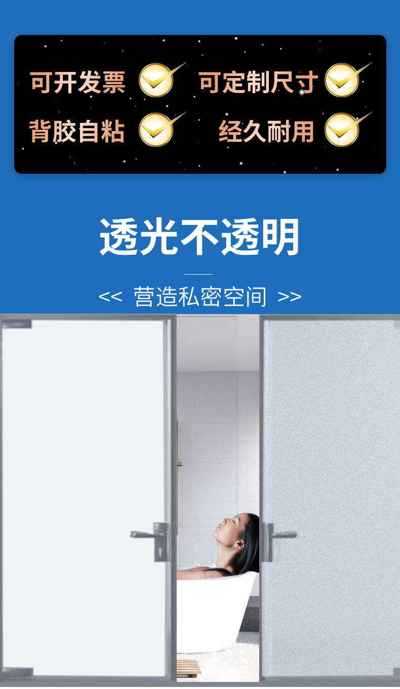 磨砂玻璃贴纸透光带胶自粘浴室卫生间办公室窗户贴膜防窥视防走光