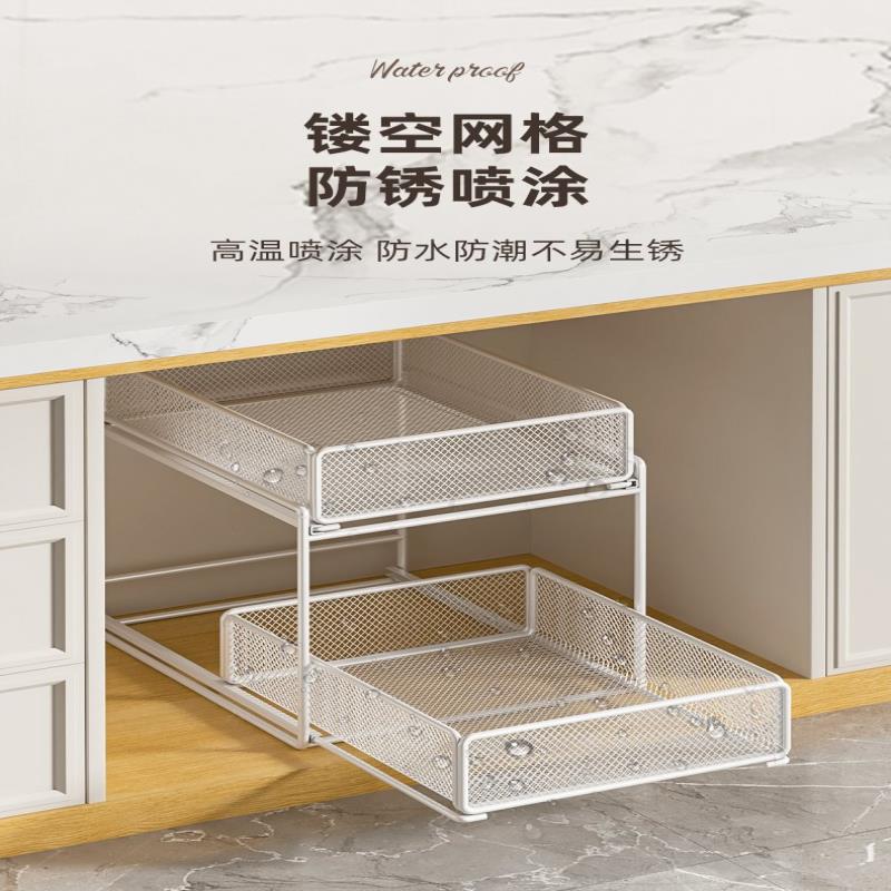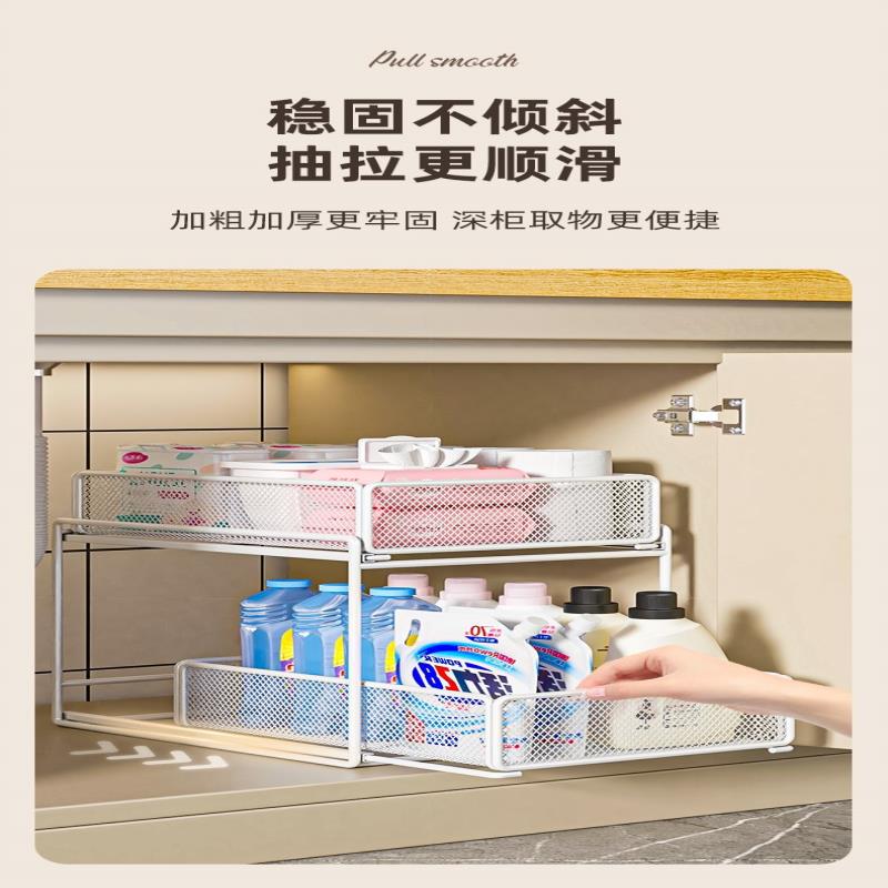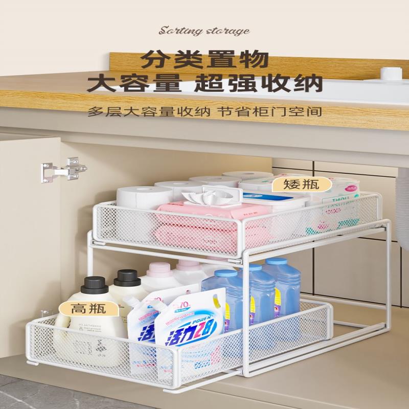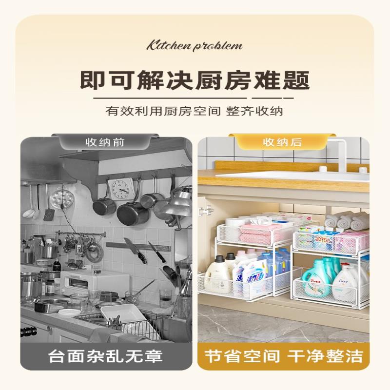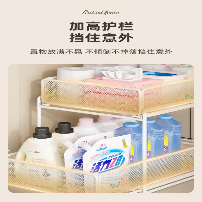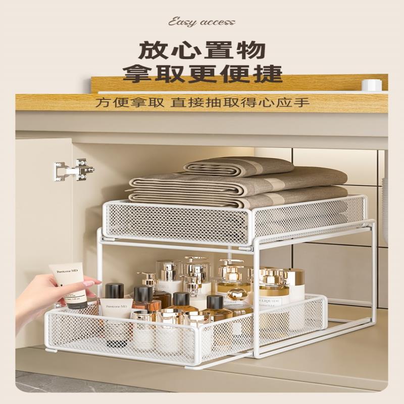 下水槽抽拉置物架浴室卫生间柜内收纳架洗手台洗手池厨房橱柜分层