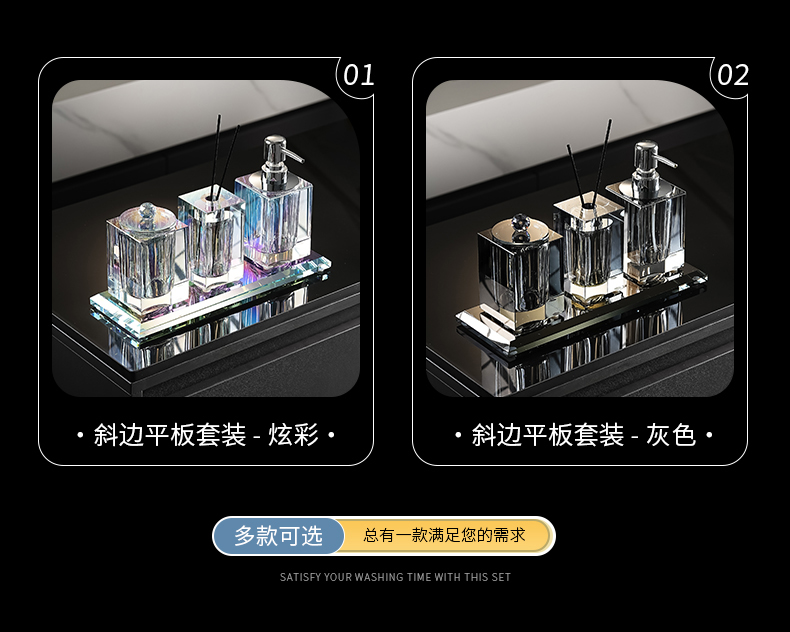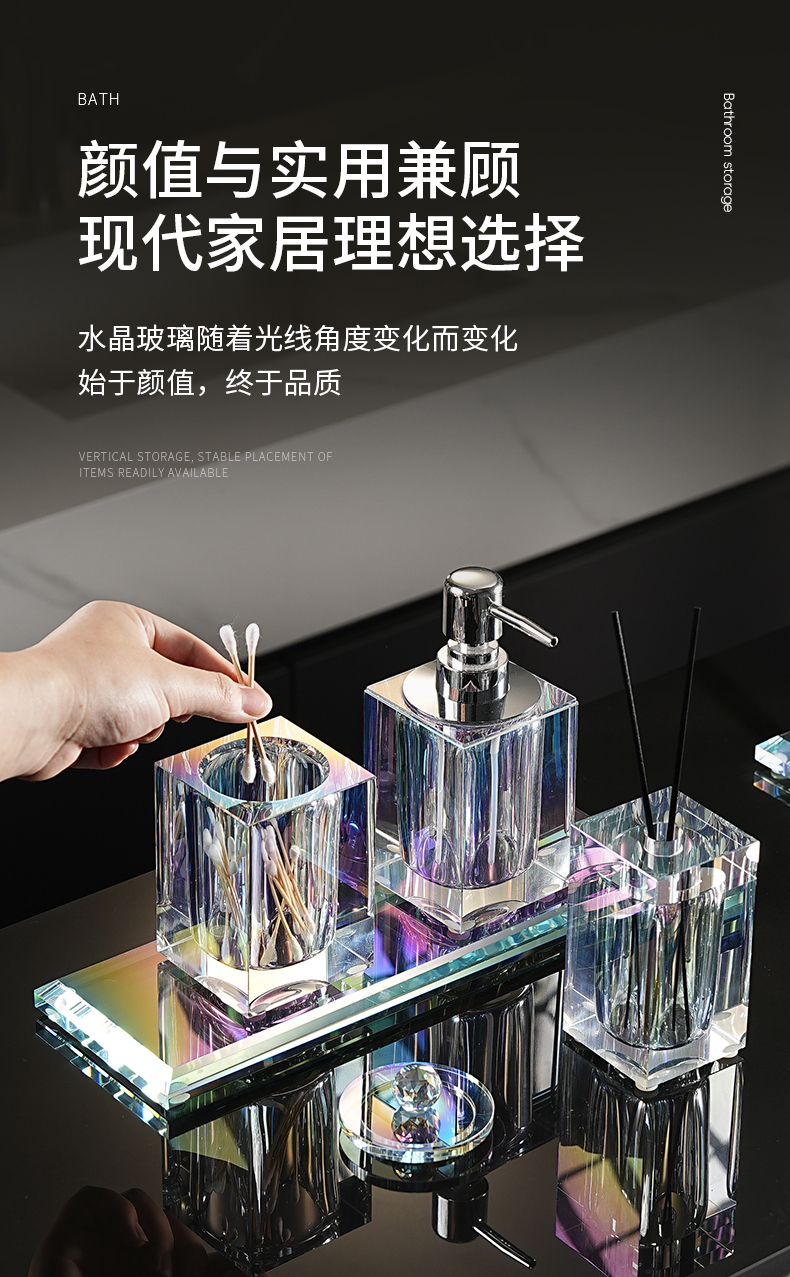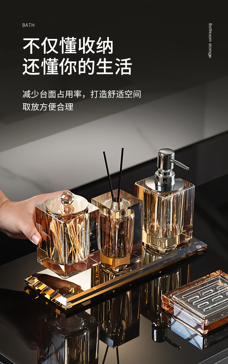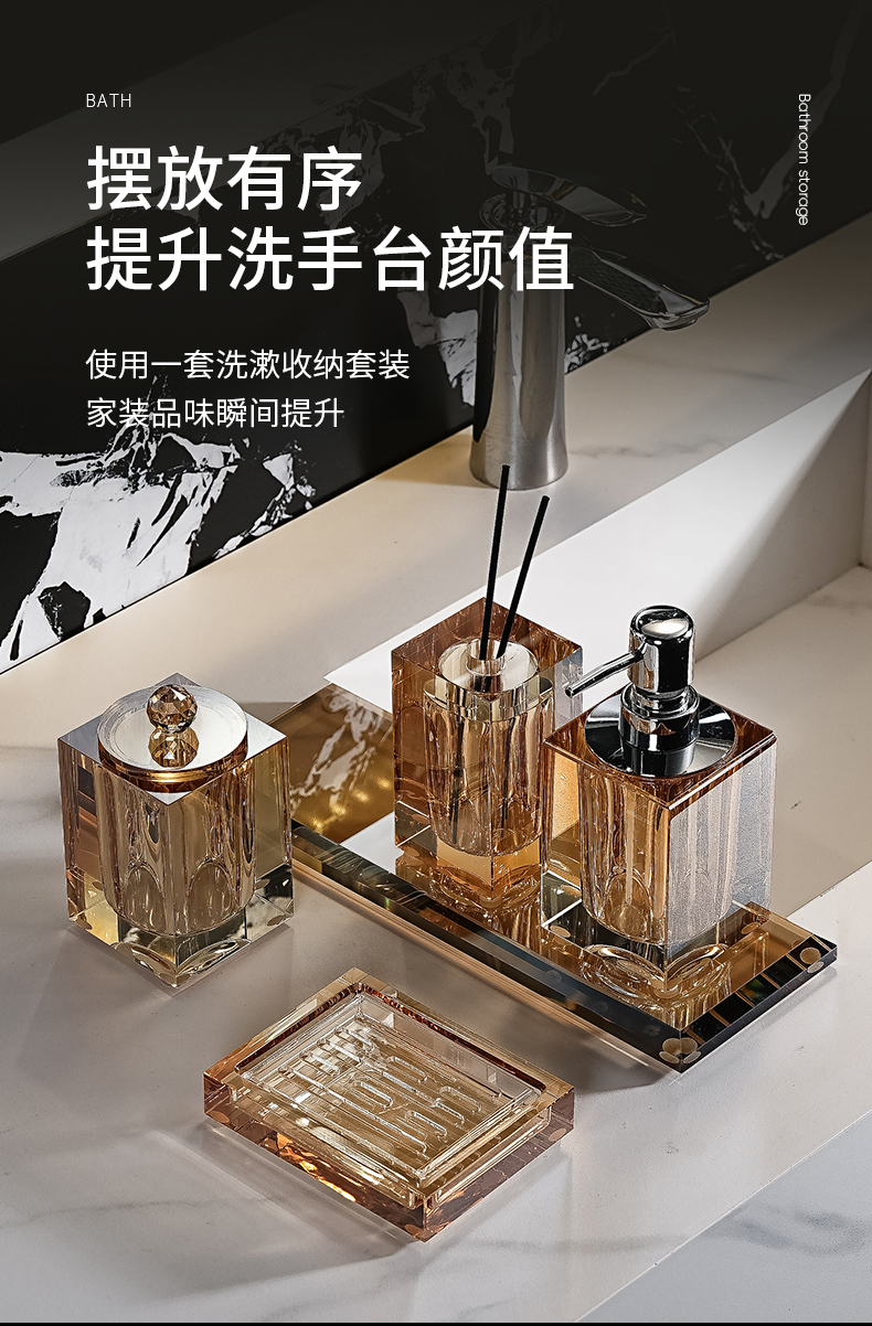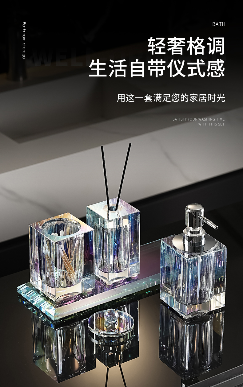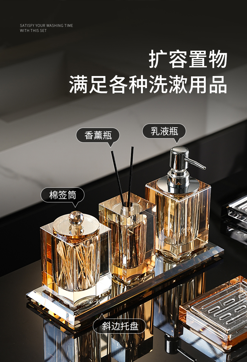 水晶玻璃浴室洗漱用品套件样板房卫生间洗手台香薰乳液瓶组合收纳