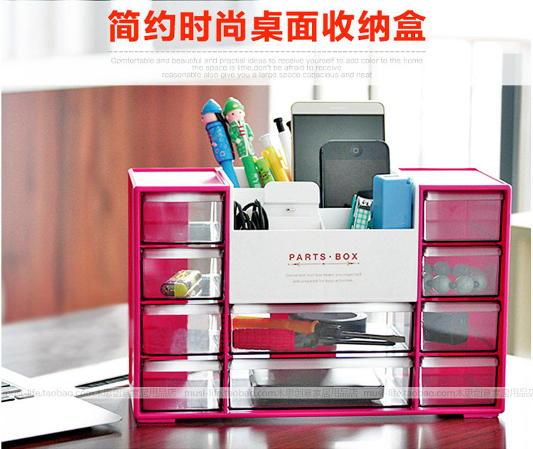 日本大号桌面办公室用品文具盒收纳盒塑料透明抽屉式多功能整理盒