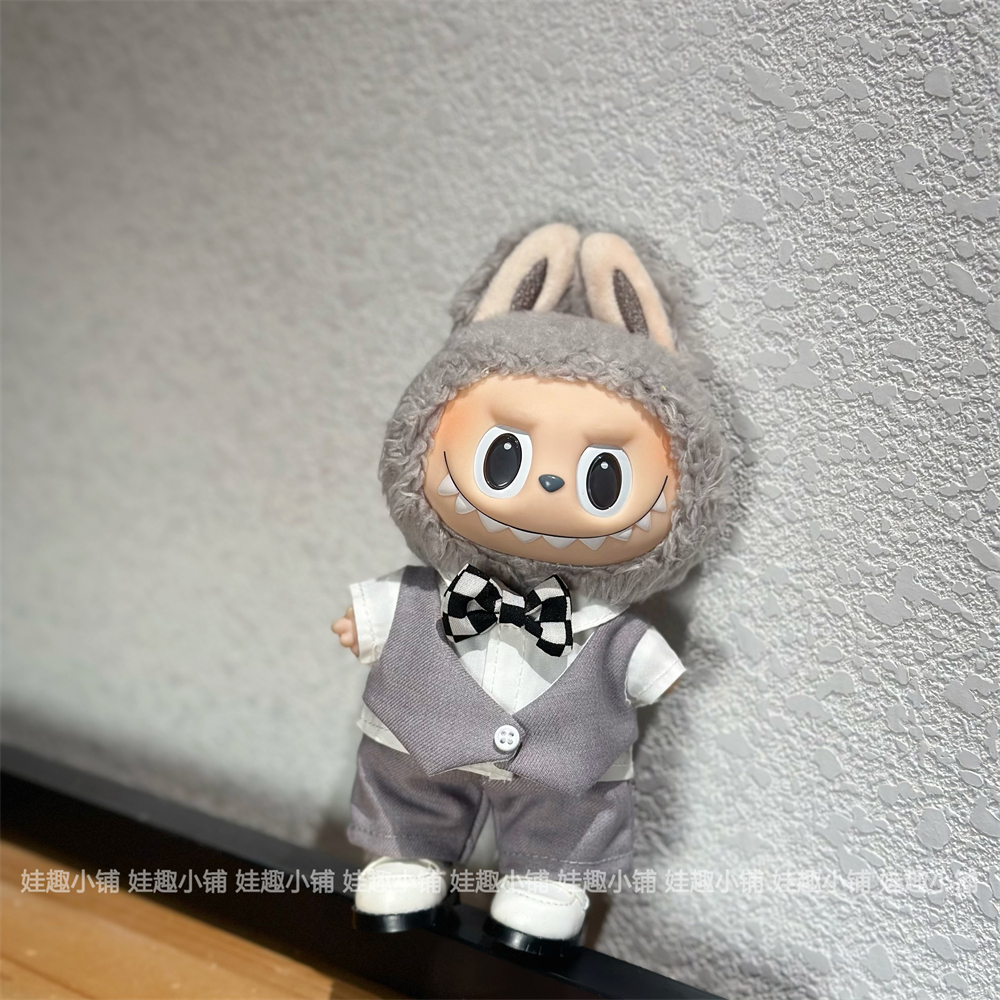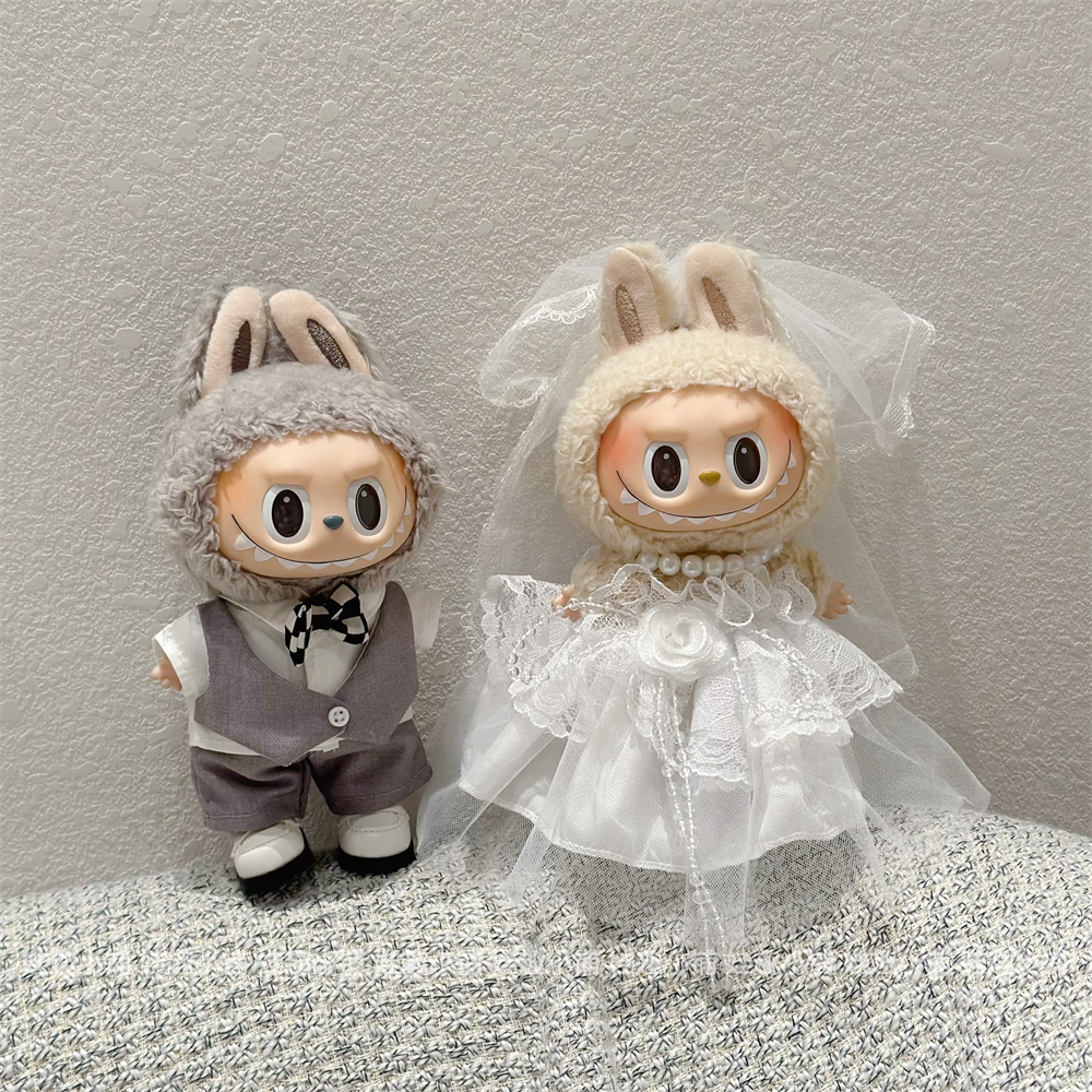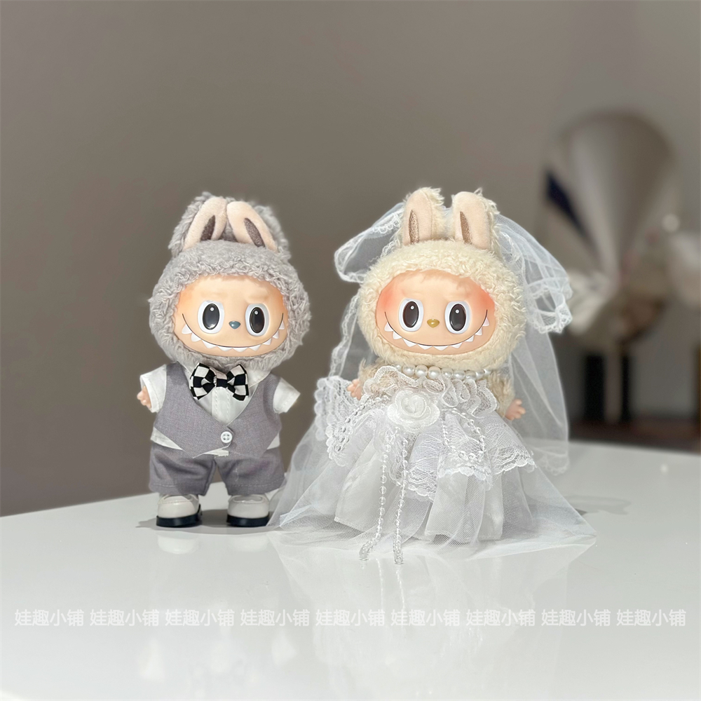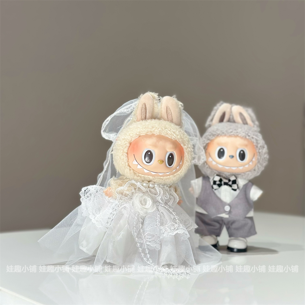 现货17cm拉布布labubu挂件公仔灰色西装白色婚纱裙子替换装娃衣服