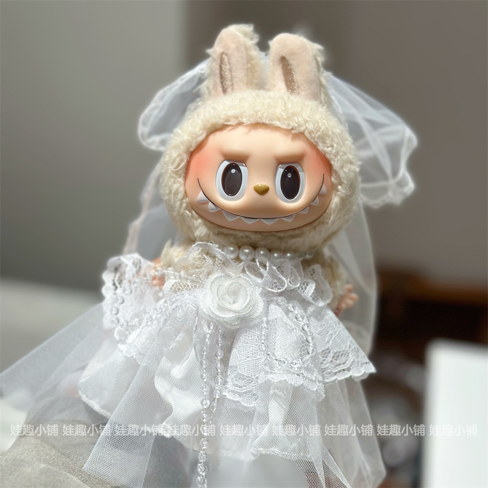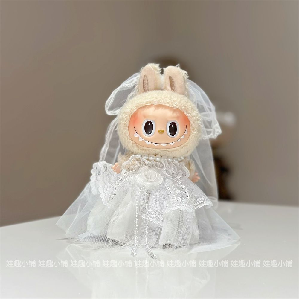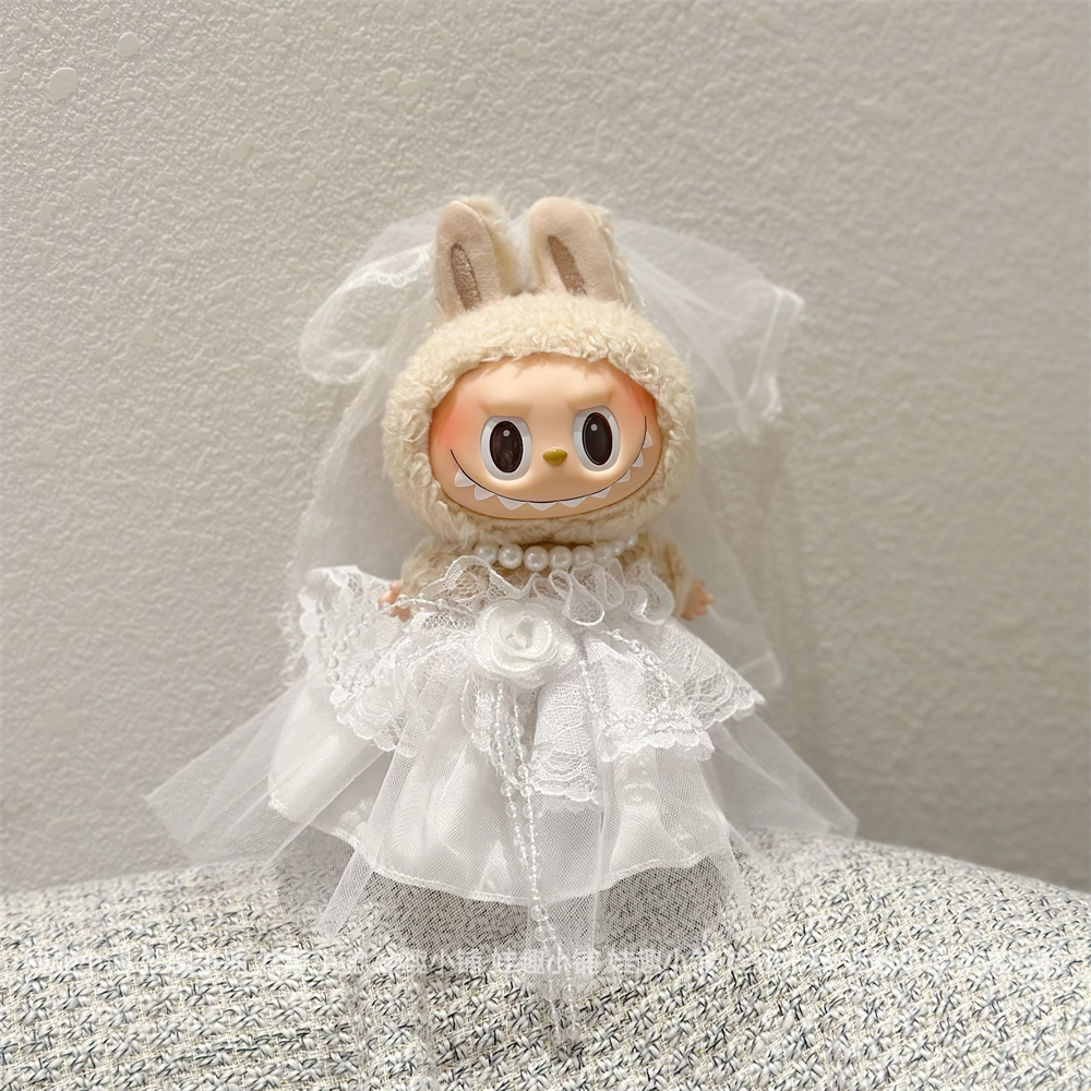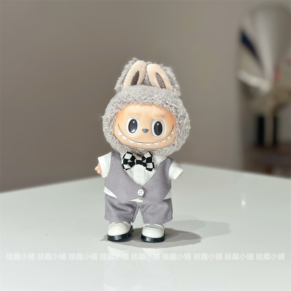 现货17cm拉布布labubu挂件公仔灰色西装白色婚纱裙子替换装娃衣服