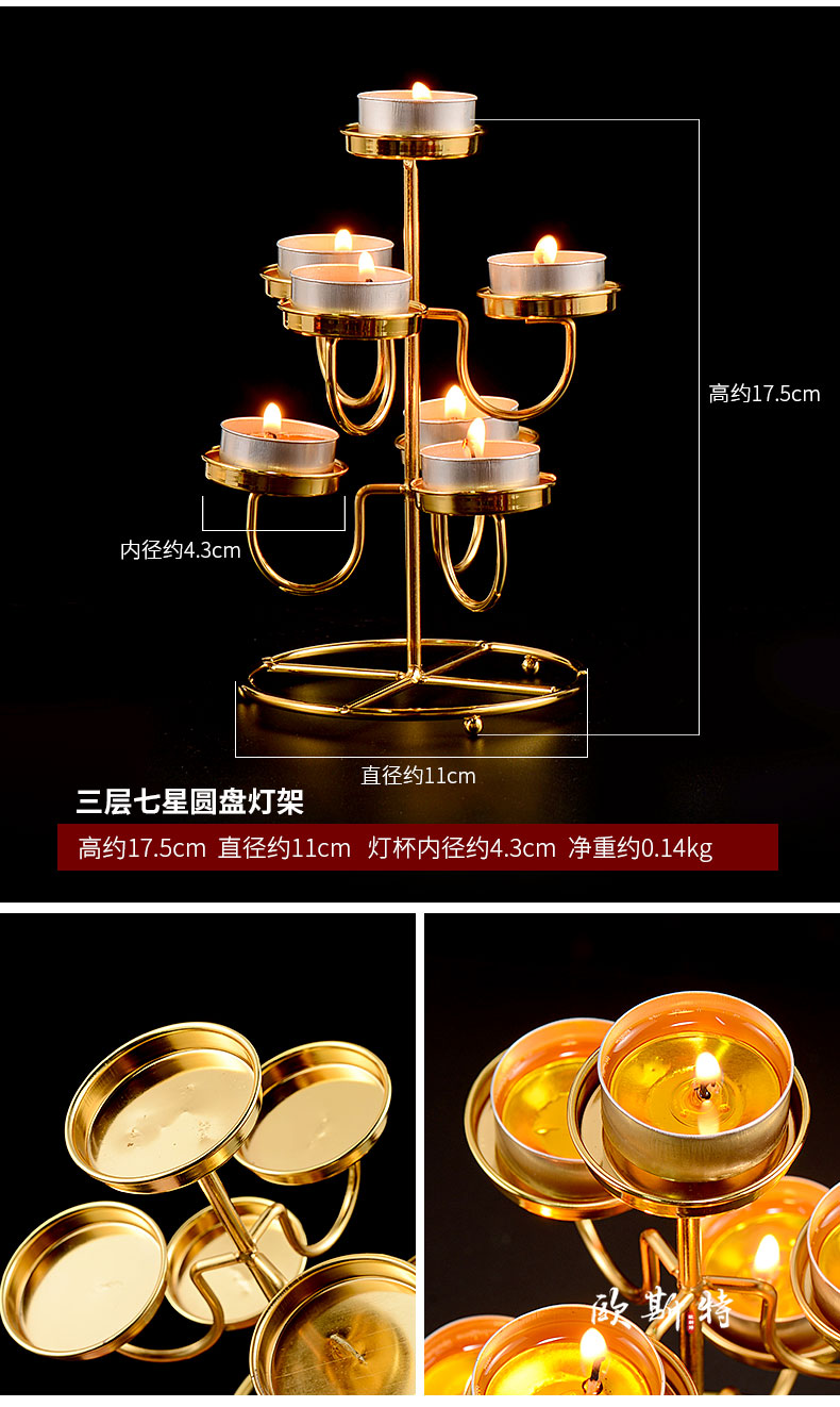 欧斯特七星酥油灯灯架 酥油灯灯盏 莲花灯座家用长明灯合金蜡烛台