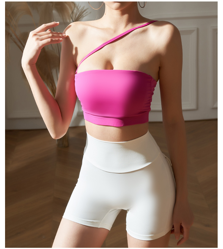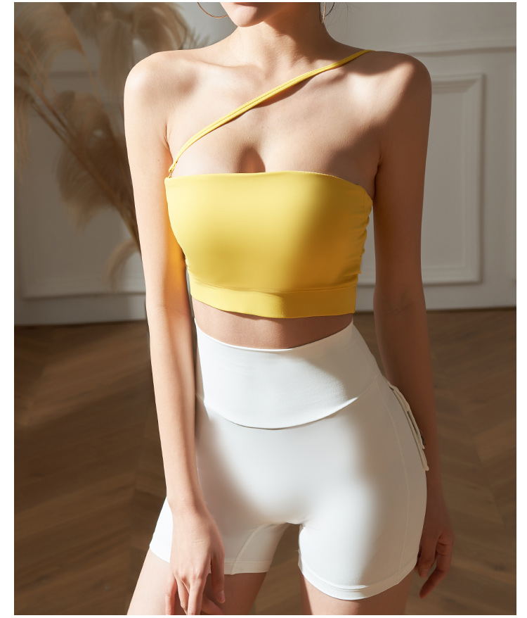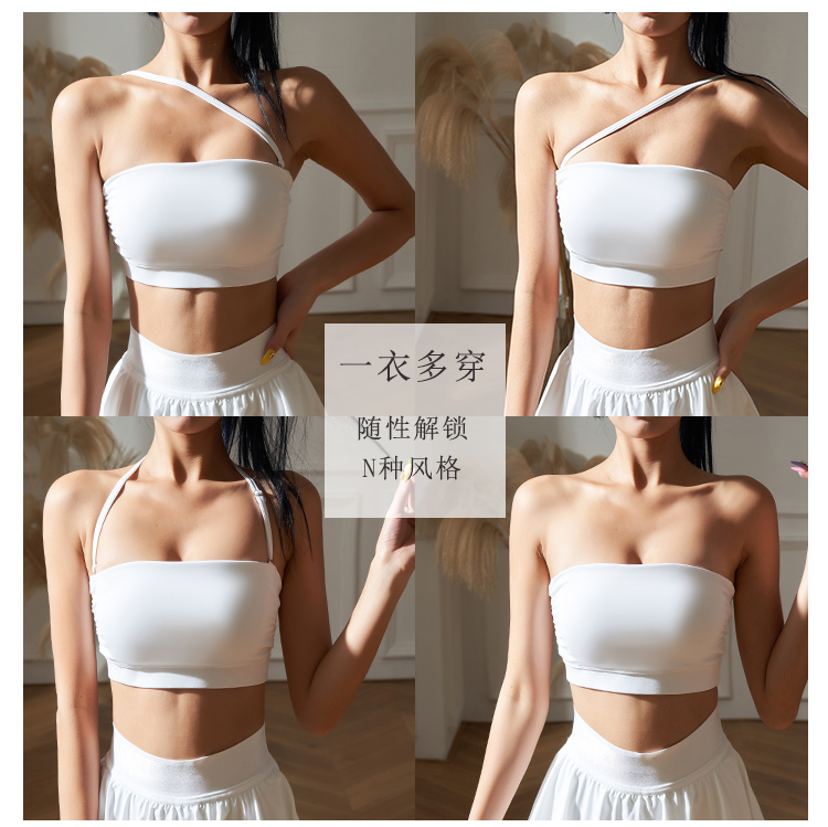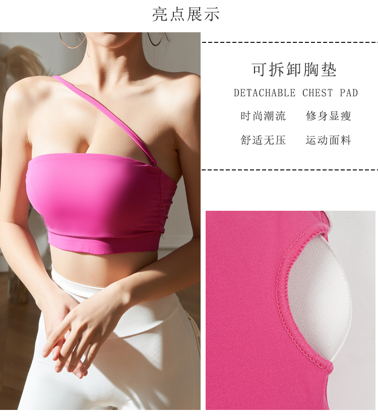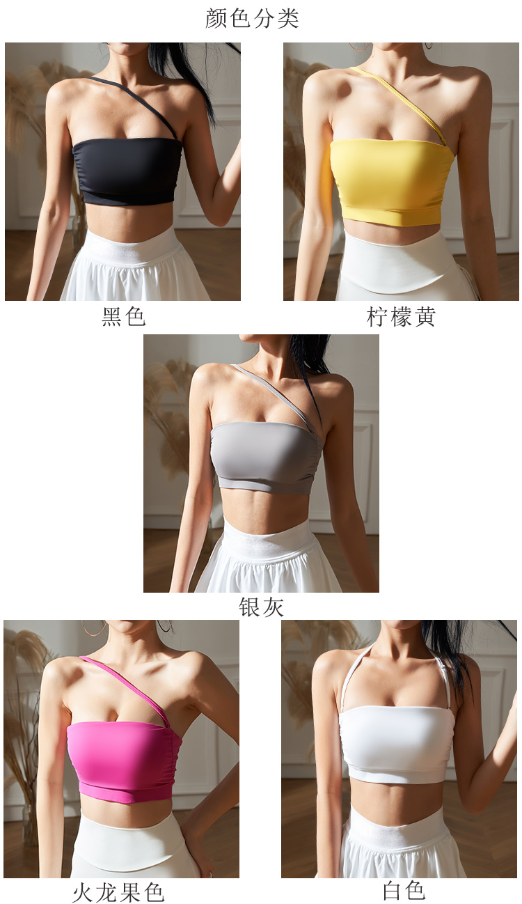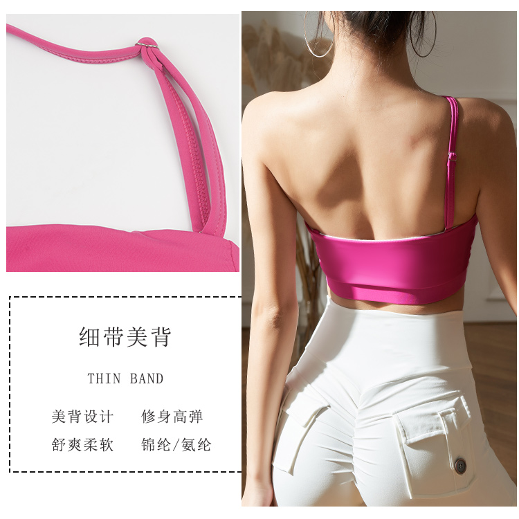 柚柚单肩挂脖防滑运动内衣聚拢防震跑步健身文胸抹胸裸感瑜伽背心
