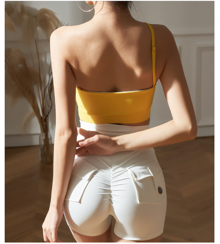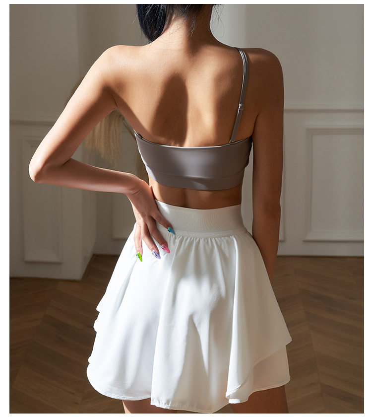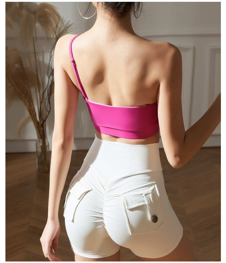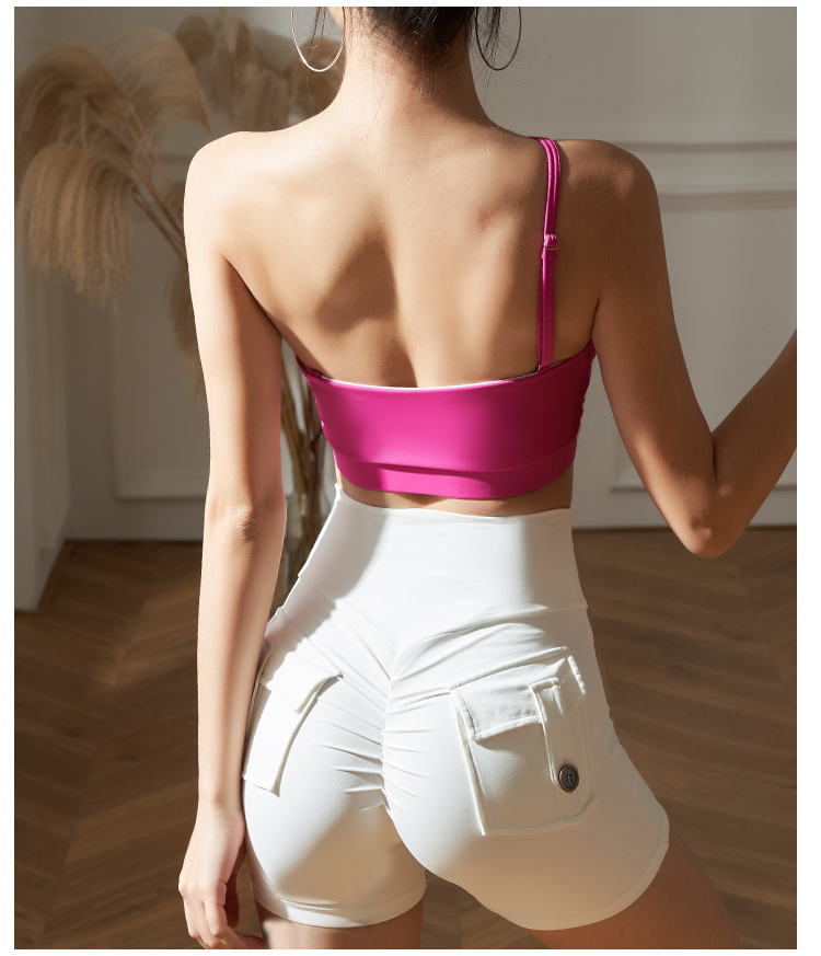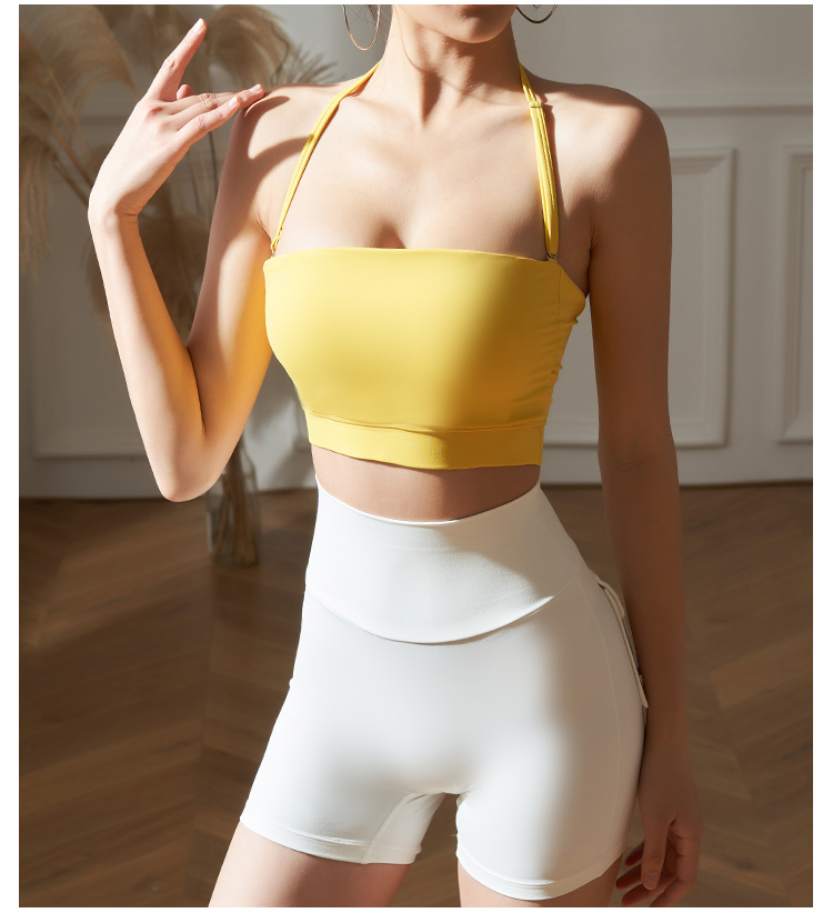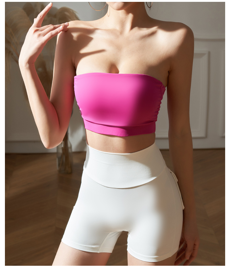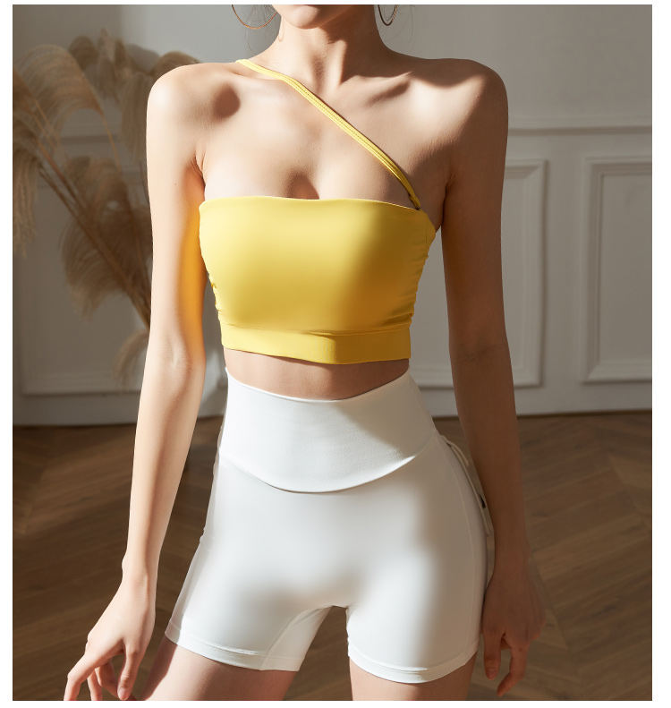 柚柚单肩挂脖防滑运动内衣聚拢防震跑步健身文胸抹胸裸感瑜伽背心
