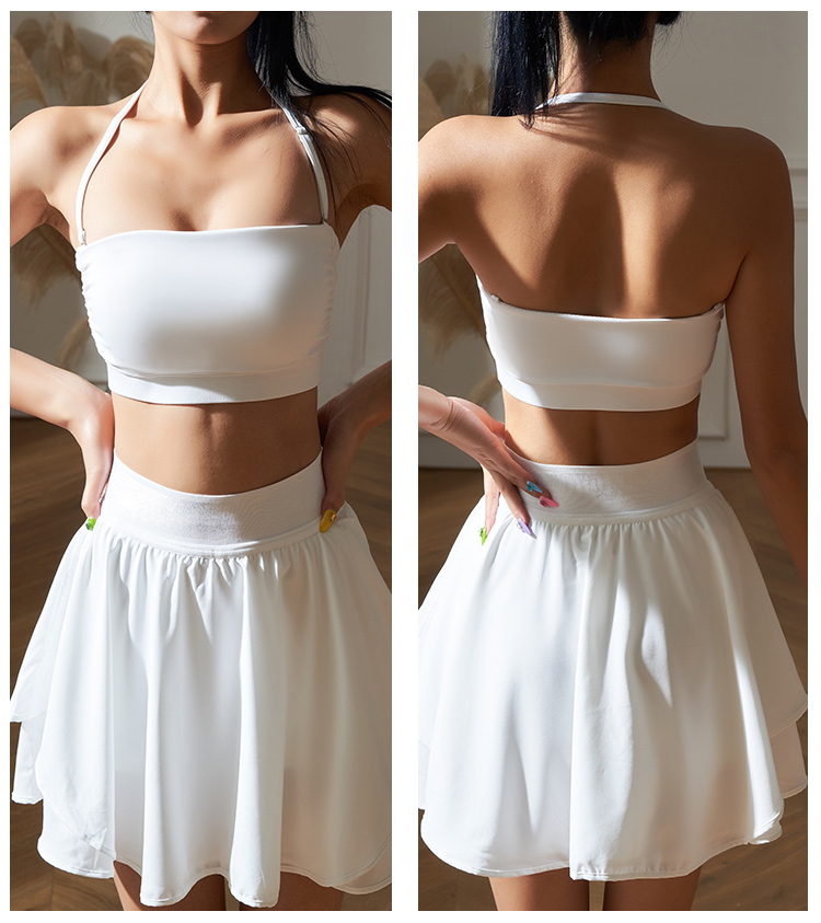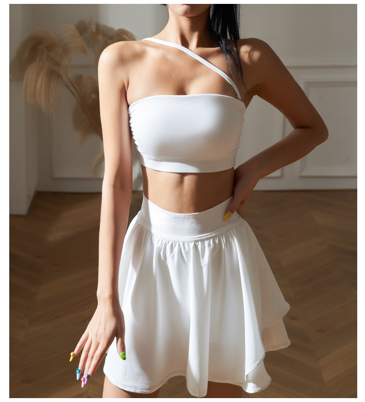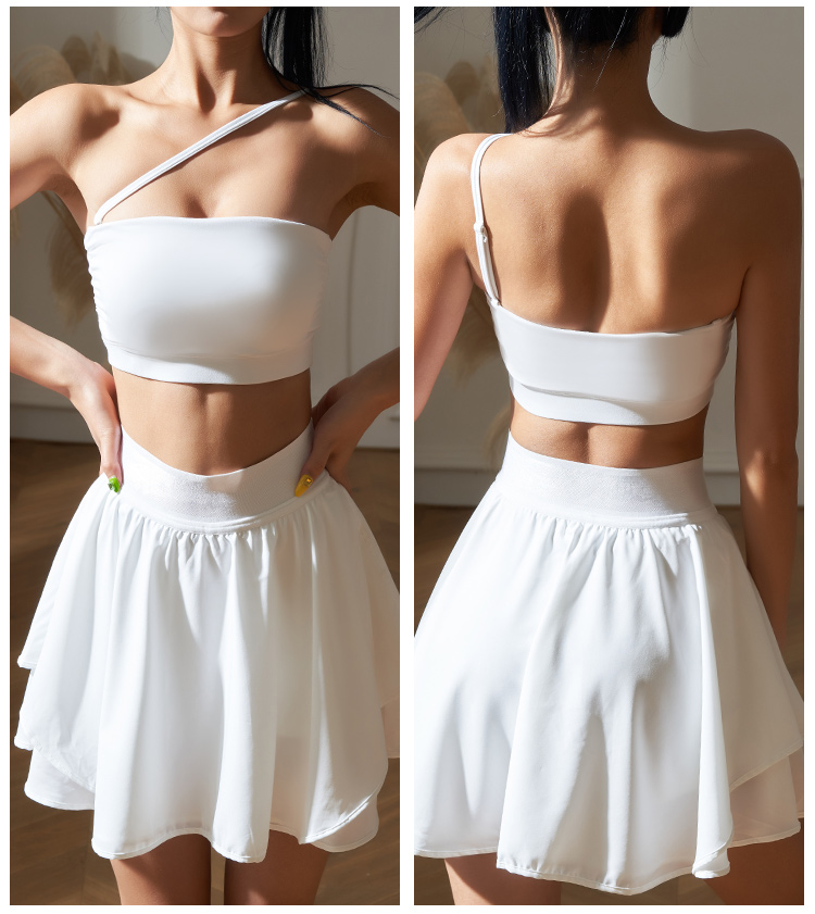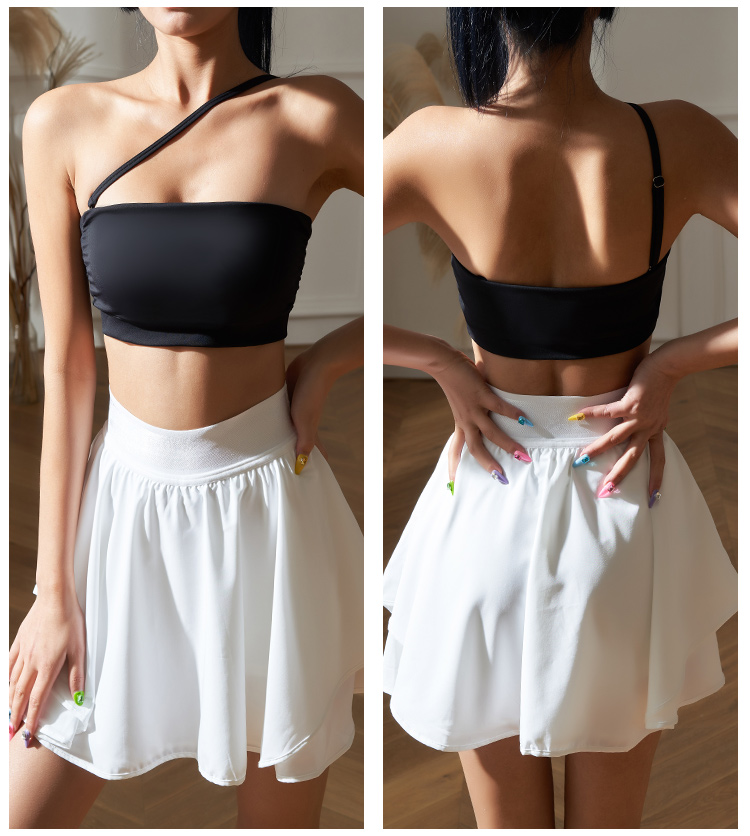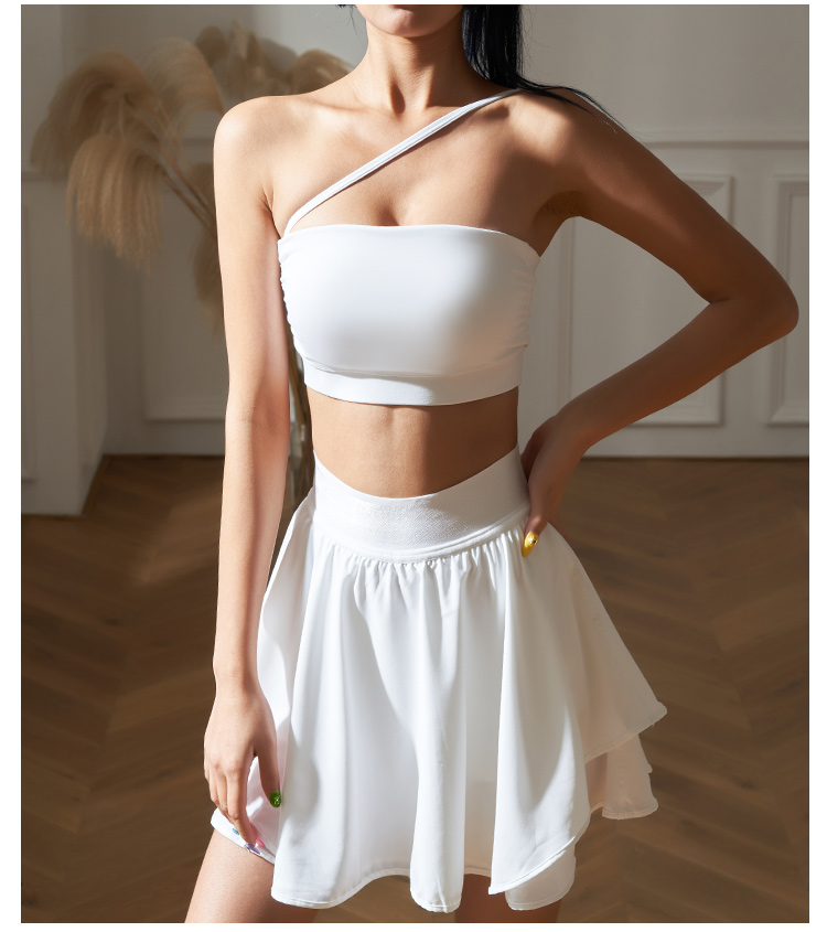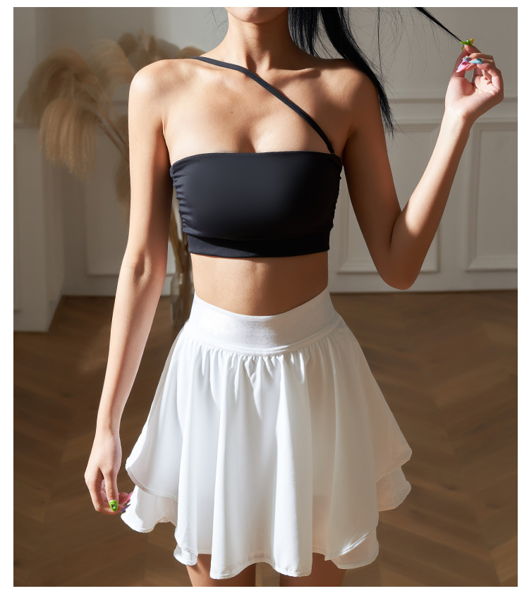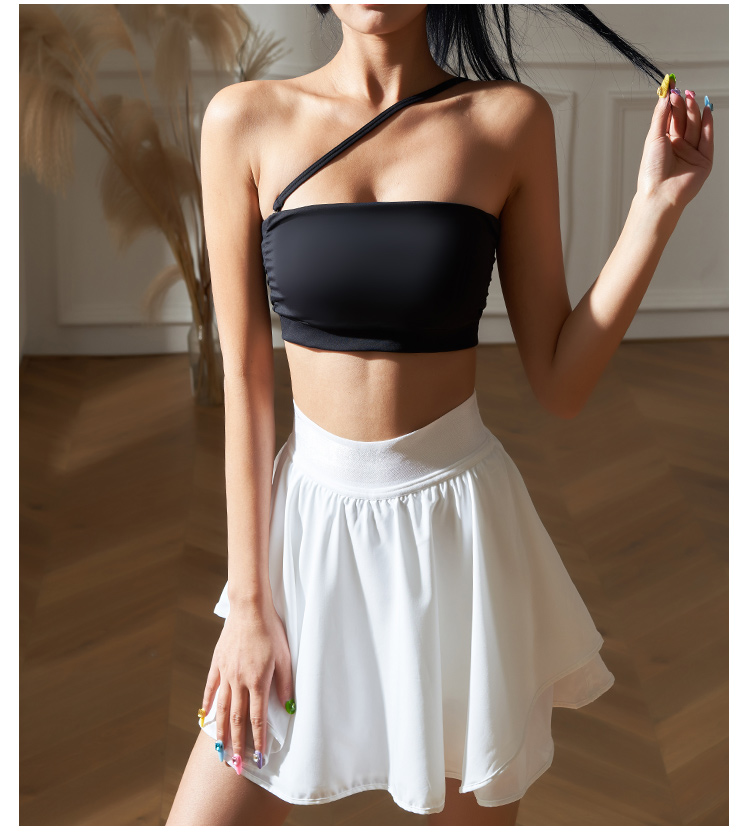 柚柚单肩挂脖防滑运动内衣聚拢防震跑步健身文胸抹胸裸感瑜伽背心