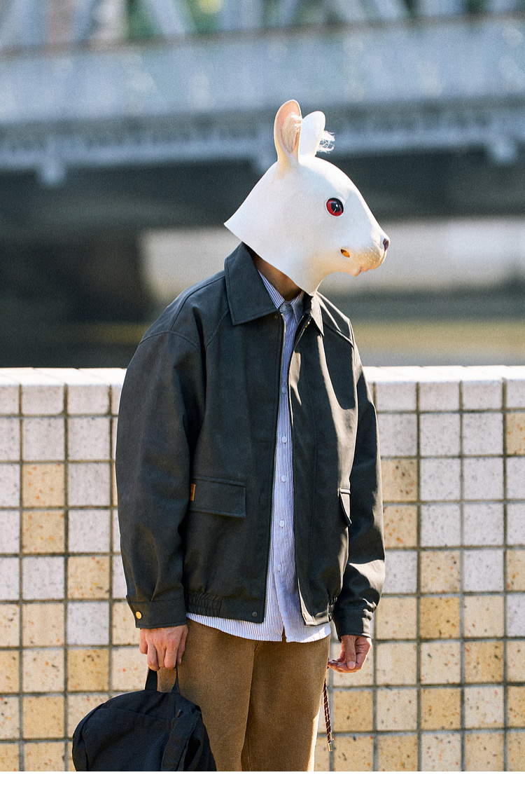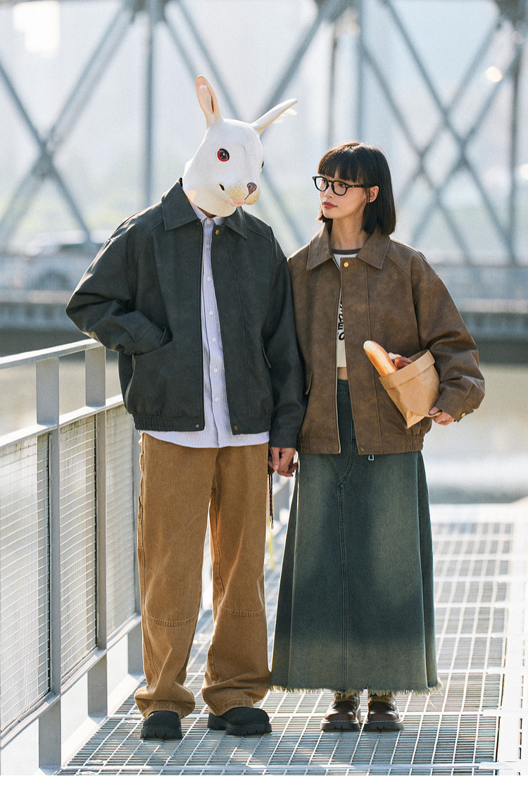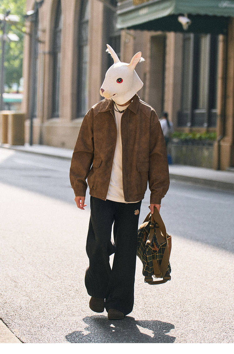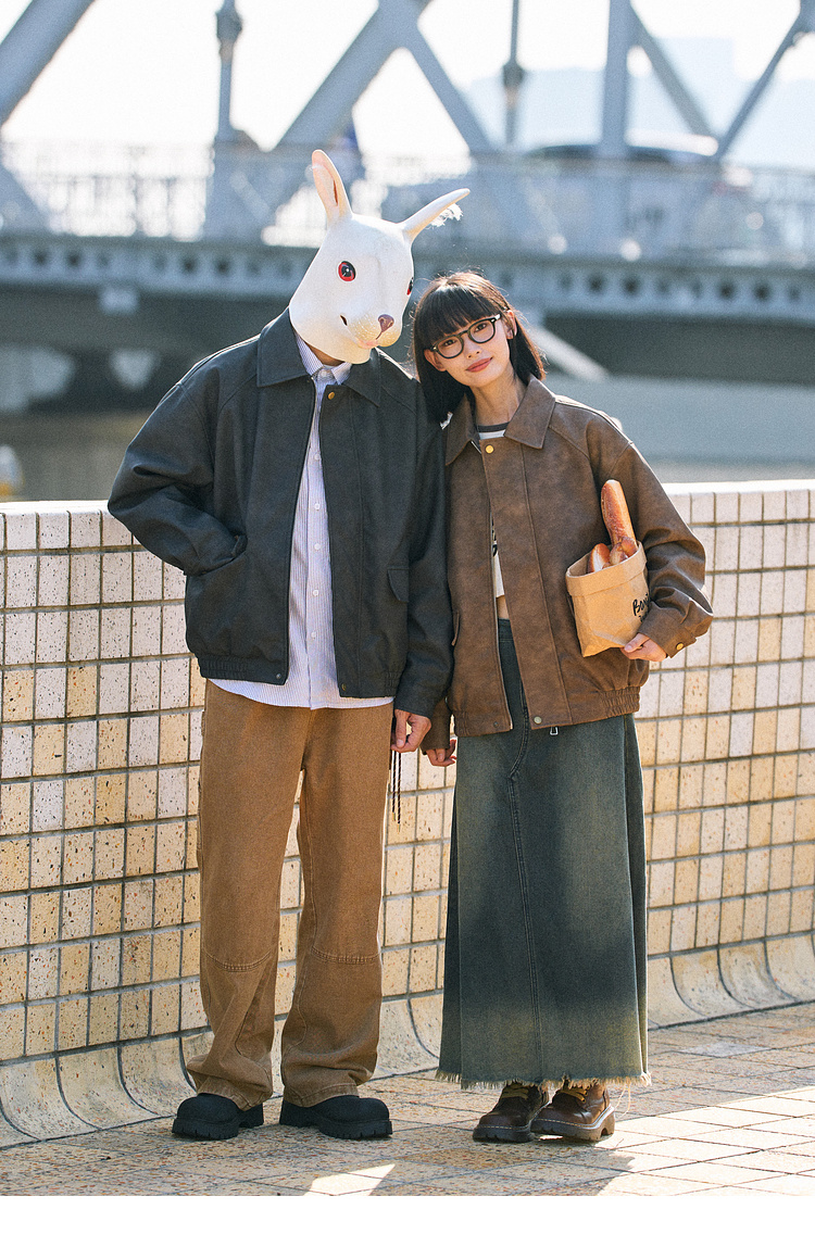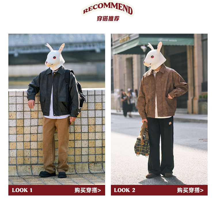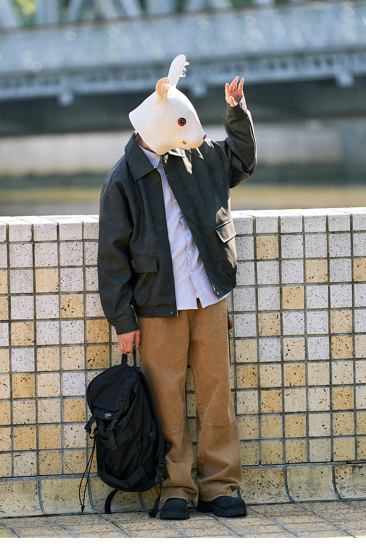 兔先森春秋款日系复古纯色翻领pu皮衣外套男工装皮夹克痞帅机车服