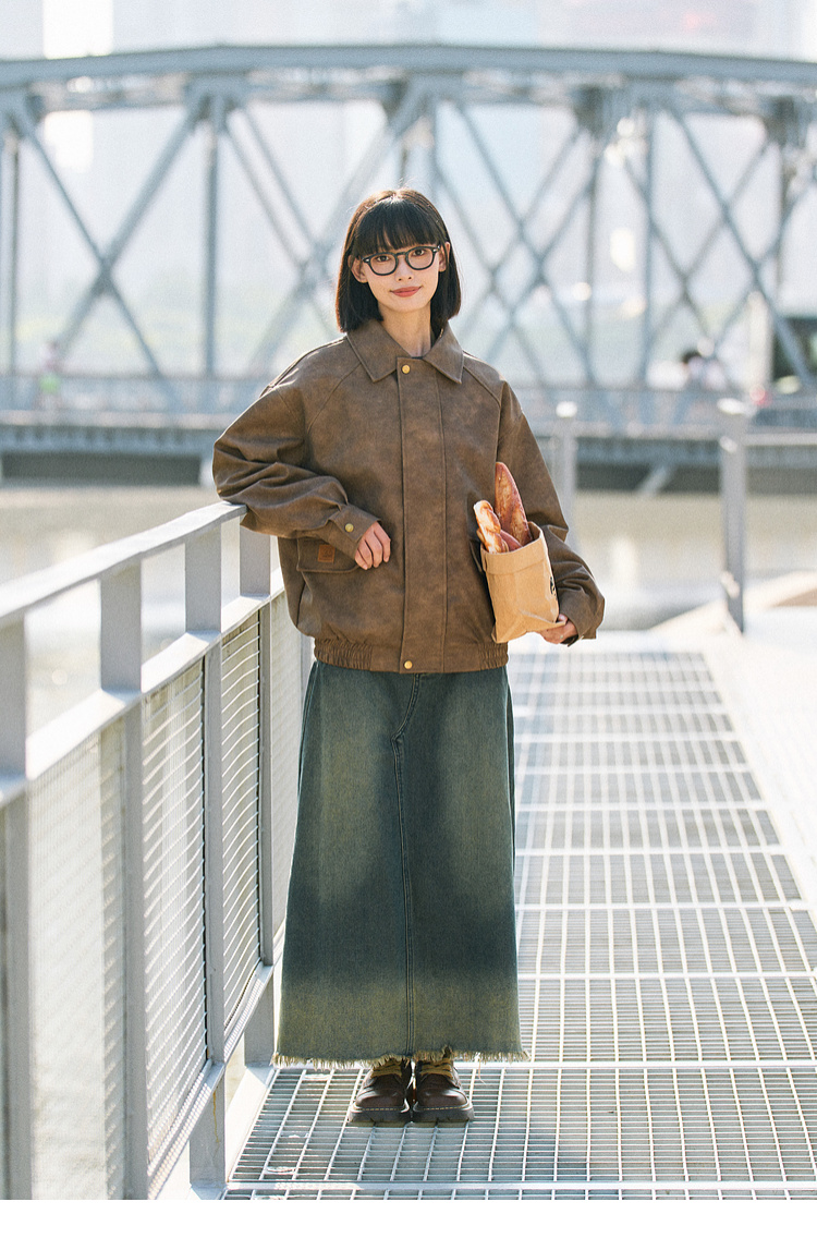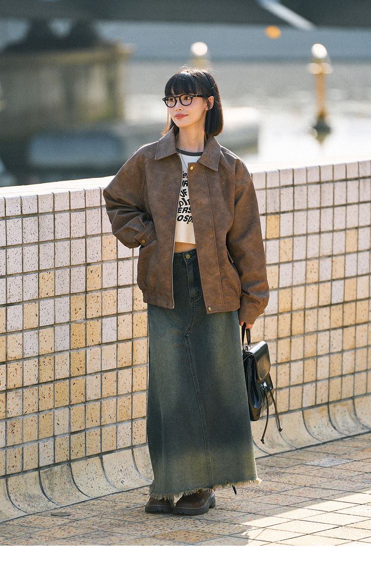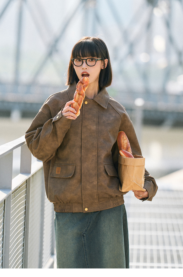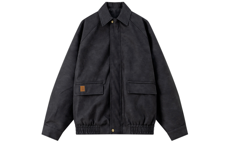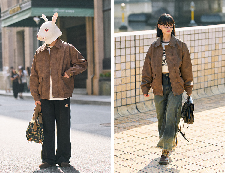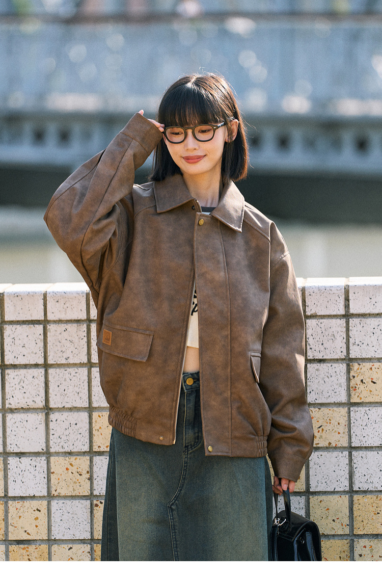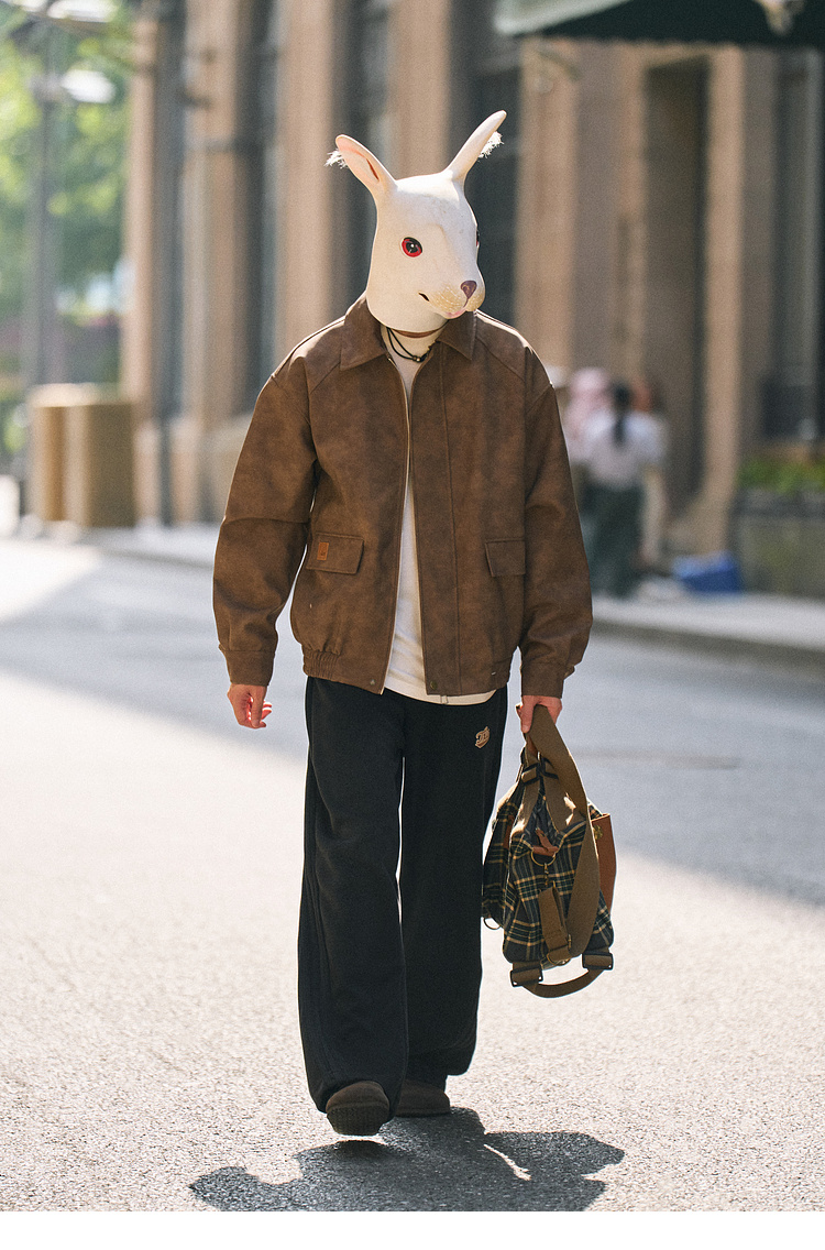 兔先森春秋款日系复古纯色翻领pu皮衣外套男工装皮夹克痞帅机车服