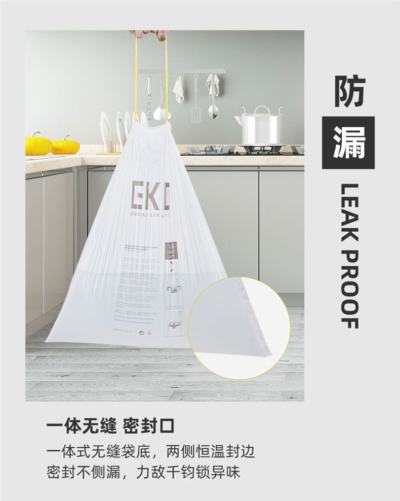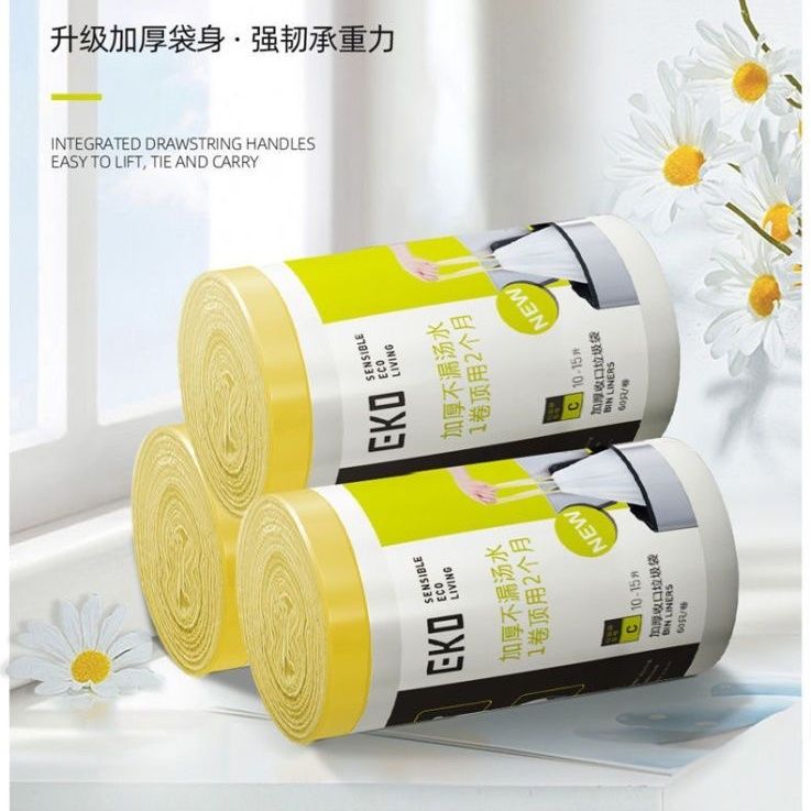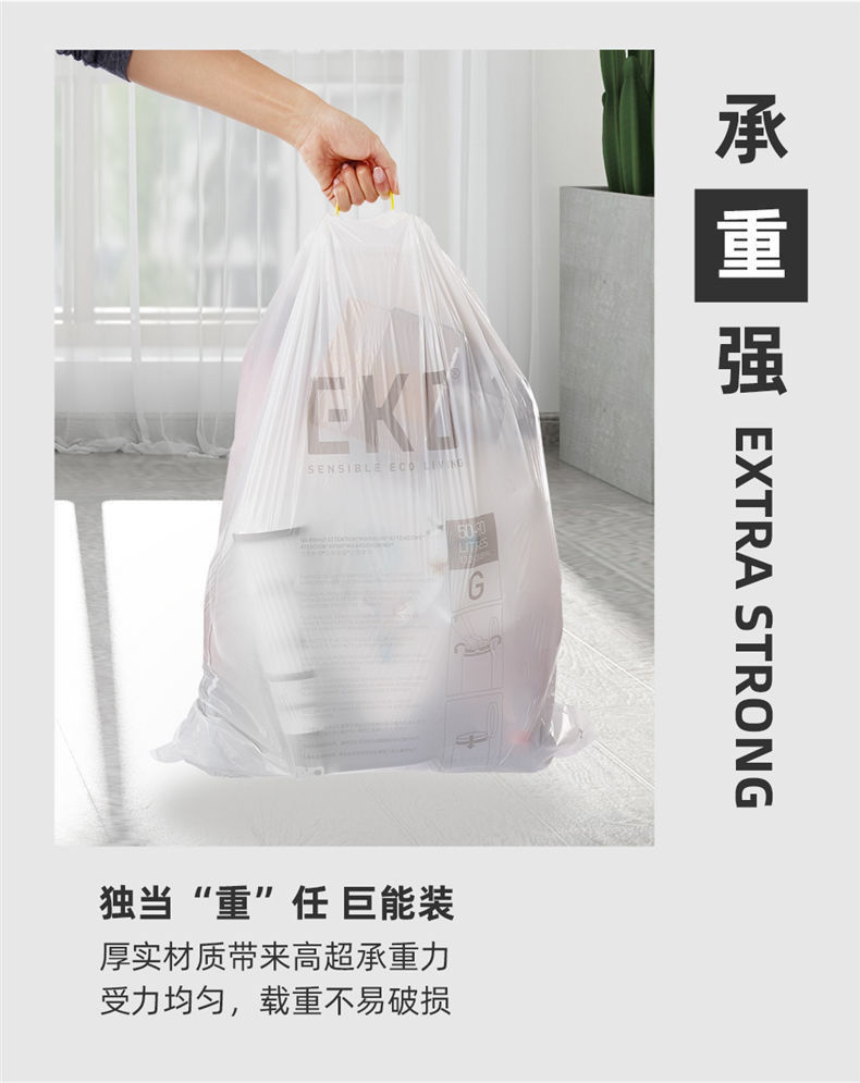 EKO垃圾袋家用手提式加厚抽绳厨房大号特厚超厚清洁背心式拉收袋