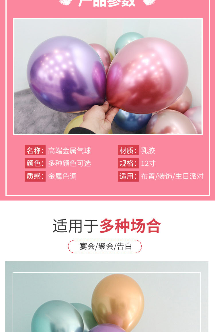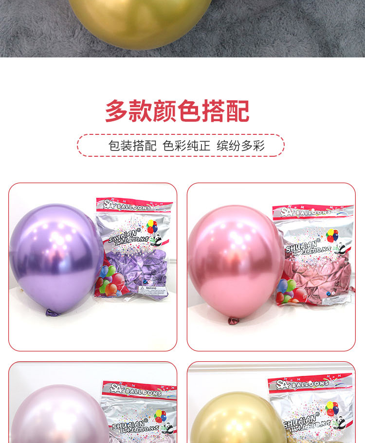 帅安金属气球装饰生日派对金属金色亮片加厚圆形10寸气球婚房布置
