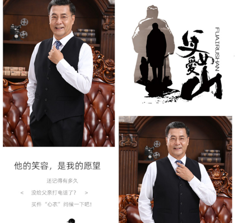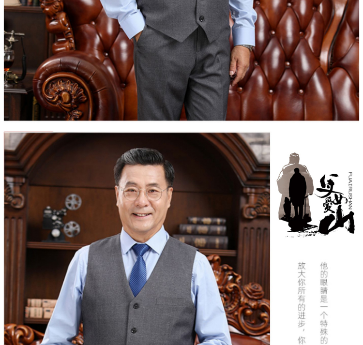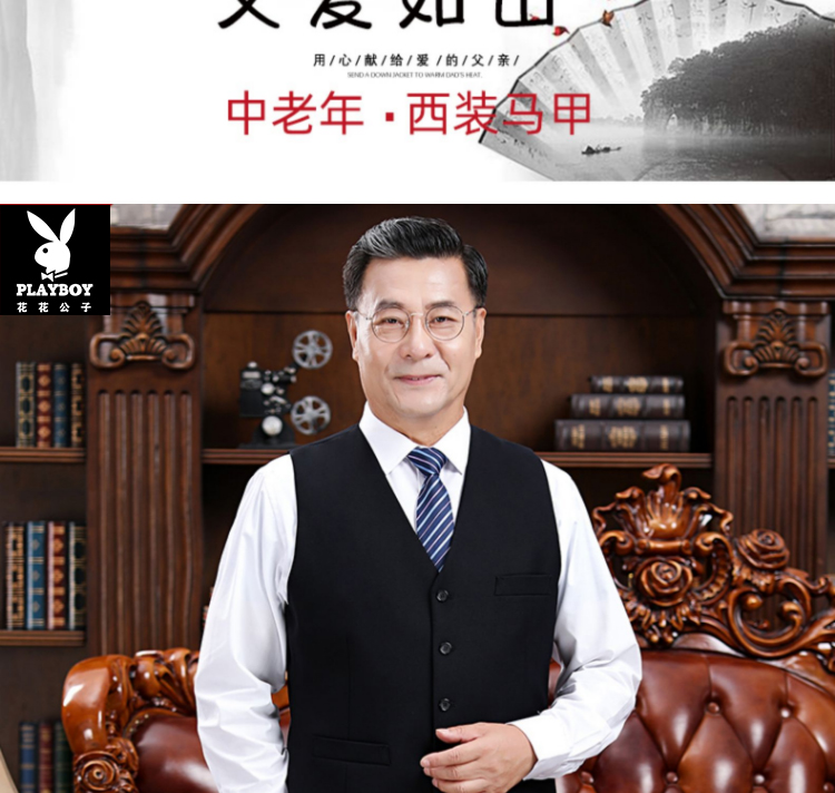 花花公子西装马甲男商务休闲外穿马夹中老年宽松活动婚礼背心坎肩