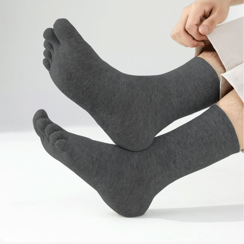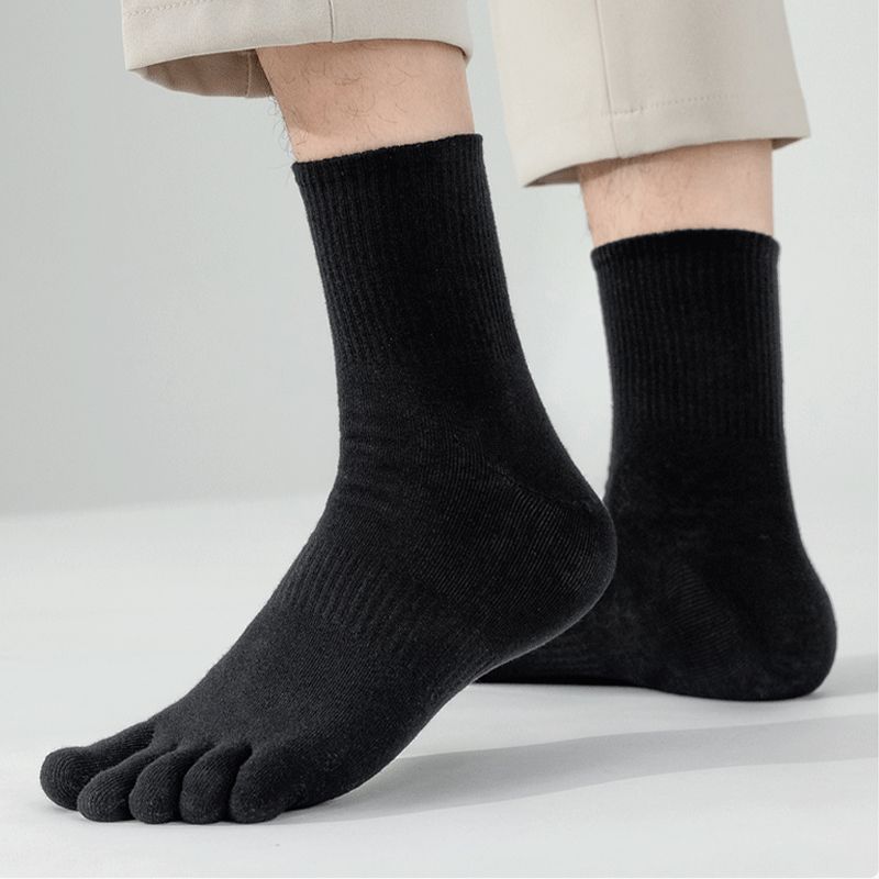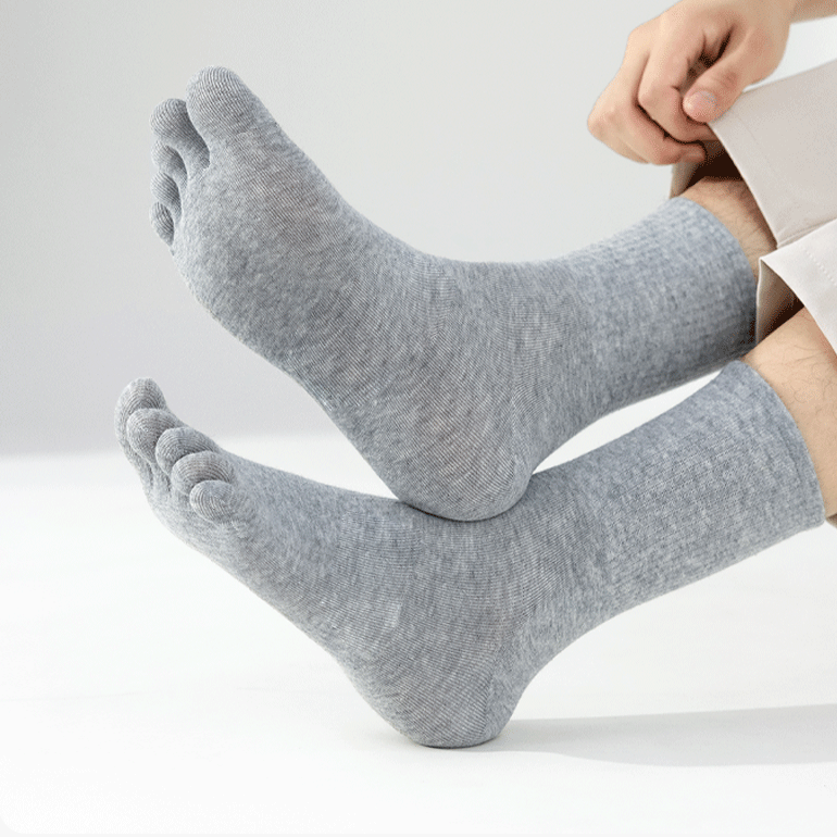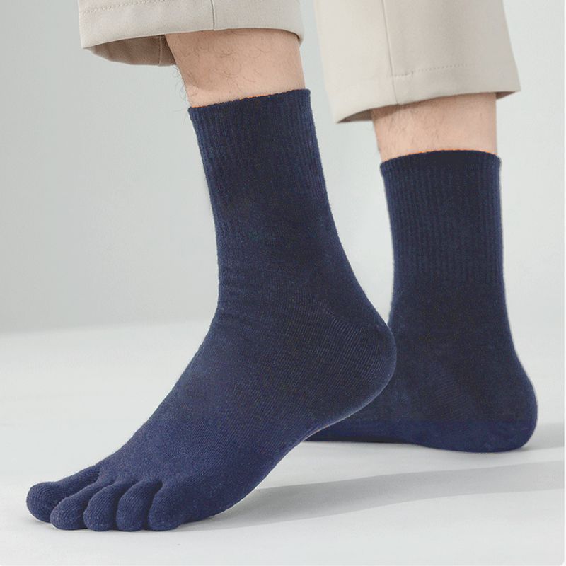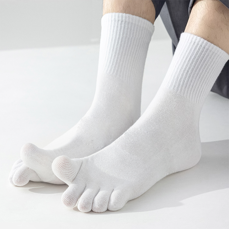 男士纯棉中筒五指袜全棉透气吸汗防臭分趾袜商务高筒袜男五本袜子