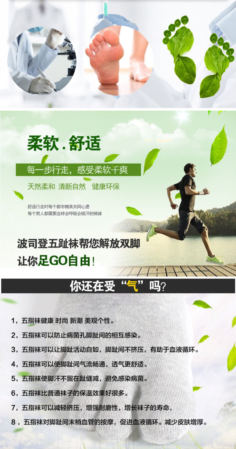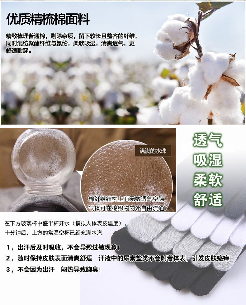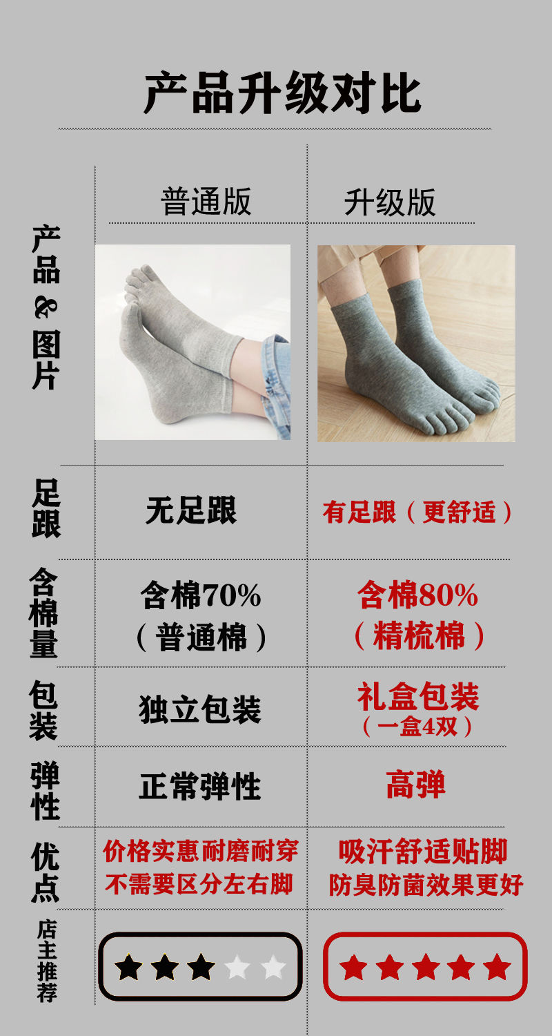 男士纯棉中筒五指袜全棉透气吸汗防臭分趾袜商务高筒袜男五本袜子
