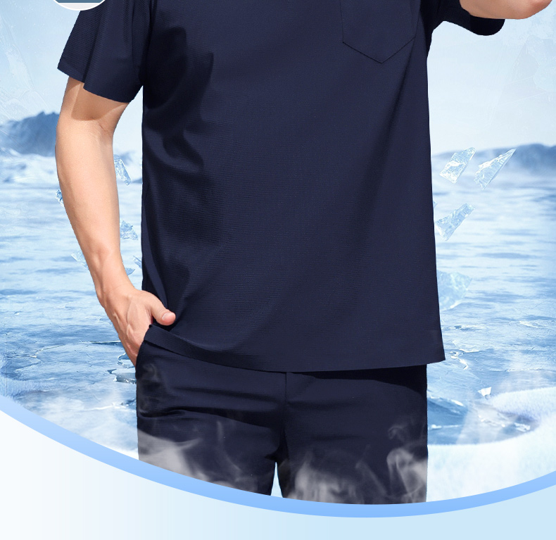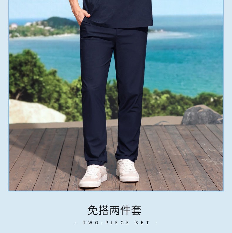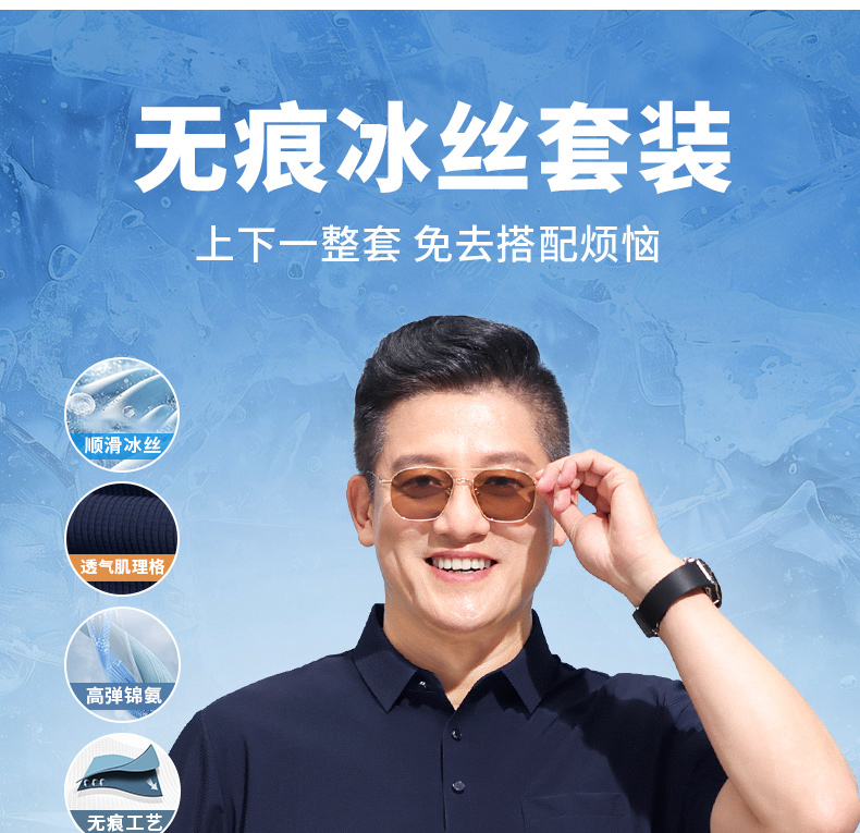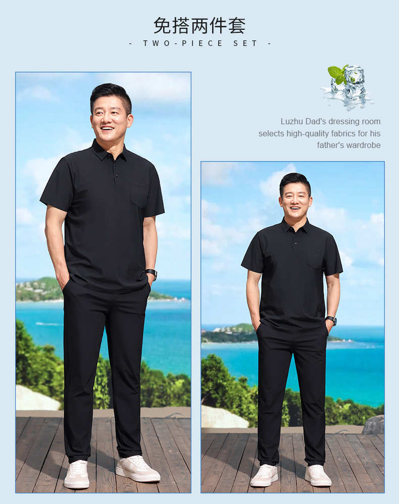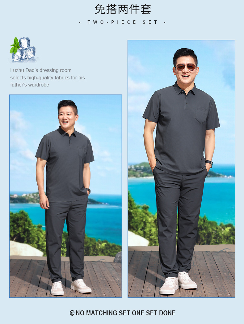 爸爸夏装冰丝套装中年男士休闲运动短袖t恤中老年男装夏季上衣服