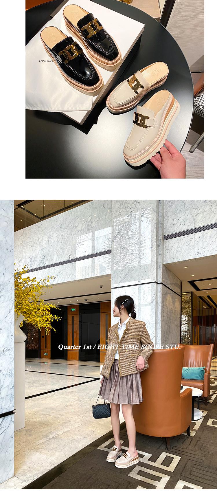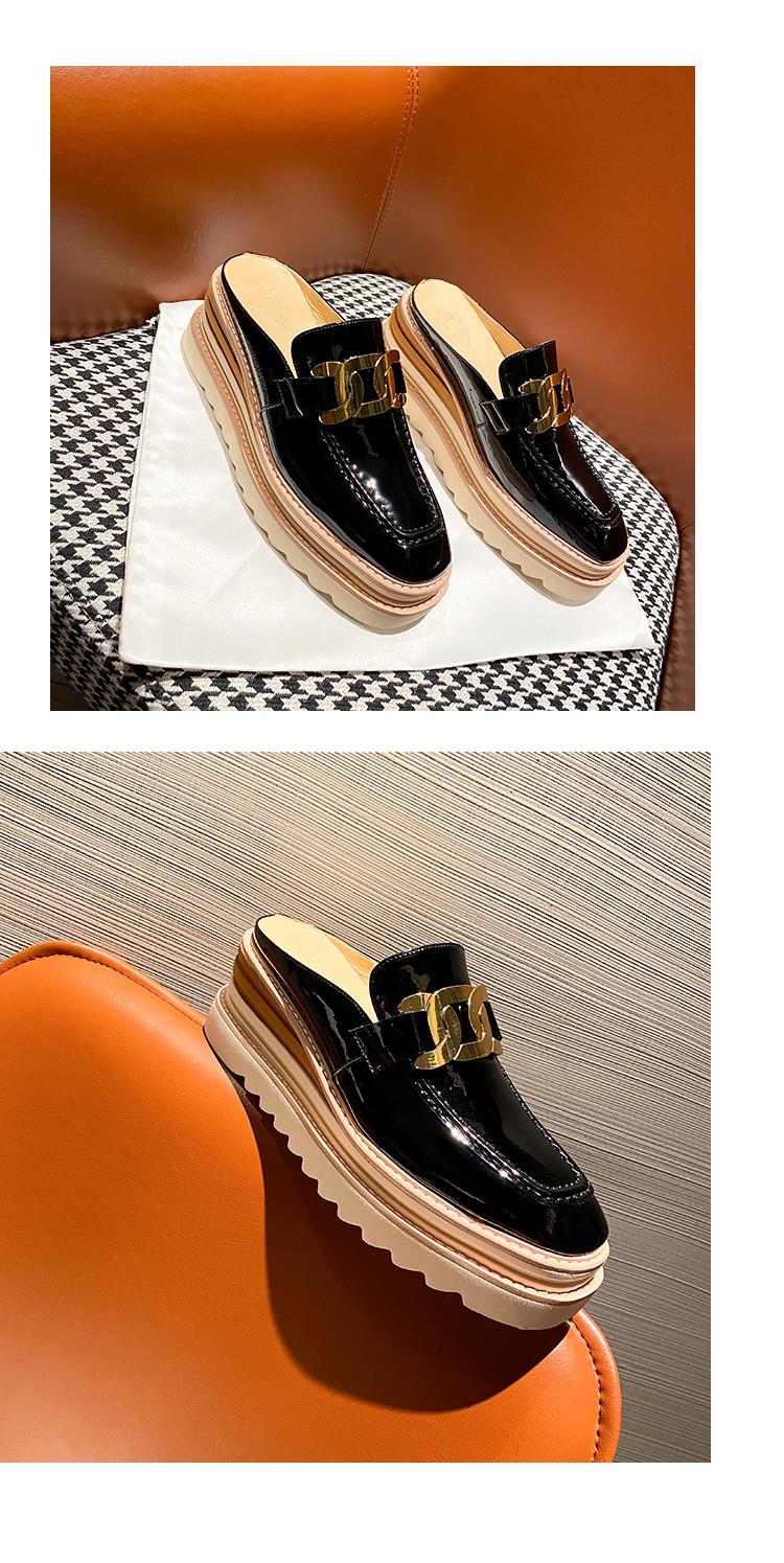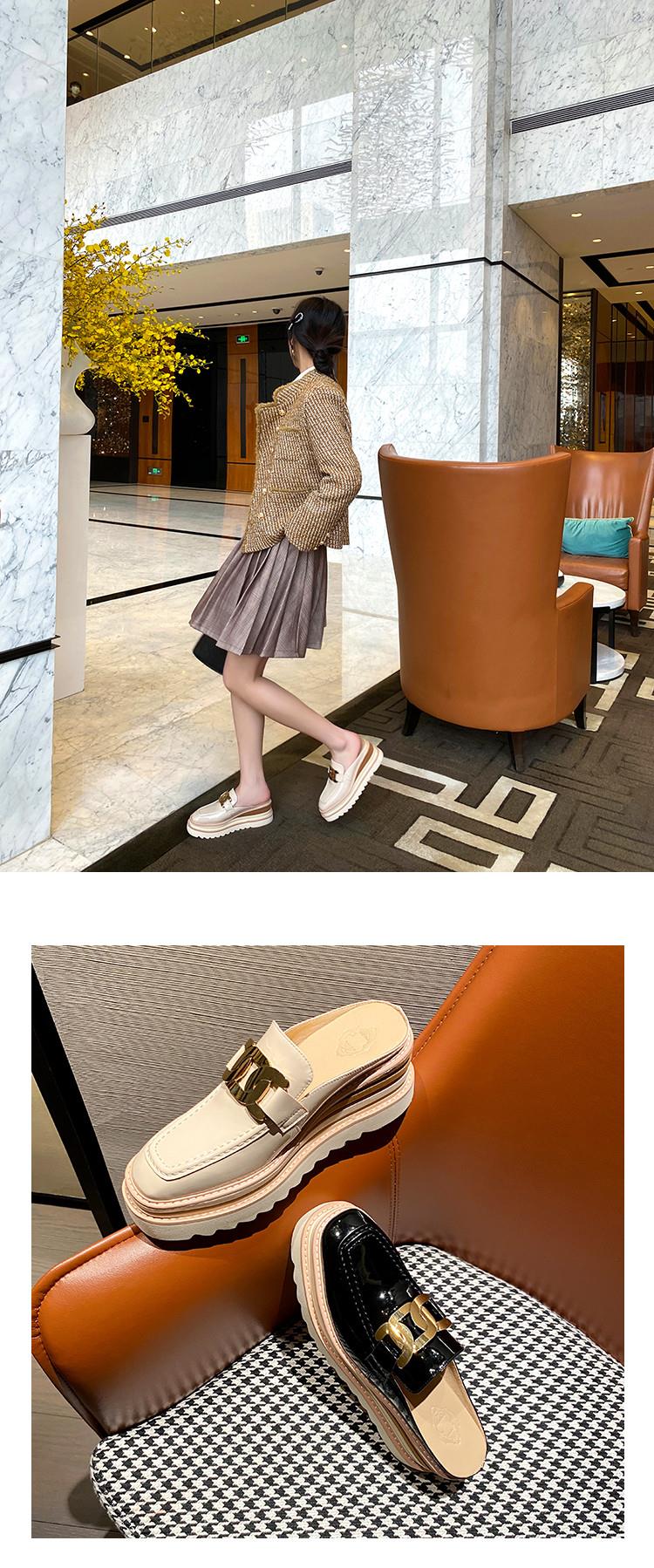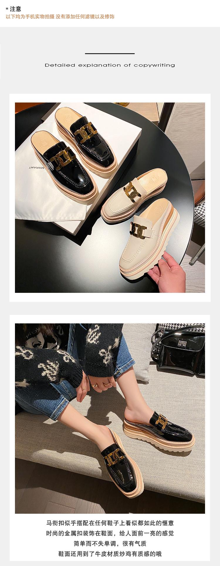 真皮包头半拖鞋女2025年新款外穿坡跟懒人鞋无后跟单鞋厚底松糕鞋