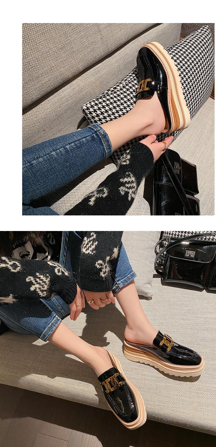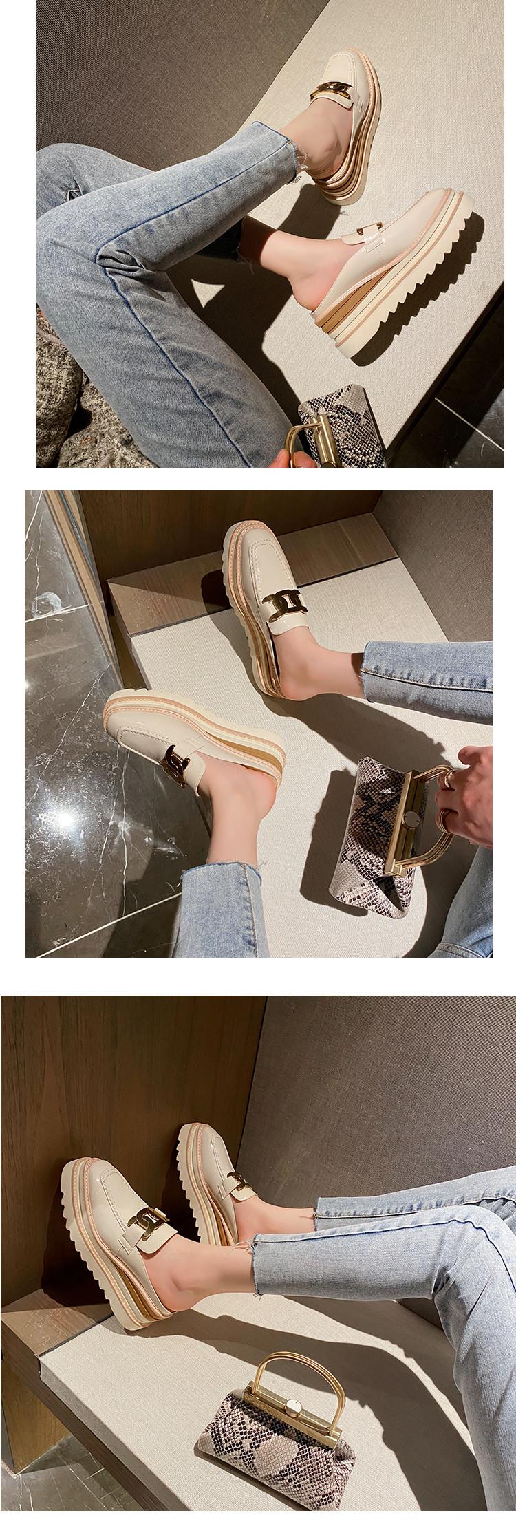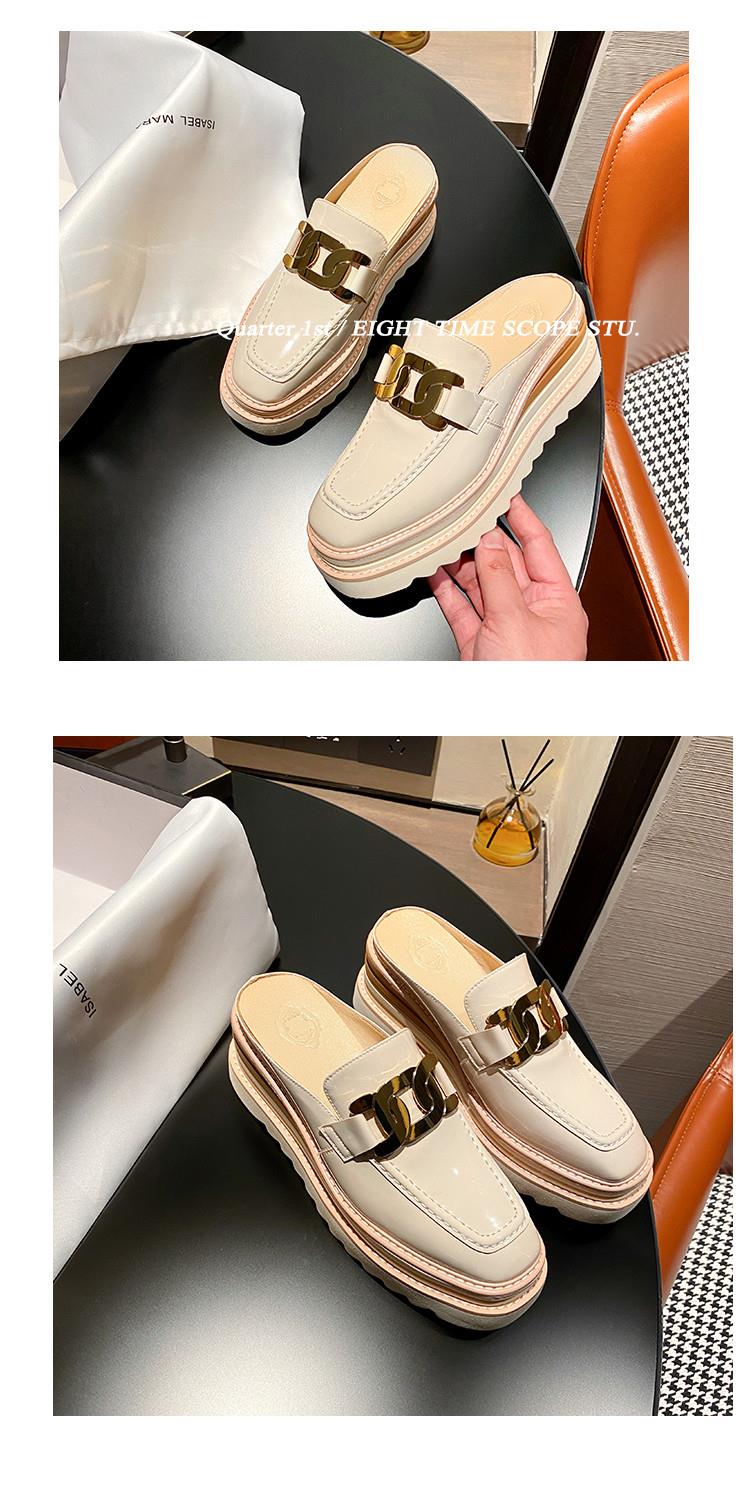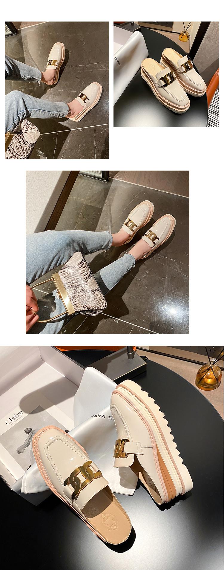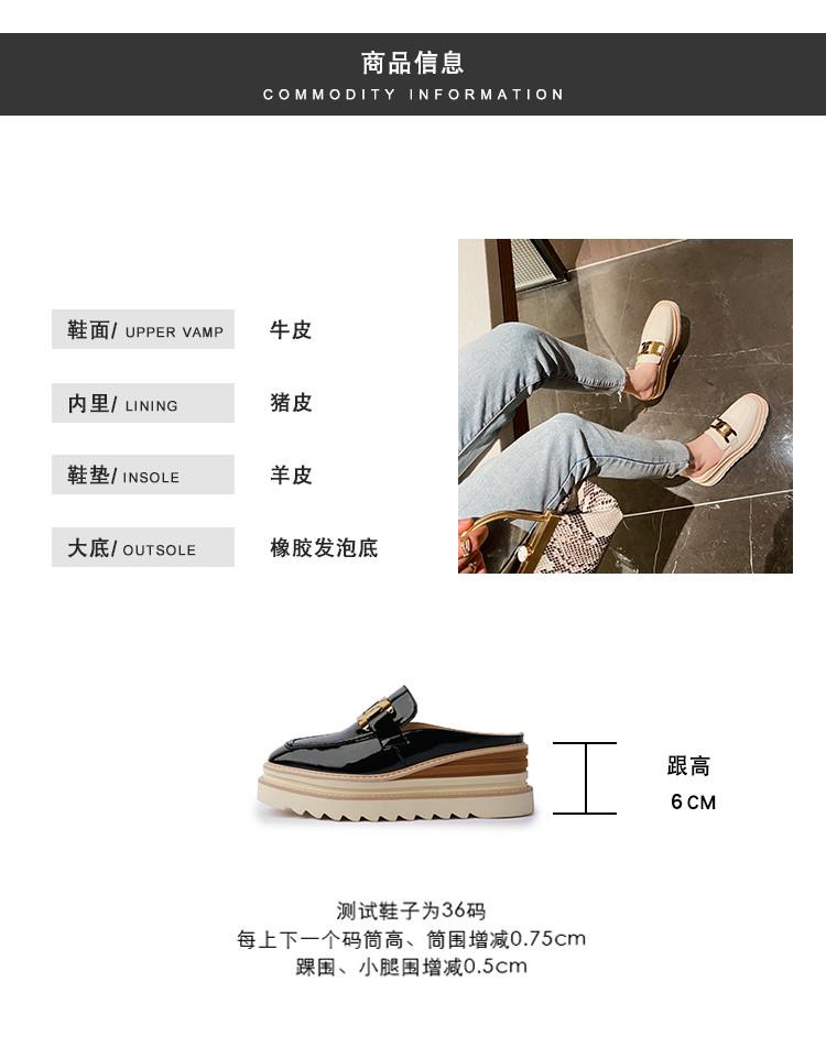 真皮包头半拖鞋女2025年新款外穿坡跟懒人鞋无后跟单鞋厚底松糕鞋