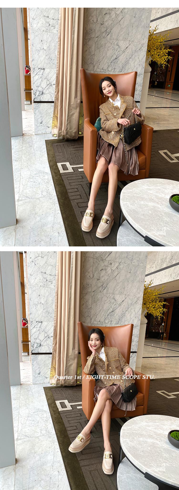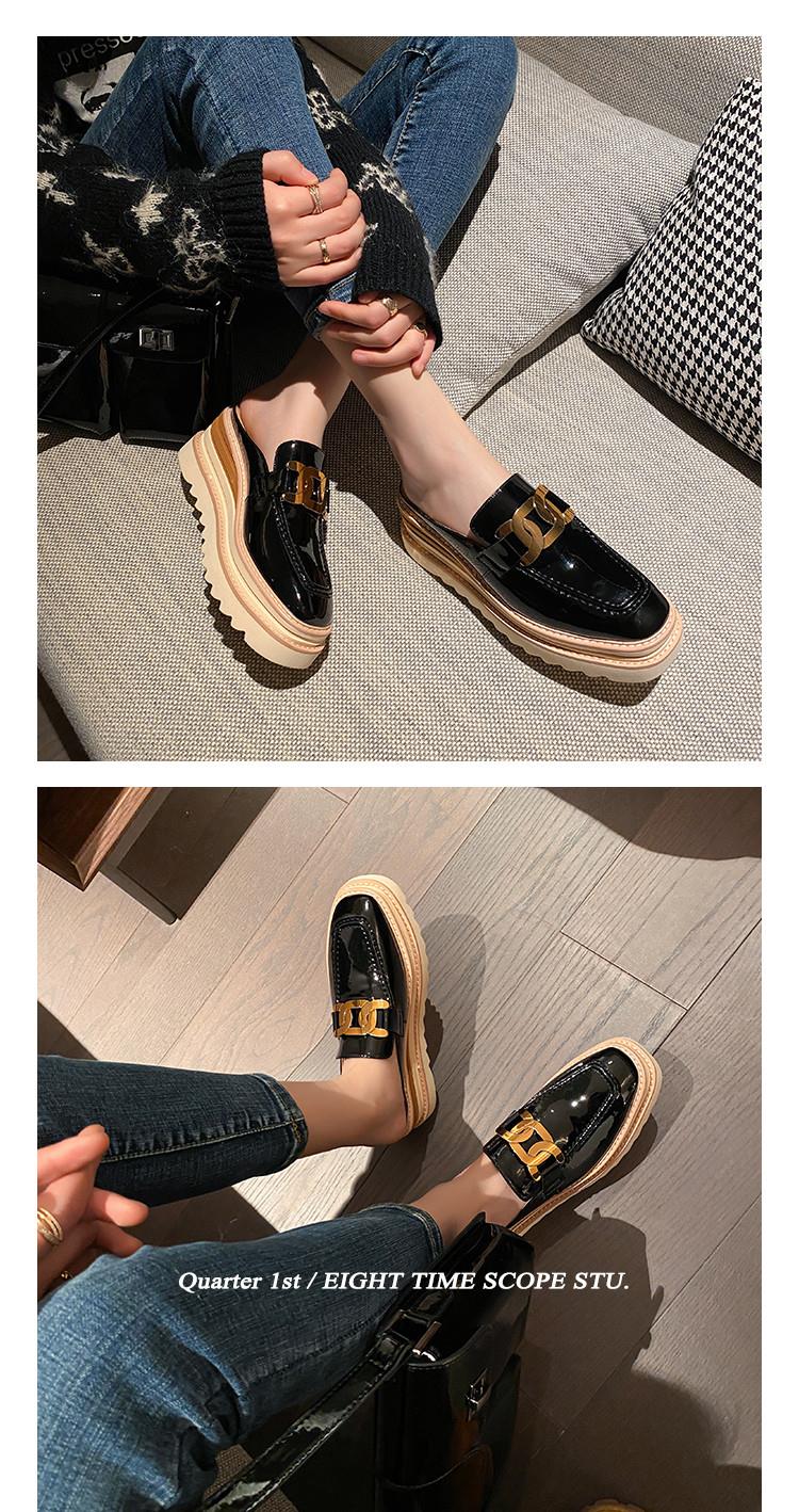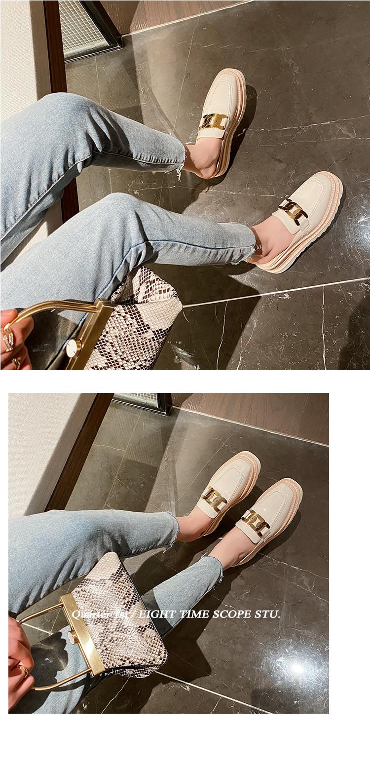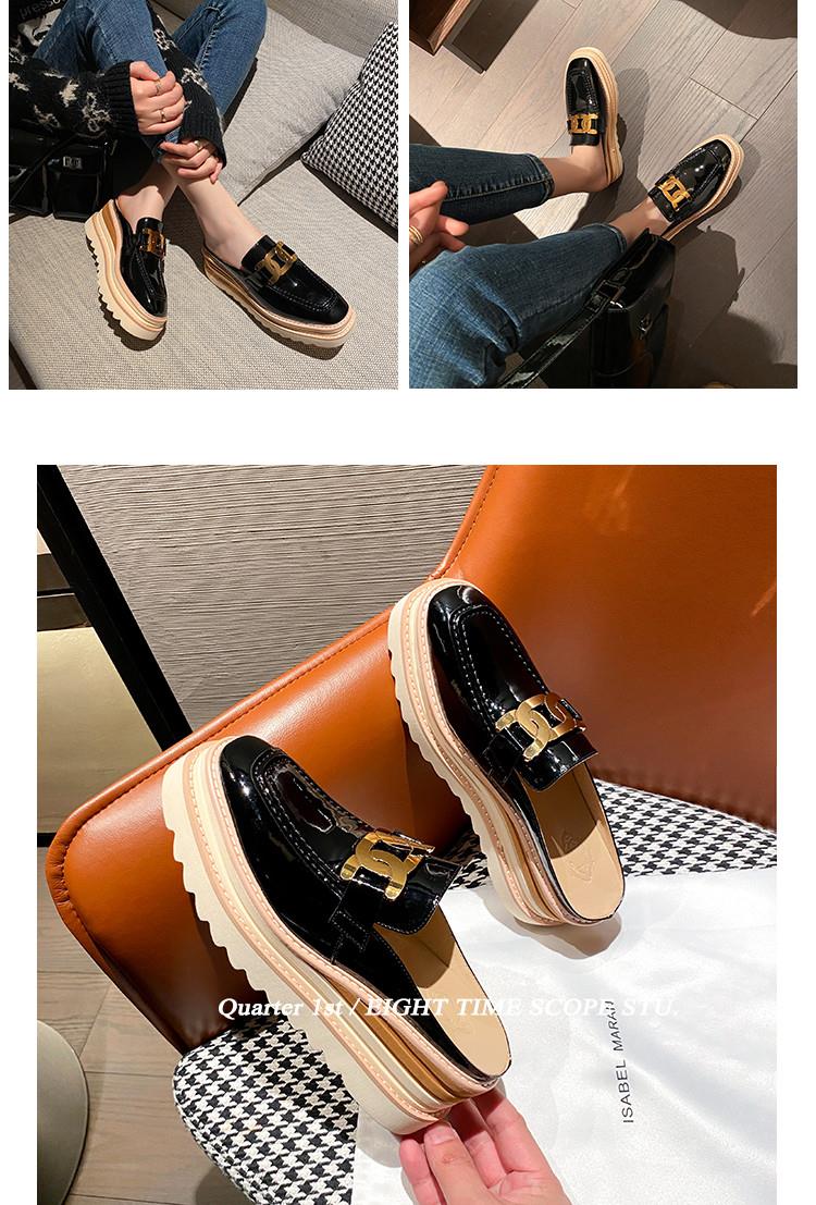 真皮包头半拖鞋女2025年新款外穿坡跟懒人鞋无后跟单鞋厚底松糕鞋