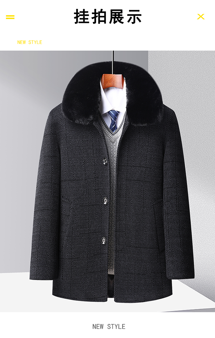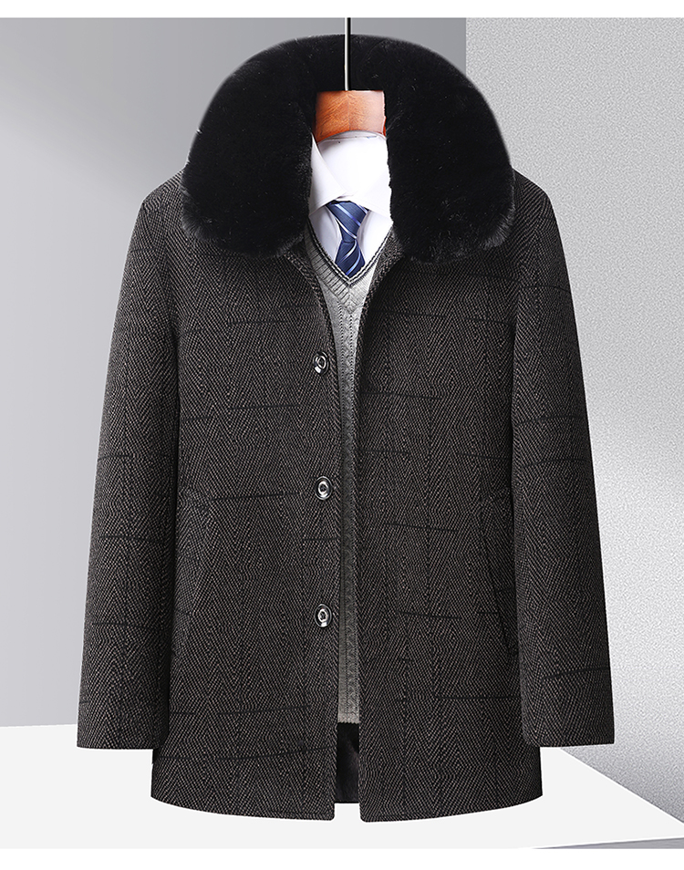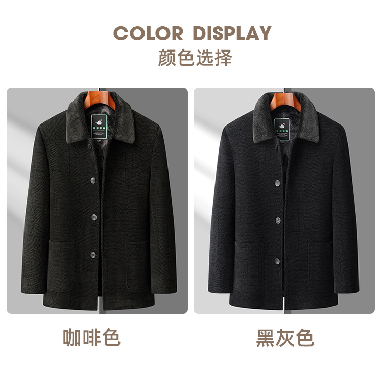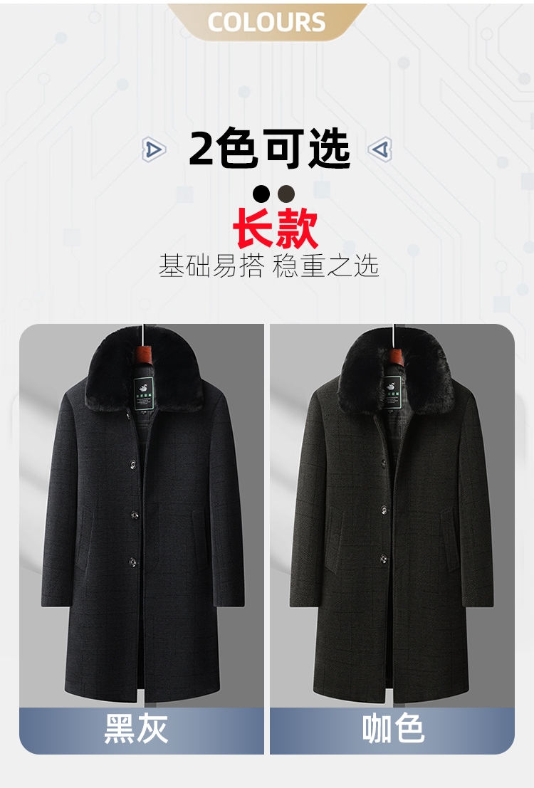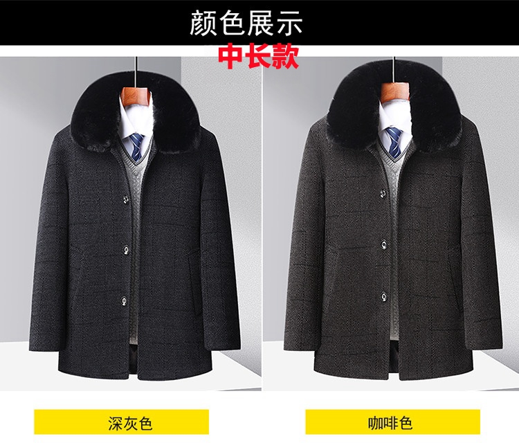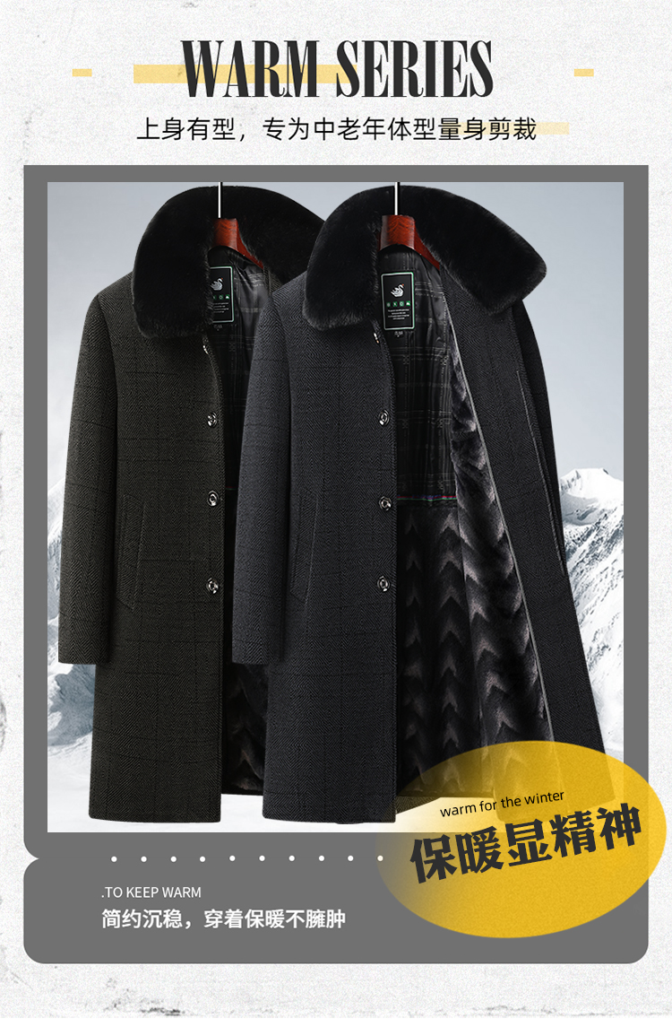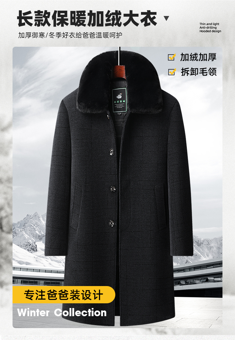 中老年男装加绒加厚毛呢大衣冬季中年爸爸冬装长款雪尼尔风衣外套