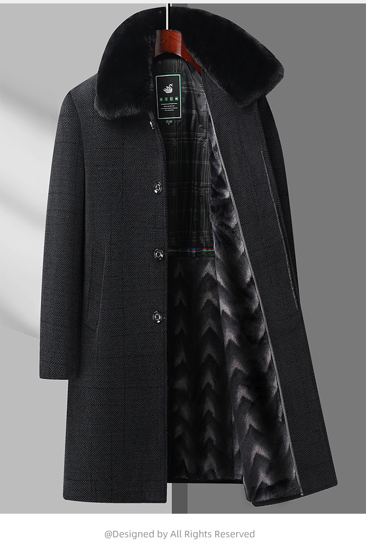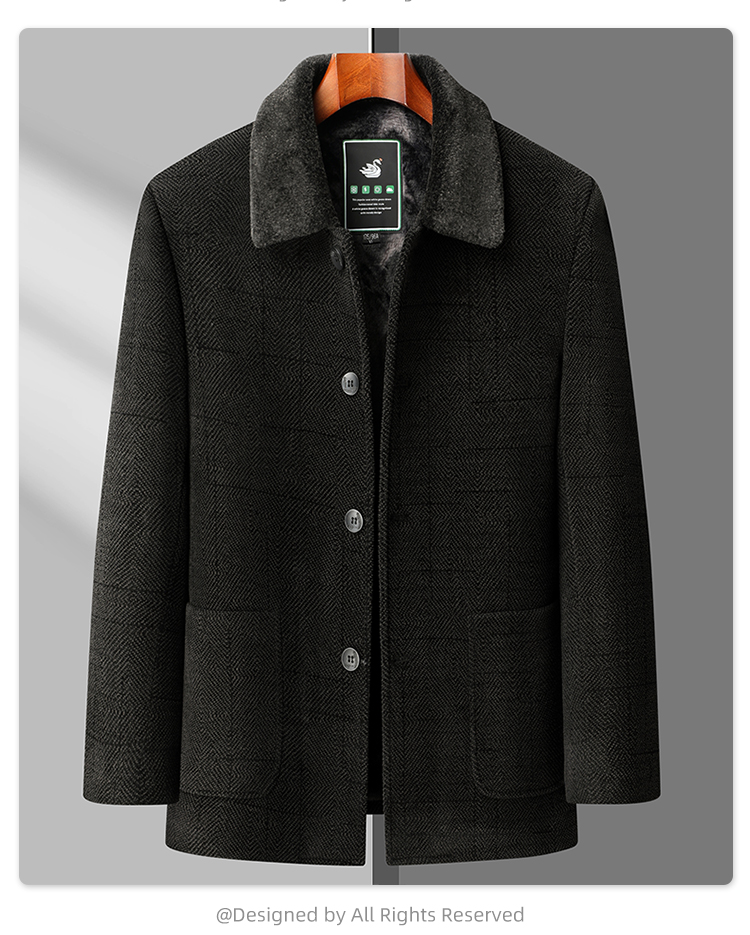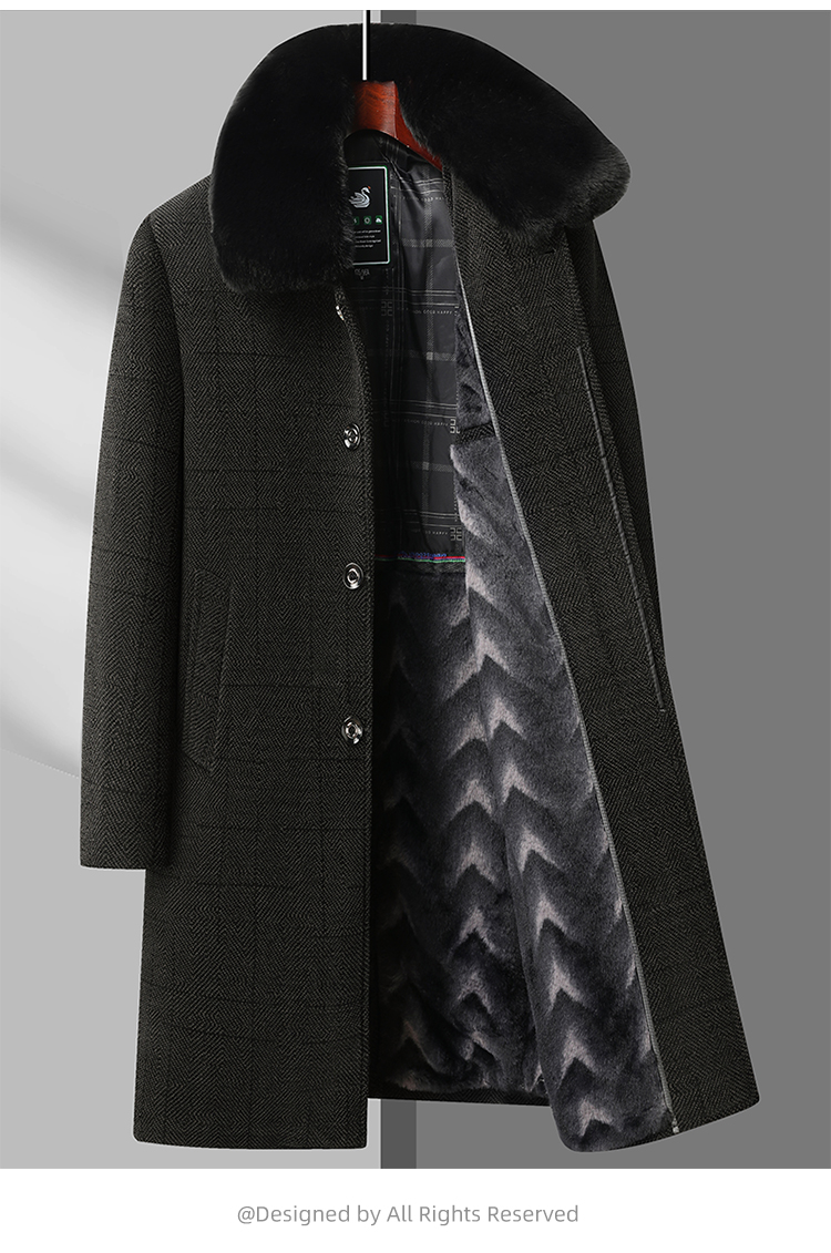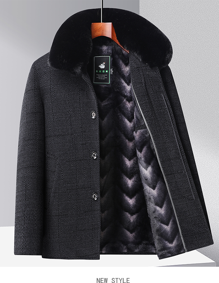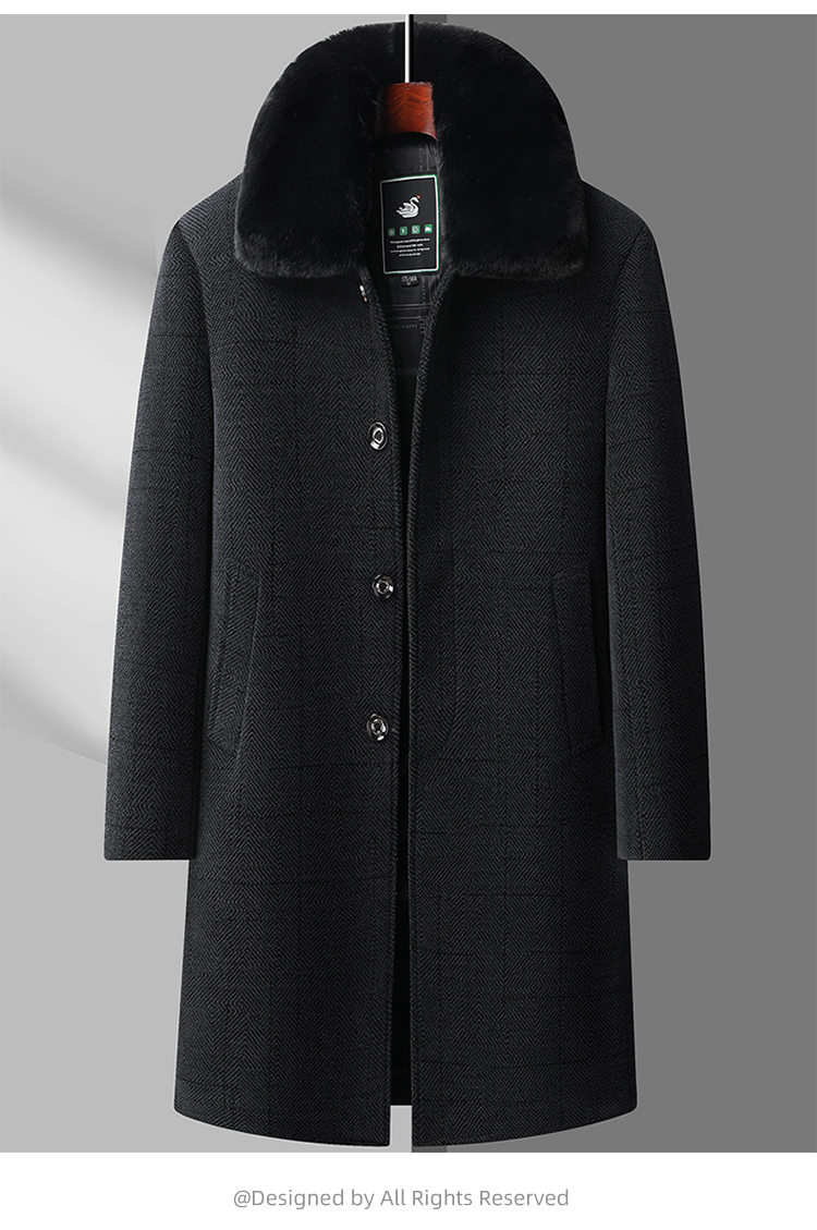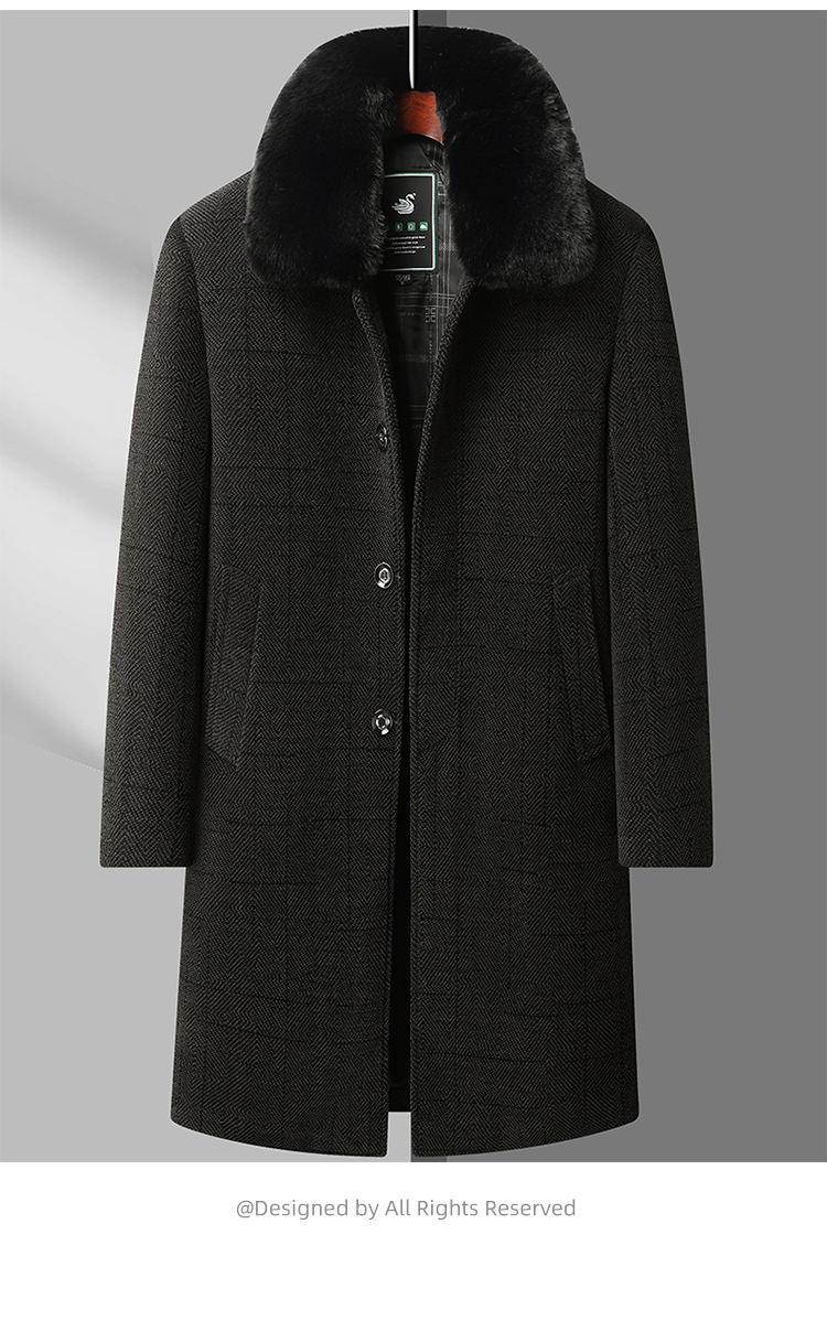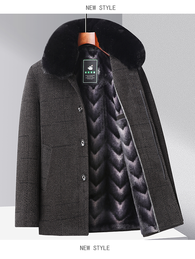 中老年男装加绒加厚毛呢大衣冬季中年爸爸冬装长款雪尼尔风衣外套