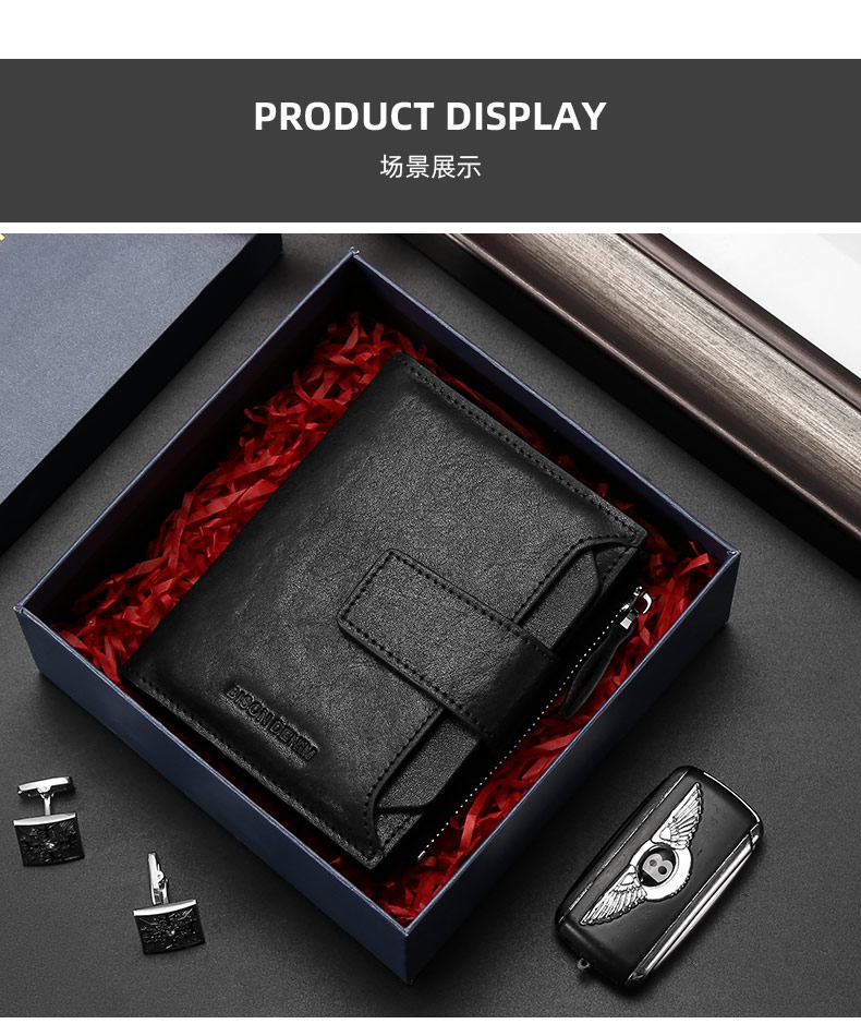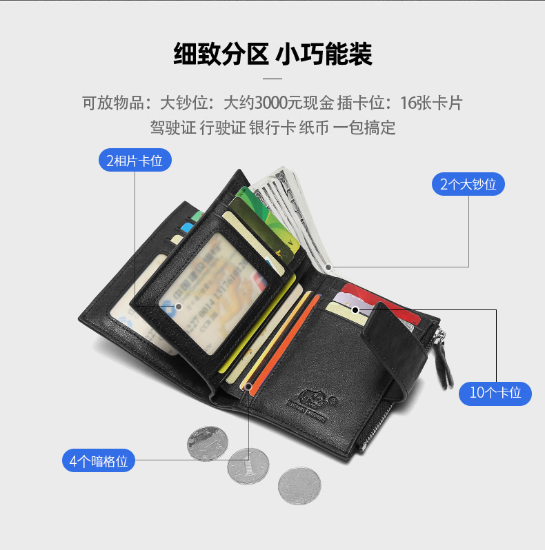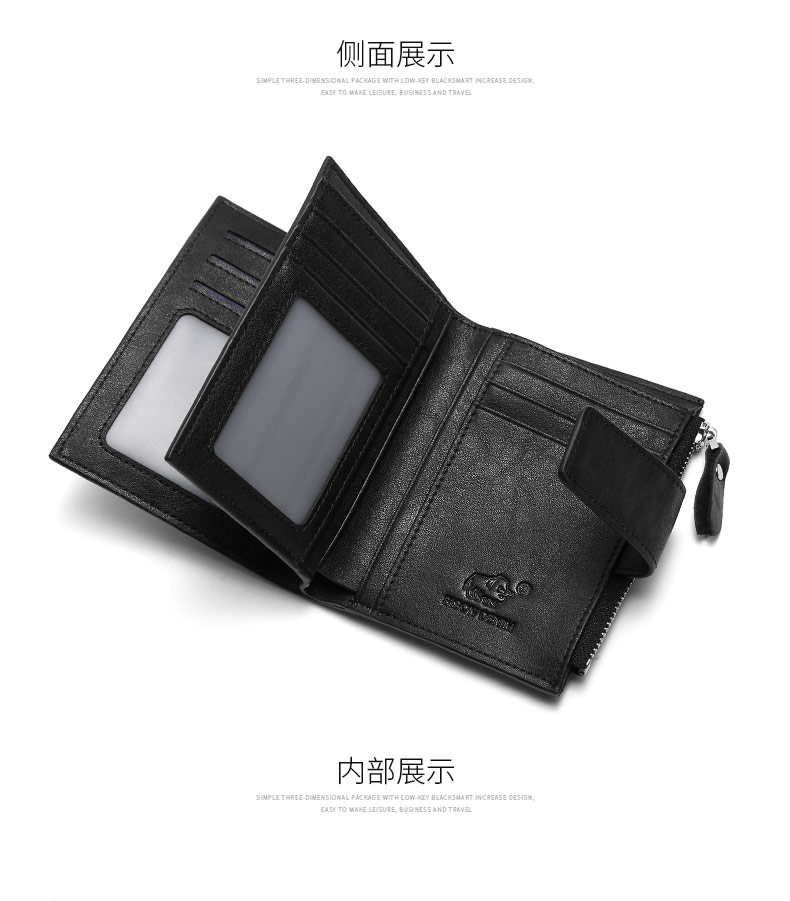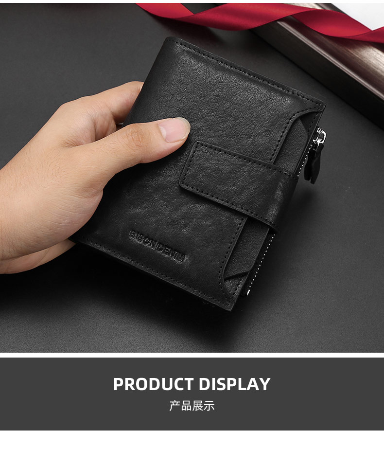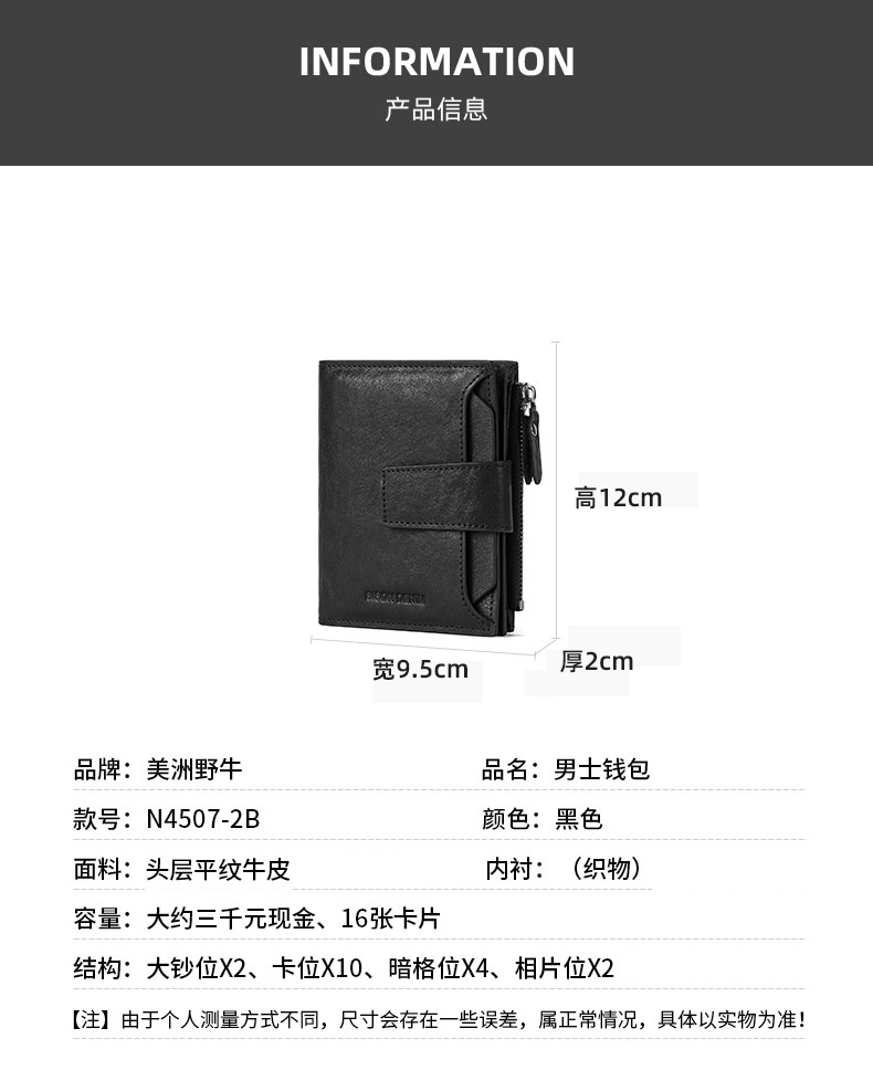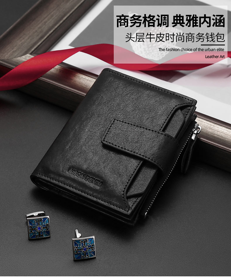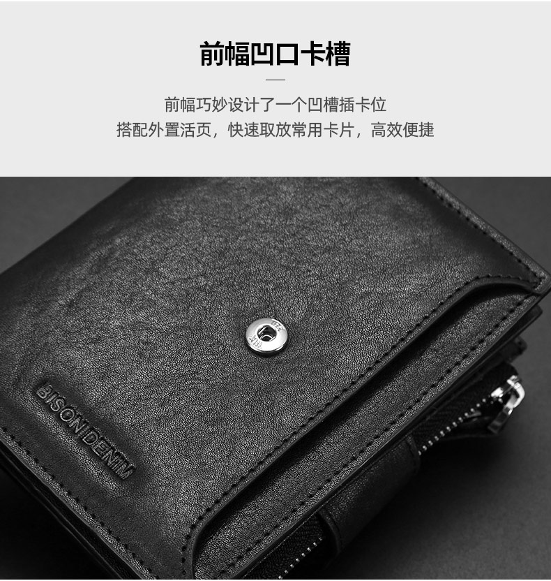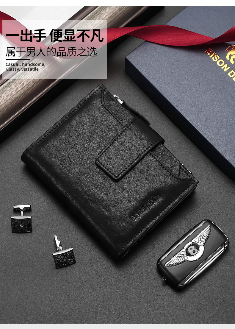 美洲野牛真皮男士钱包短款零钱包头层牛皮钱夹2025新款多卡位皮夹