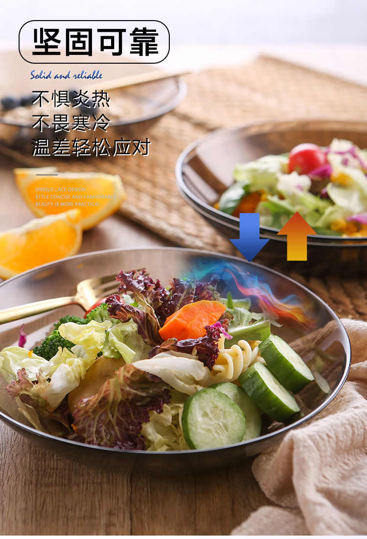 俄罗斯进口玻璃菜盘子耐热餐具餐盘沙拉碗水果碗大平盘家用深咖色