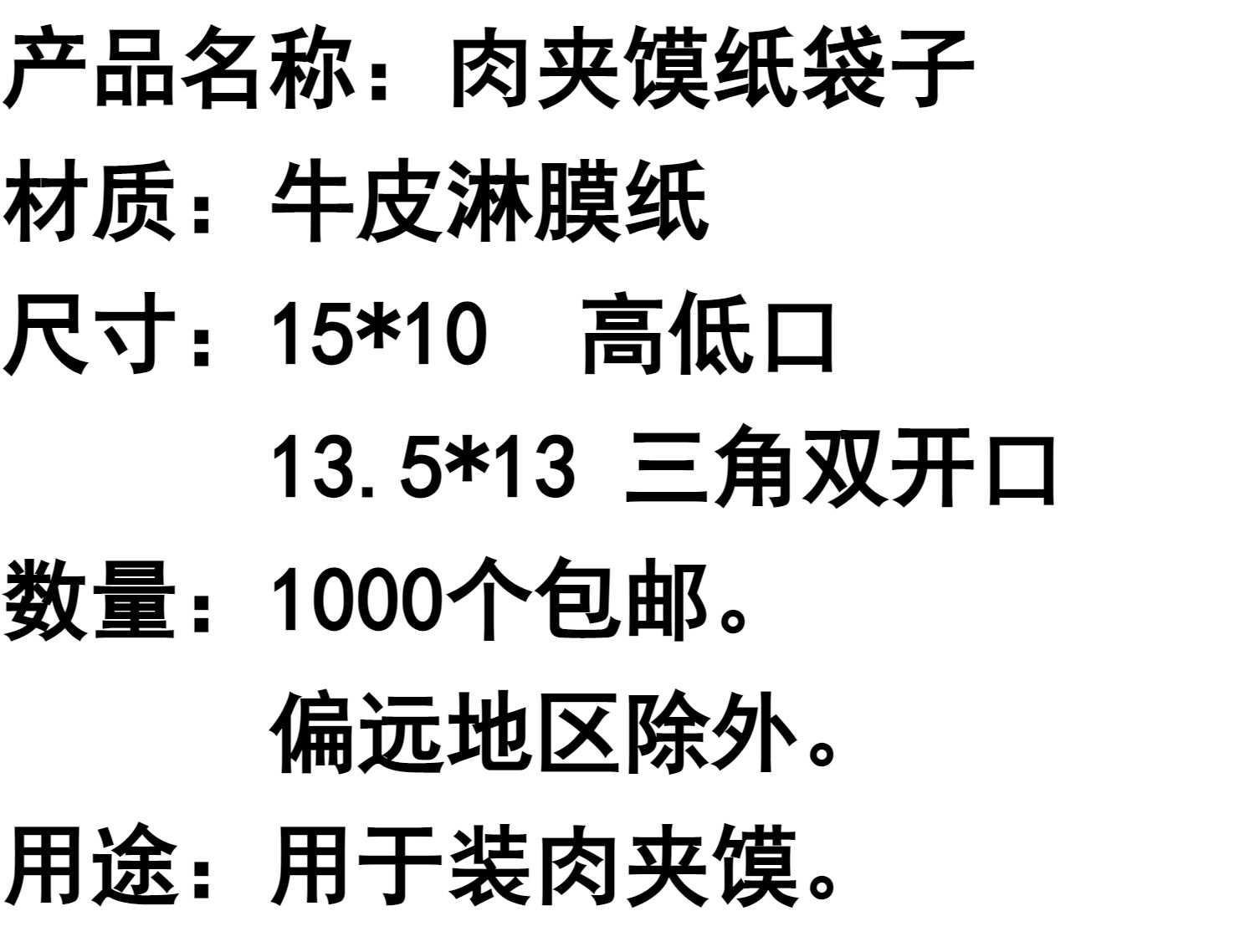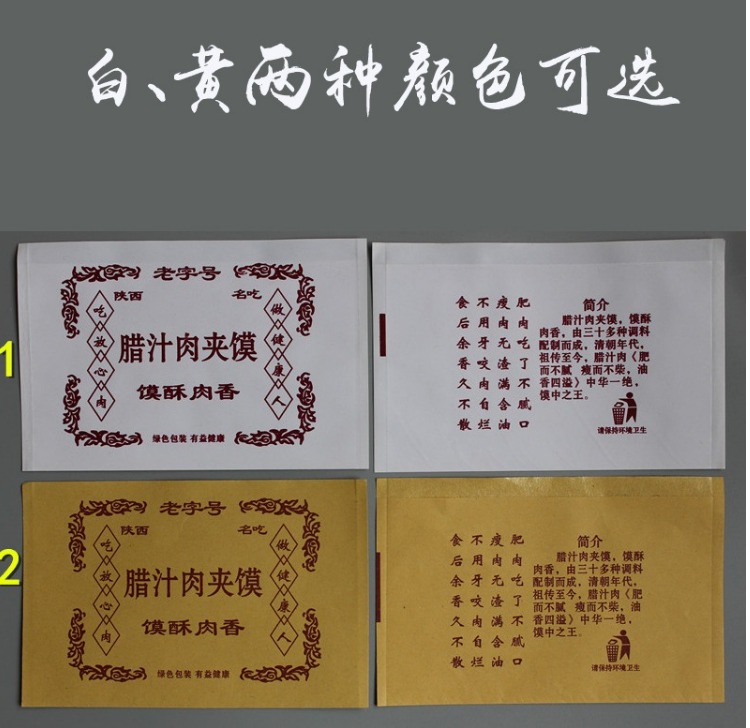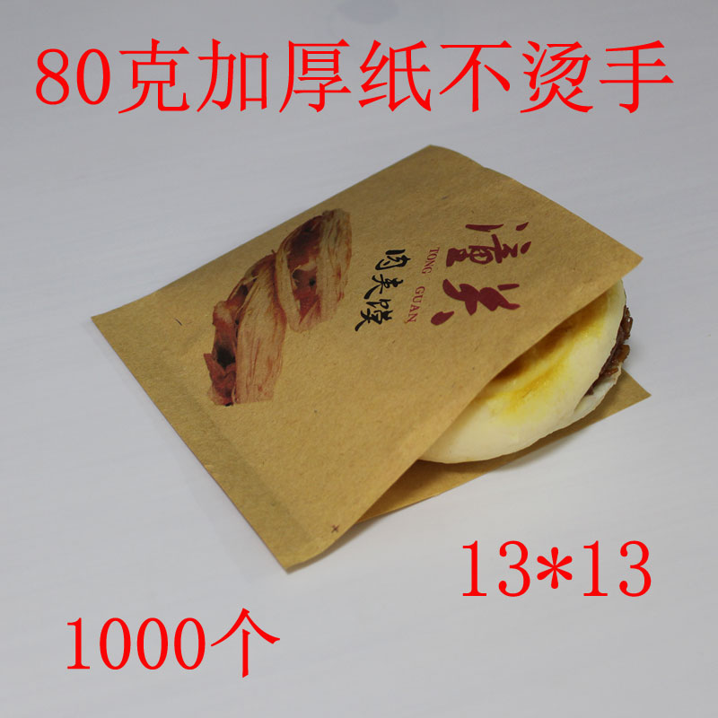 现货腊汁肉夹馍纸袋白吉馍牛皮纸防油烘培食品包装袋子一件1000个