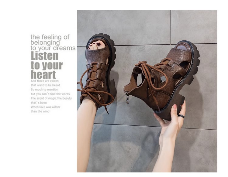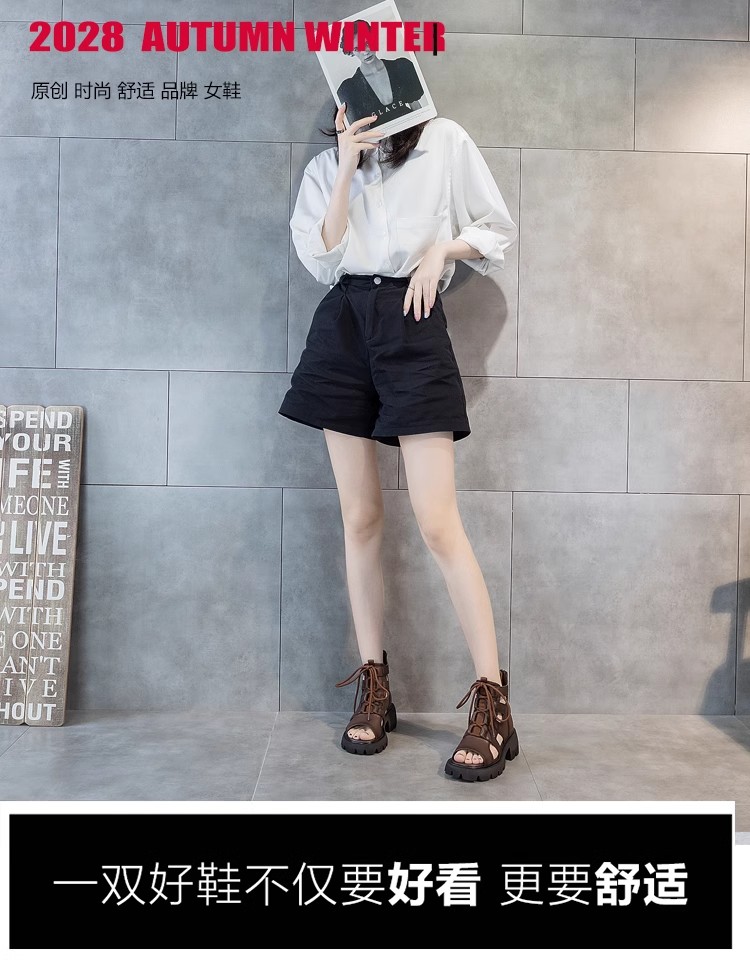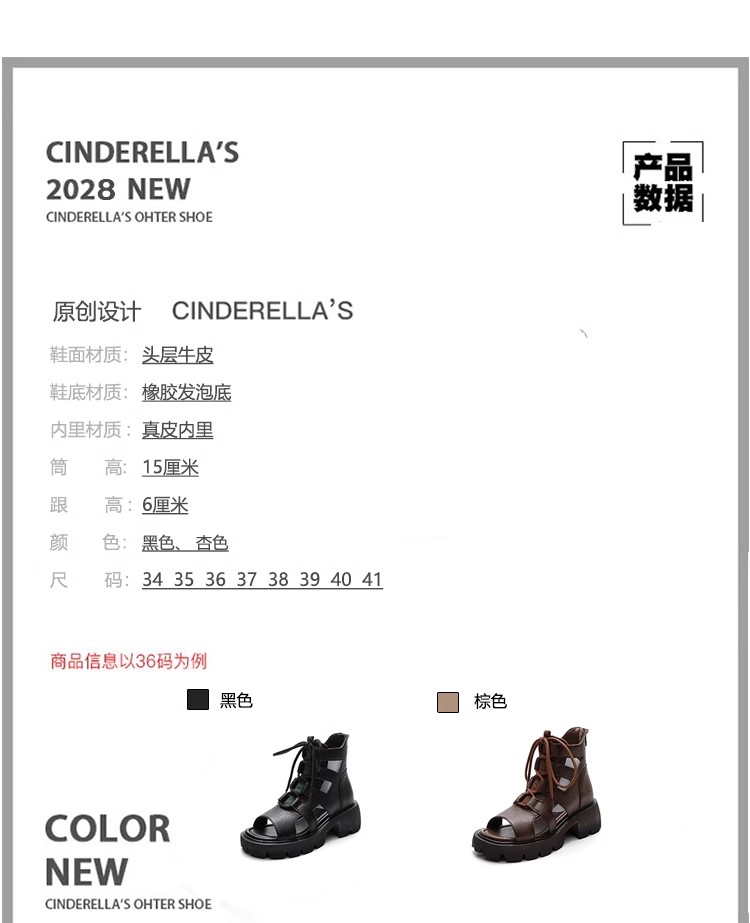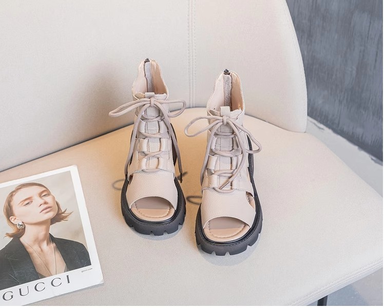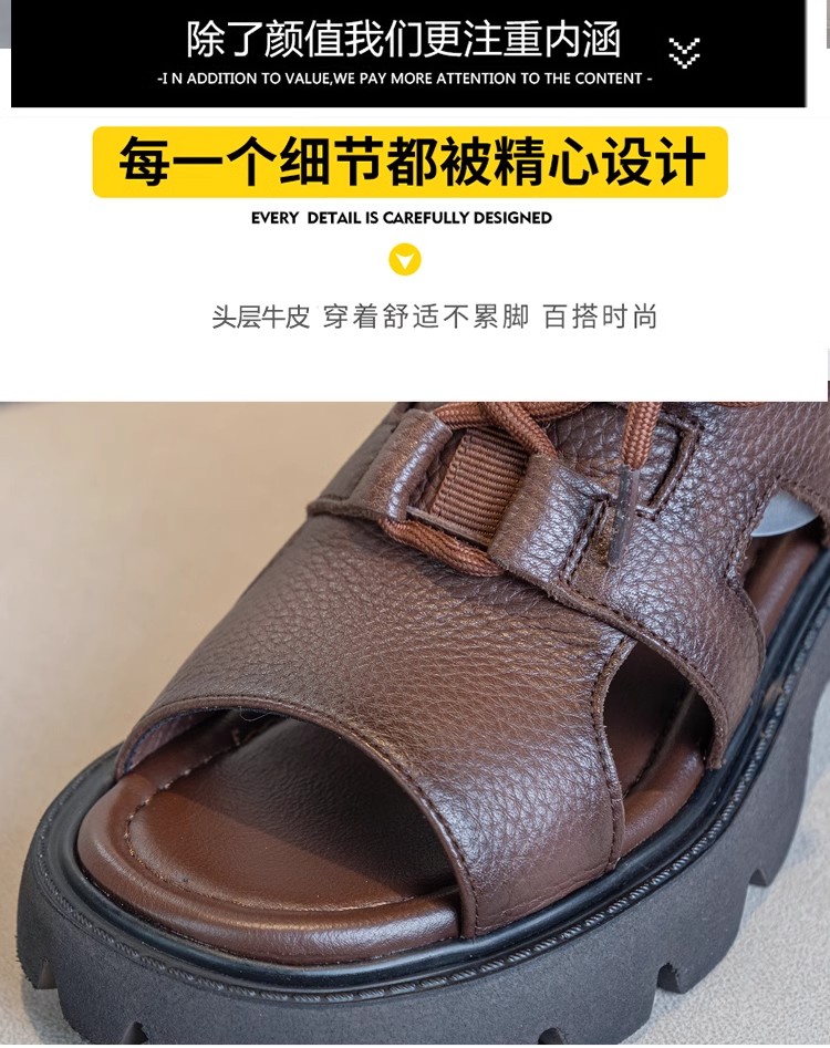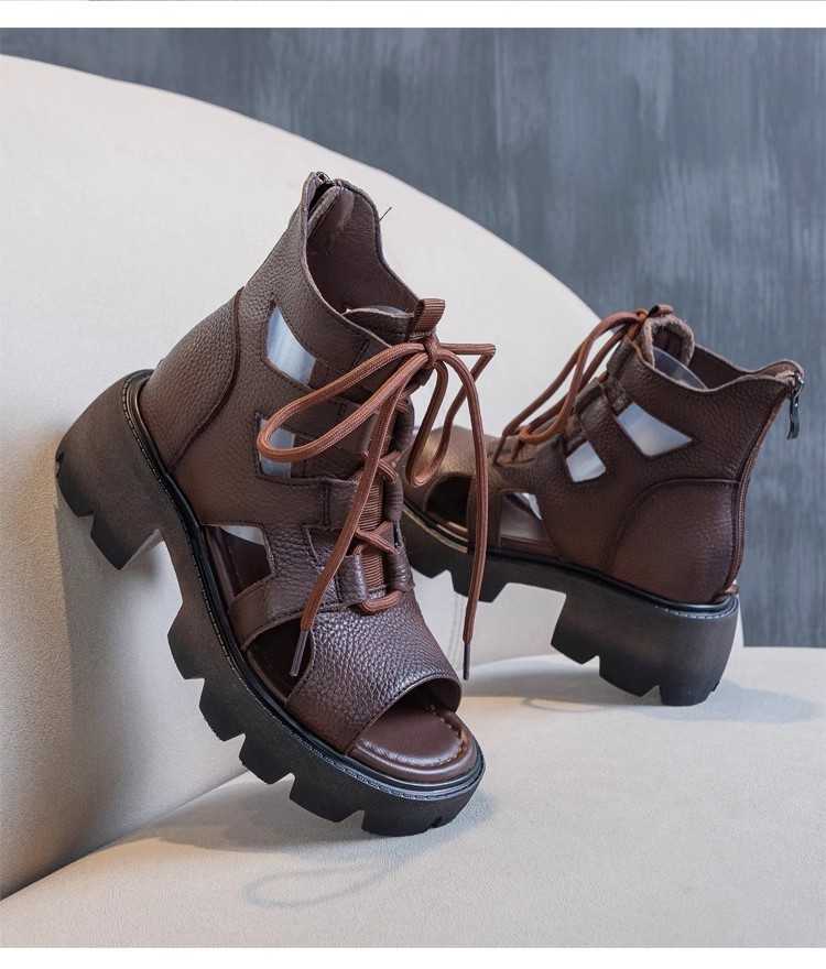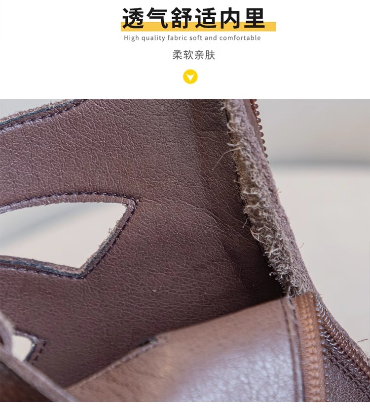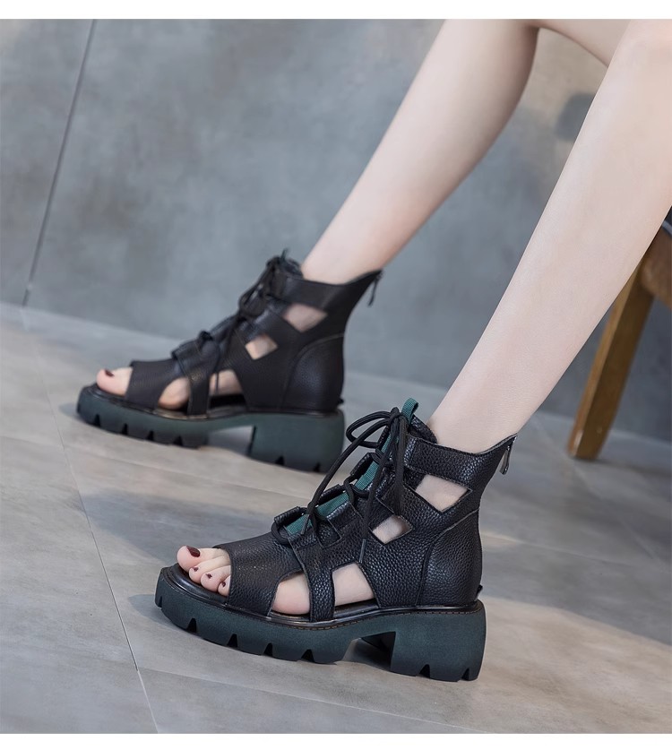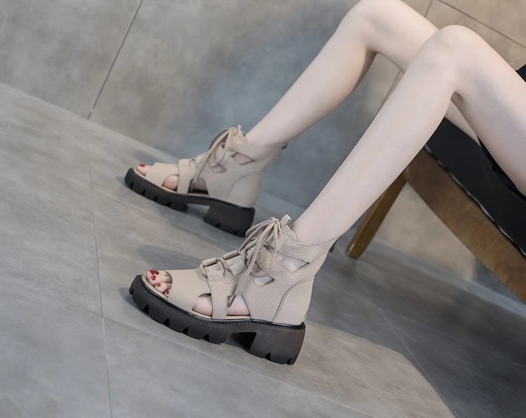 凉鞋真皮女高跟2025夏季新款粗跟增高鱼嘴镂空露趾软高帮罗马凉鞋