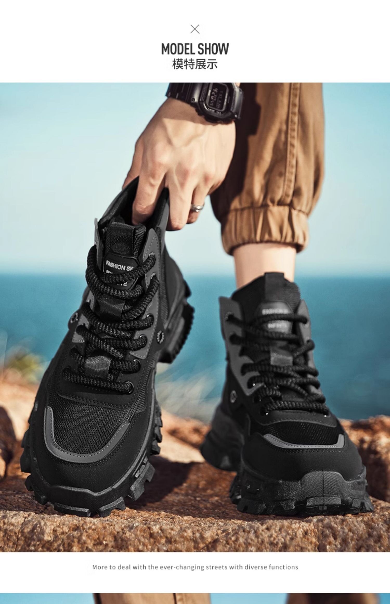 劳保男鞋夏季工地干活防滑耐磨工作户外登山休闲运动黑色马丁靴子