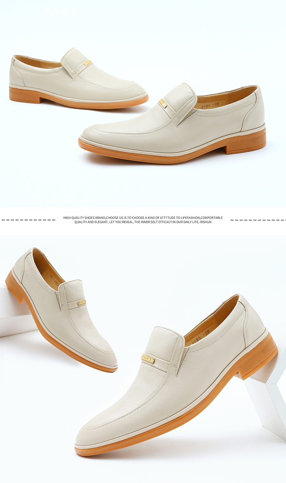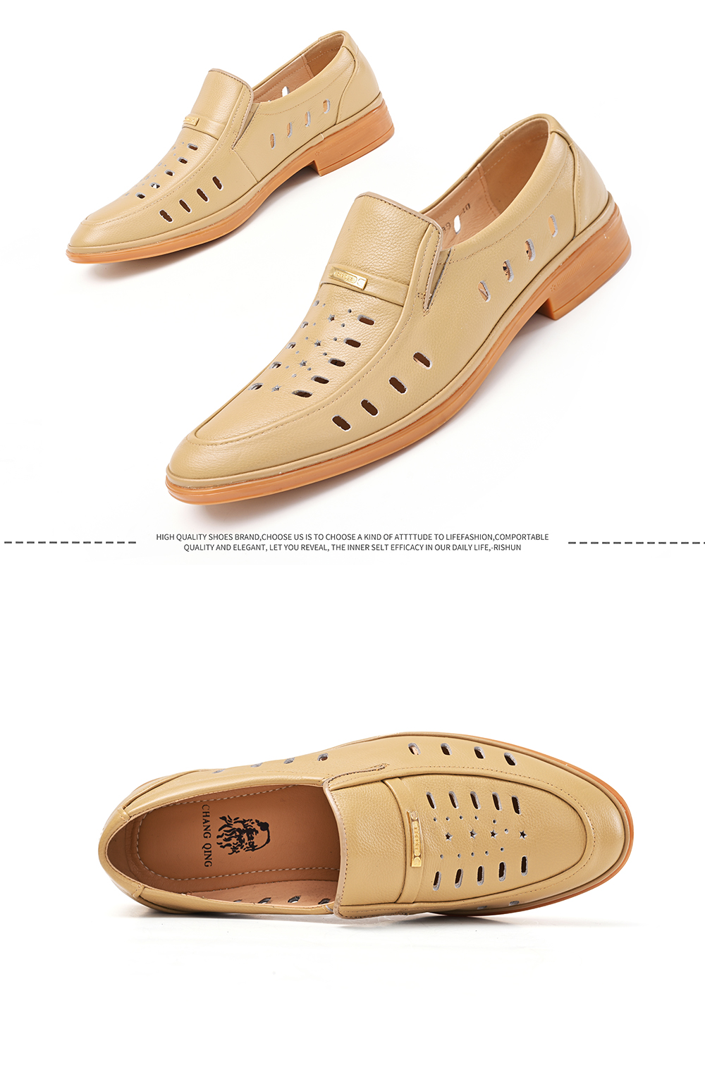 夏季透气真皮牛筋底洞洞鞋镂空凉鞋米白色男皮鞋软底舒适头层牛皮