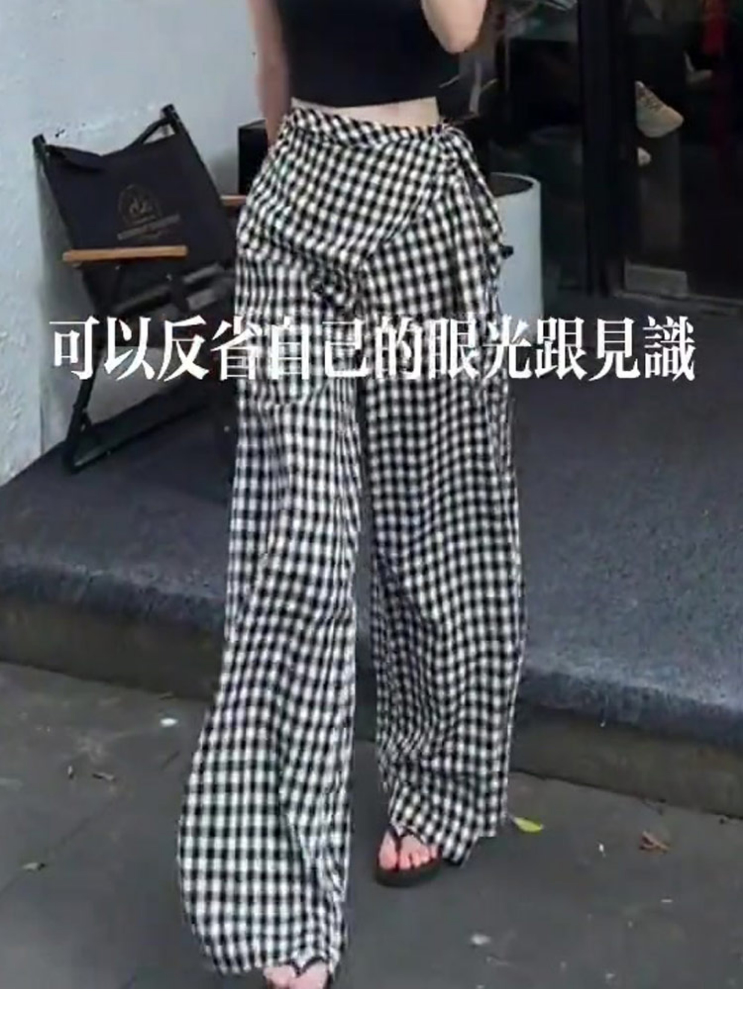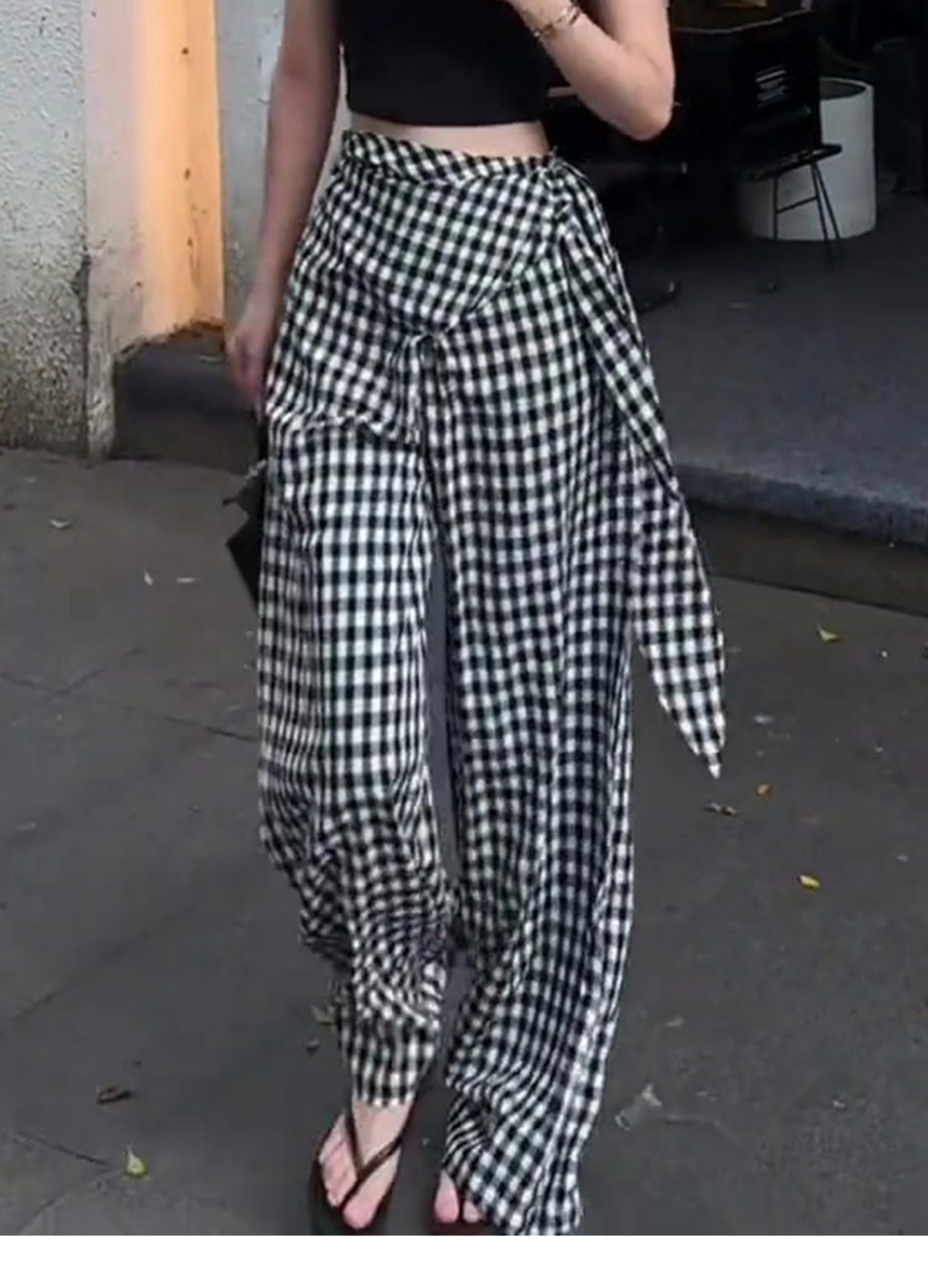 韩版黑白格子高腰休闲裤女2025年夏季新款时髦松弛慵懒设计感长裤