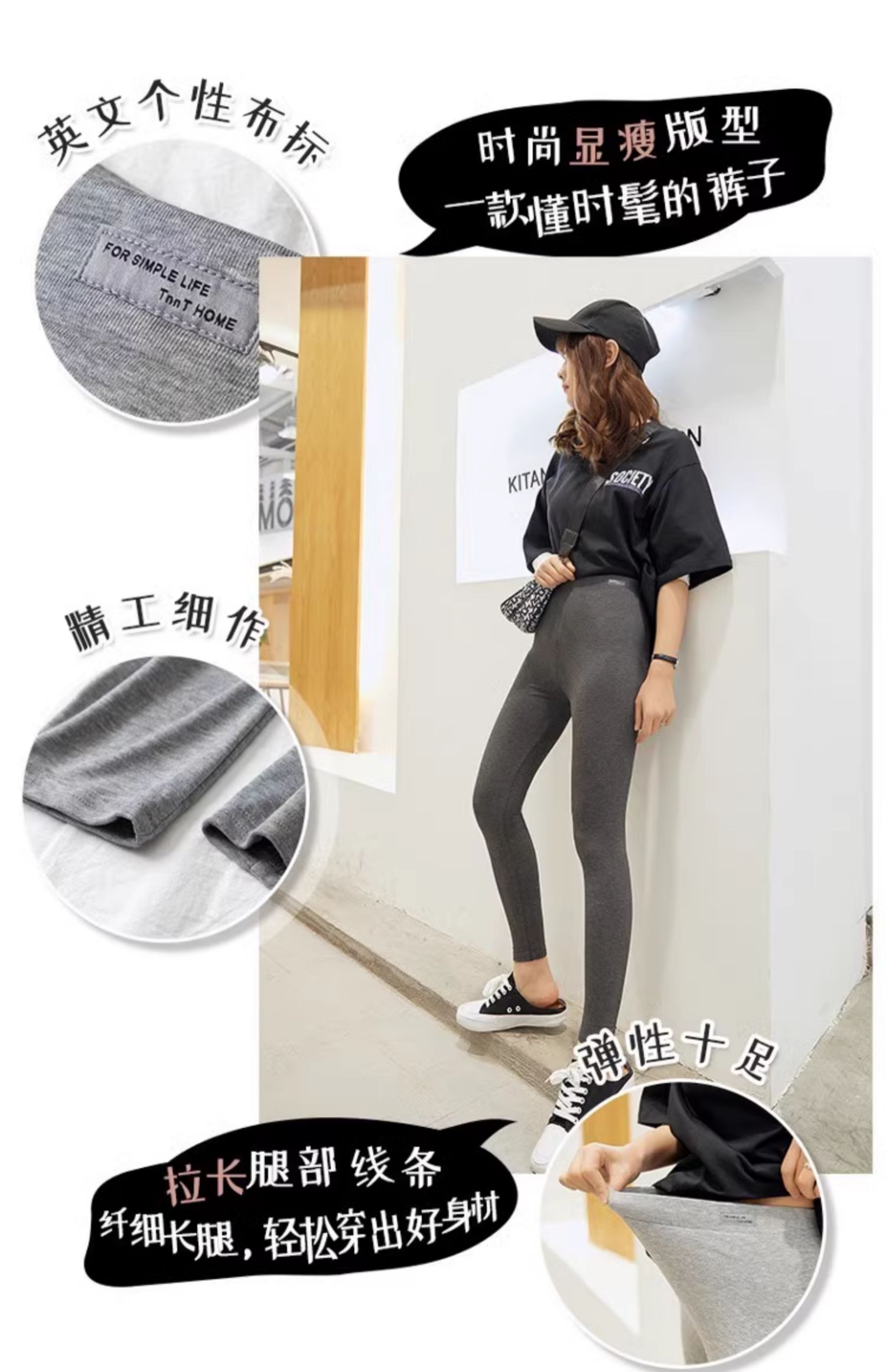 莫代尔打底裤女薄款胖mm春秋裤子高腰大码弹力纯棉紧身九分瑜伽裤