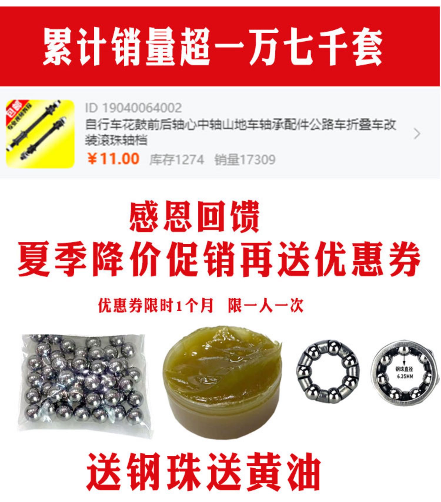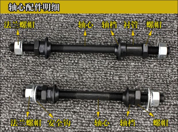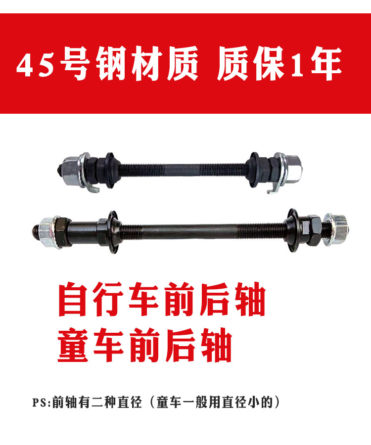 自行车花鼓前后轴中轴山地车轴承童车配件滚珠实心轴公路车轴心杆