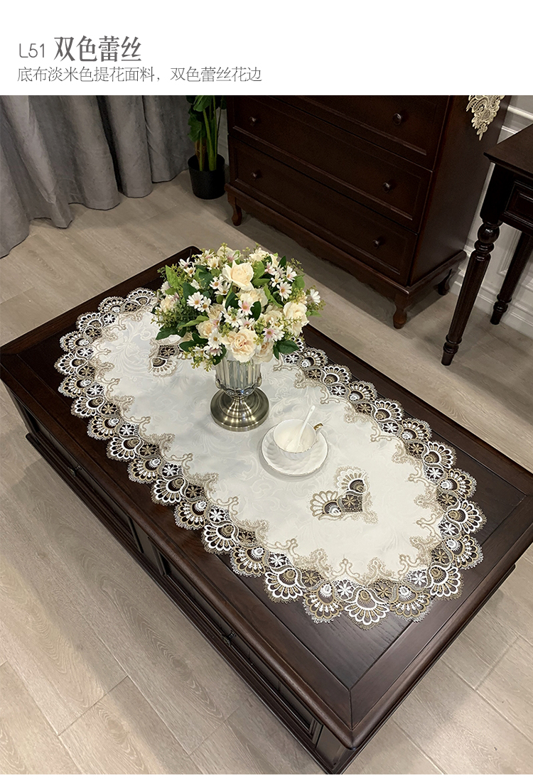 茶几桌布椭圆形北欧茶几垫美式新中式圆桌布艺蕾丝桌垫书桌餐桌布