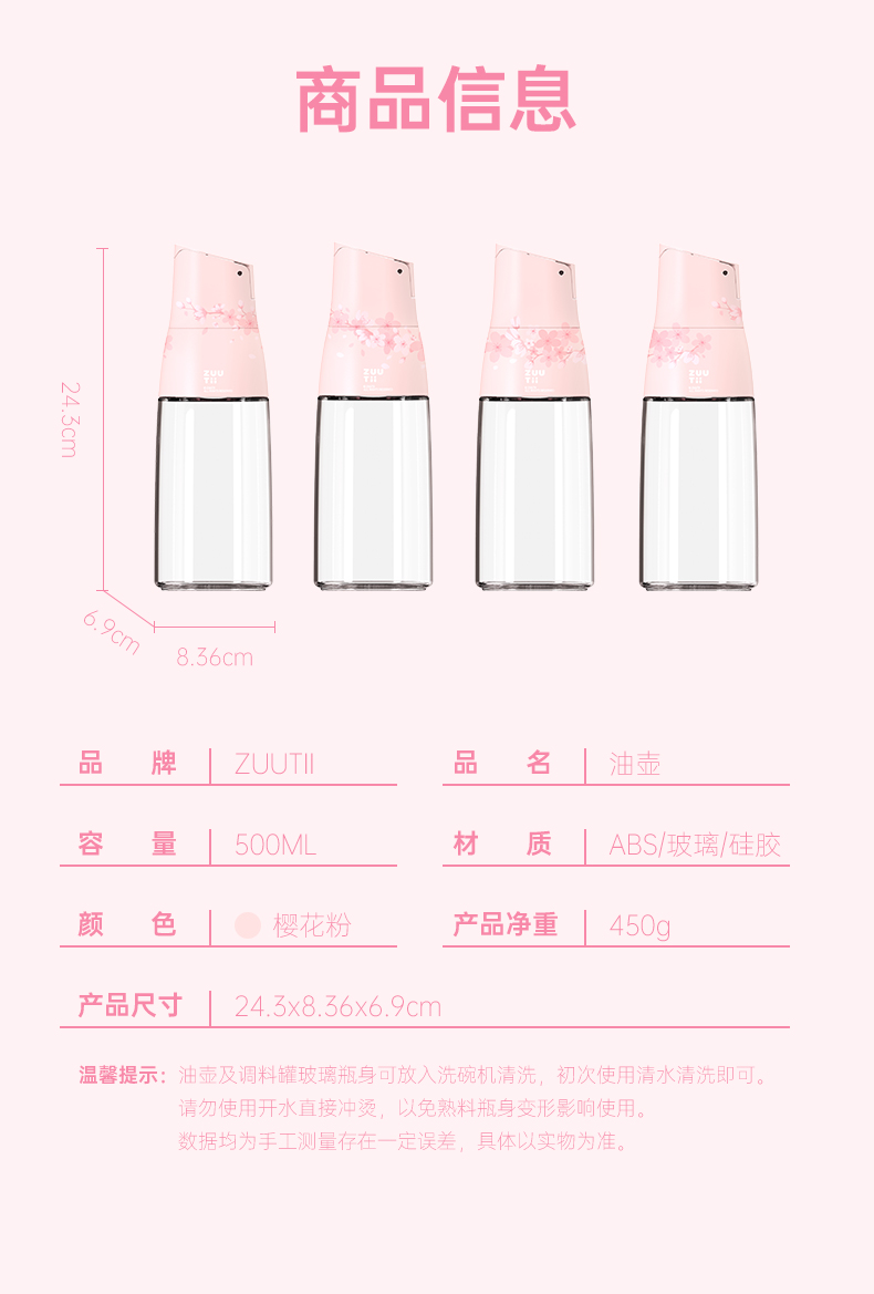 zuutii油瓶防漏油厨房家用收纳玻璃调味瓶套装春日限量樱花粉油壶