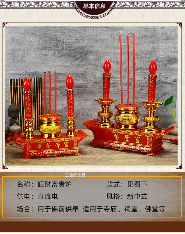 烛台 佛灯led香炉奉灯供佛蜡烛台供财神供灯拜神关公佛龛供灯佛具