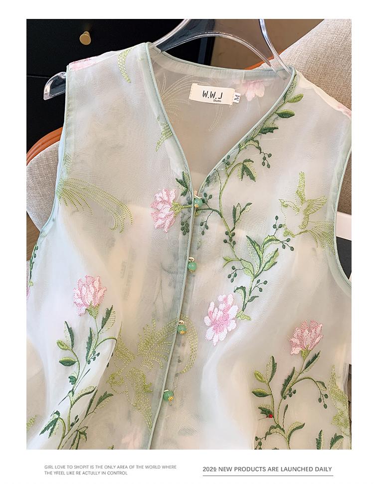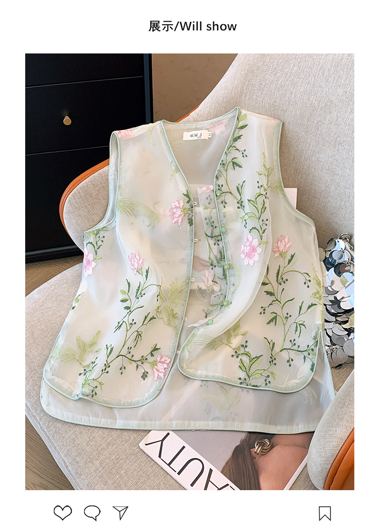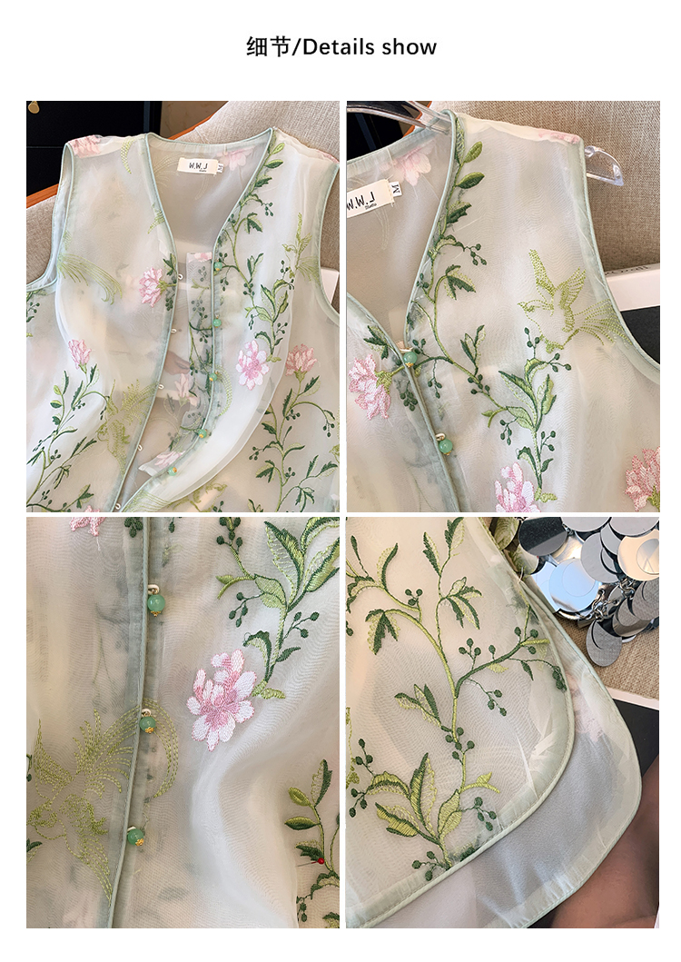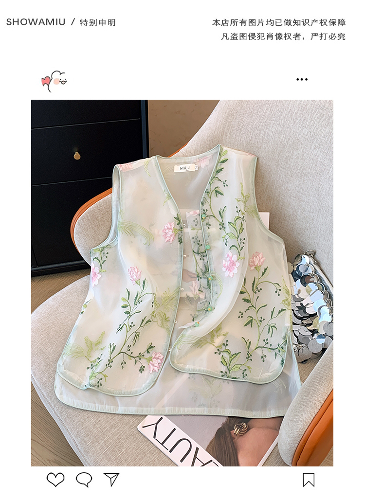 新中式国风刺绣马甲女夏季薄款欧货宽松外穿别致马夹无袖坎肩上衣