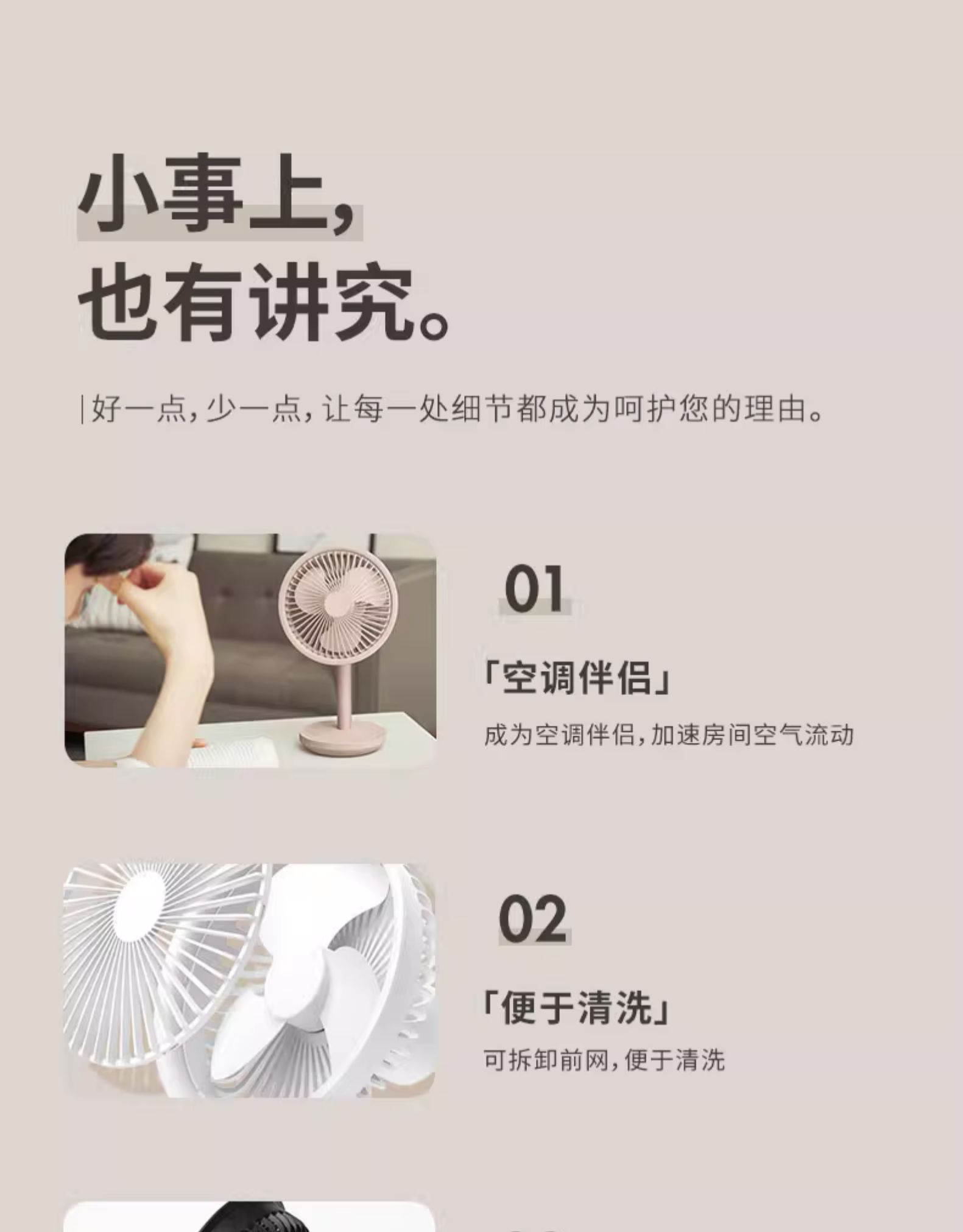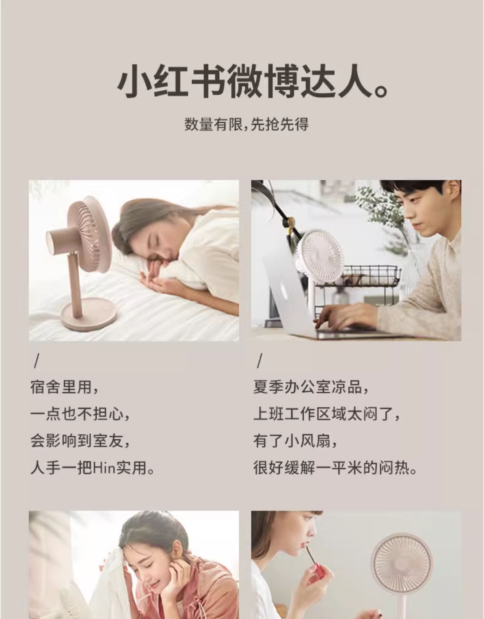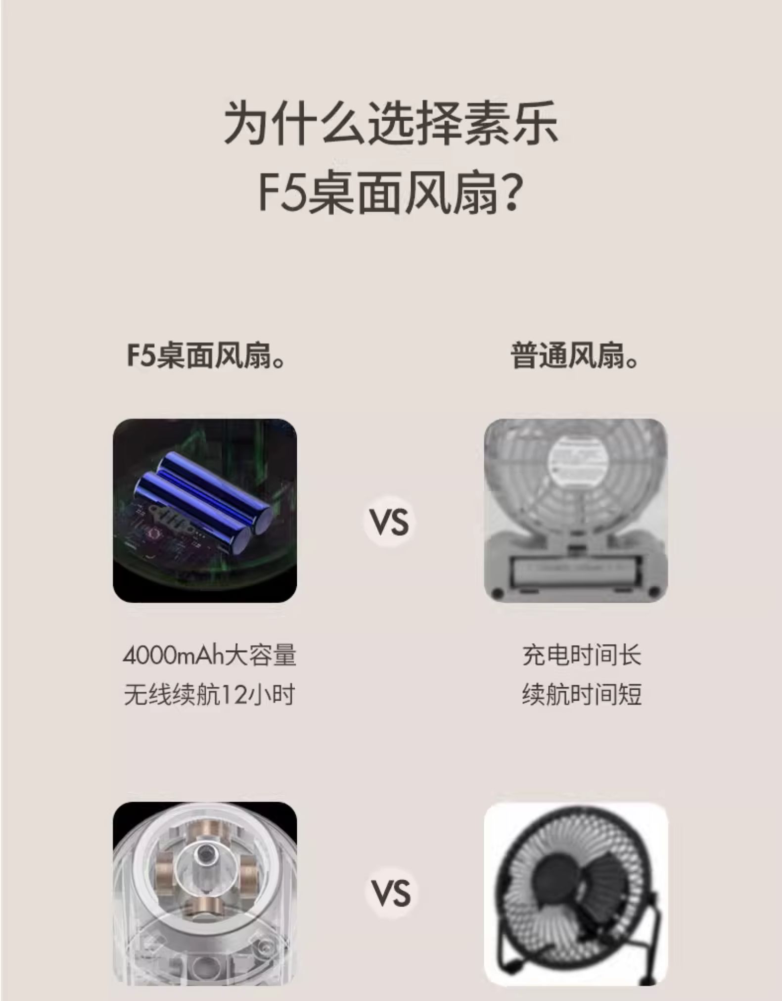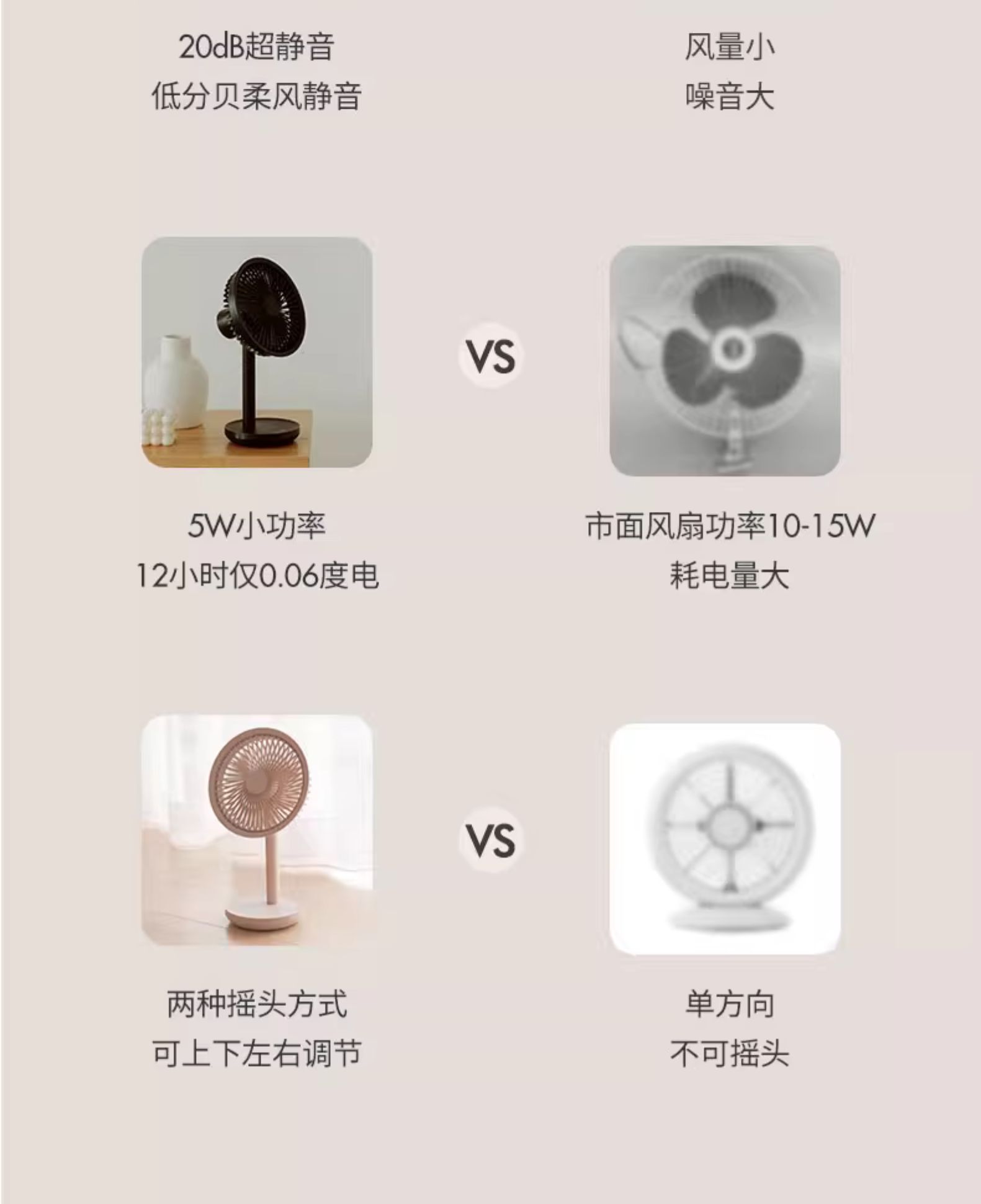 素乐桌面小风扇可充电办公室学生宿舍桌上USB小型家用自动摇头小电风扇静音台式大风力电扇迷你卧室降温神器