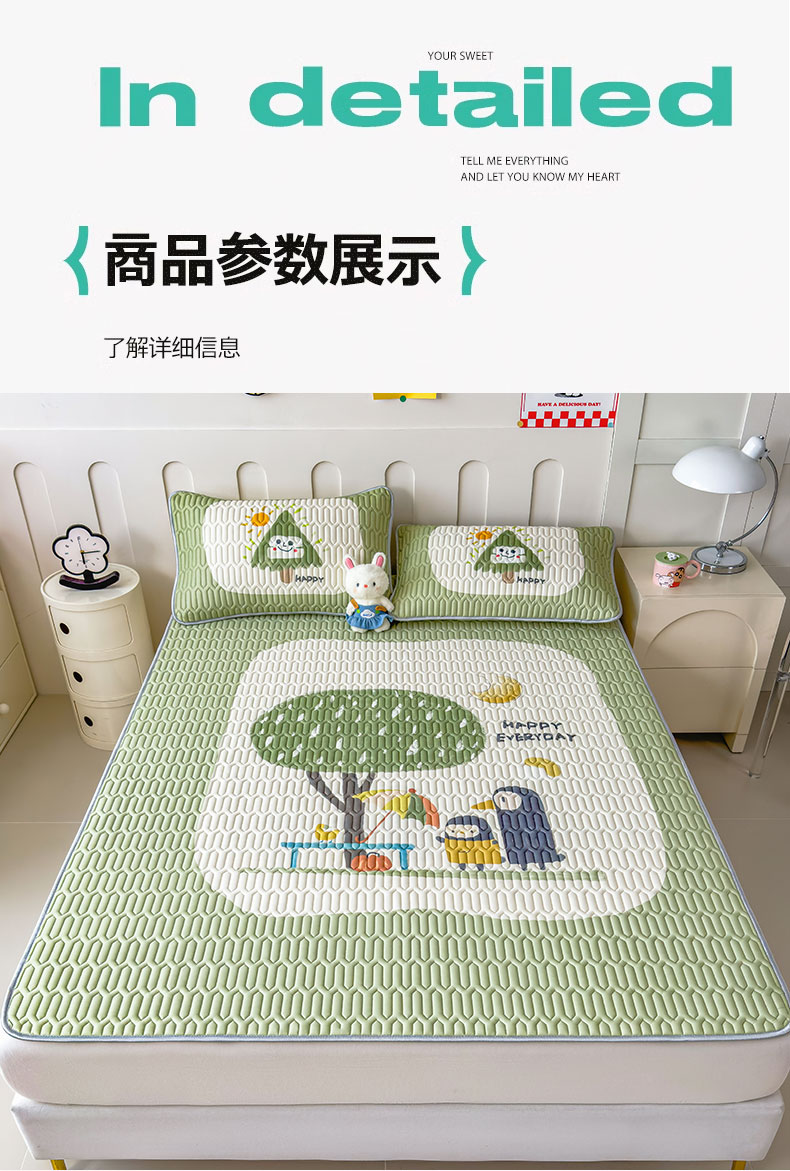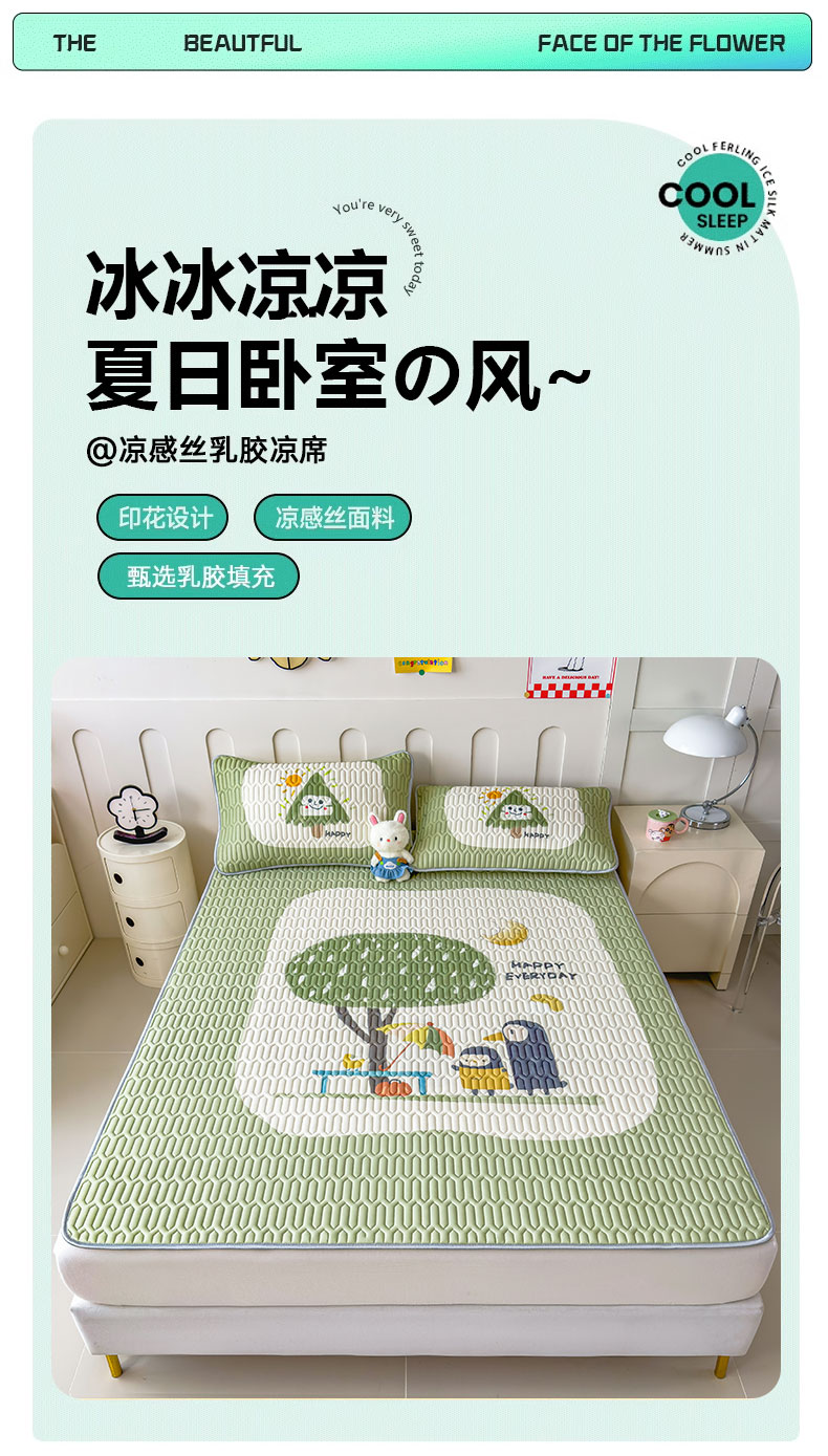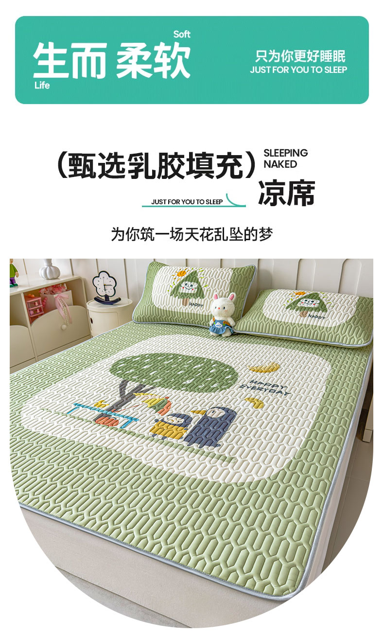 冰丝乳胶凉席三件套2025新款夏季床单空调软席子a类母婴级可水洗