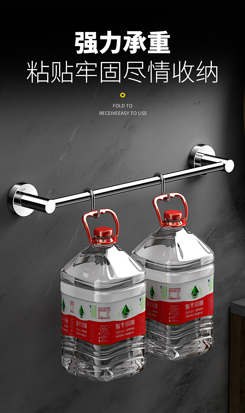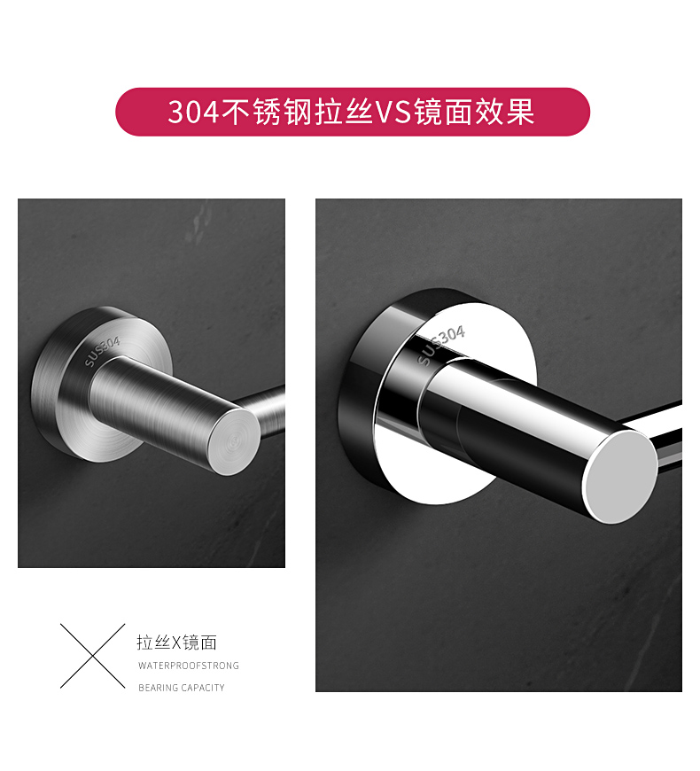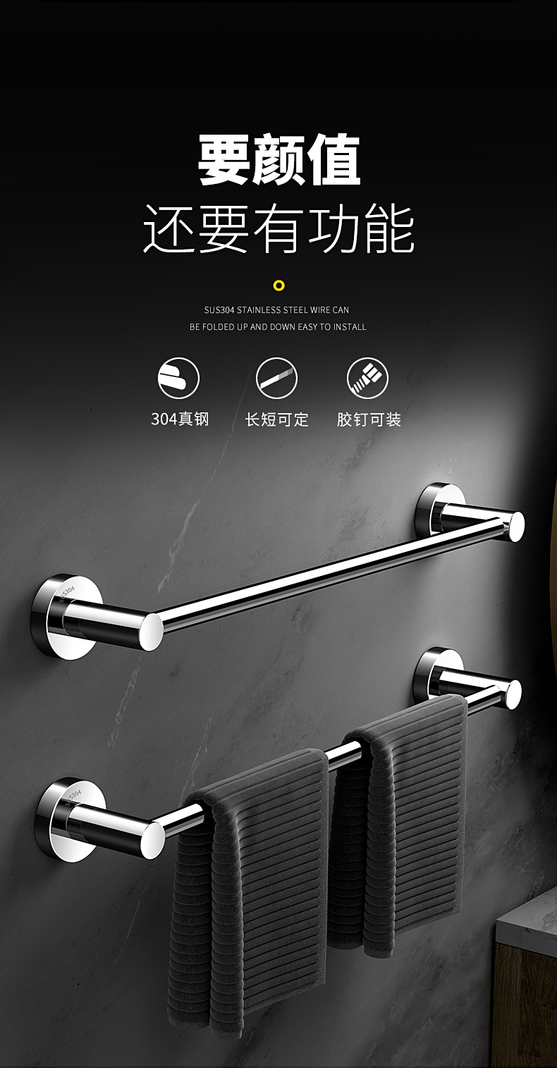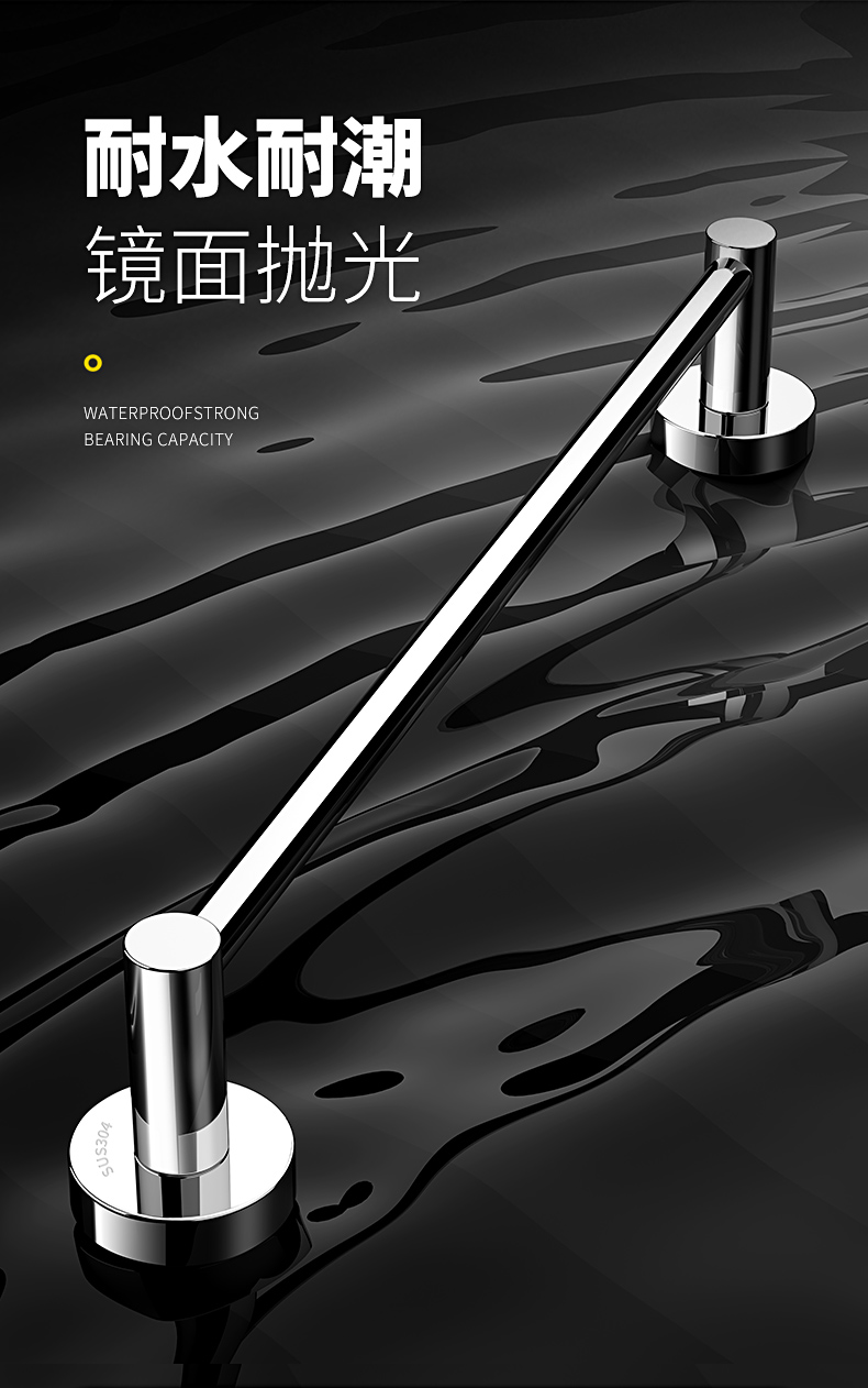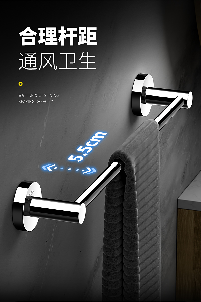 毛巾杆单杆免打孔304不锈钢卫生间毛巾架加长厕所浴室浴巾置物架