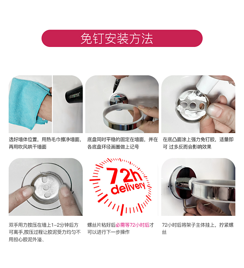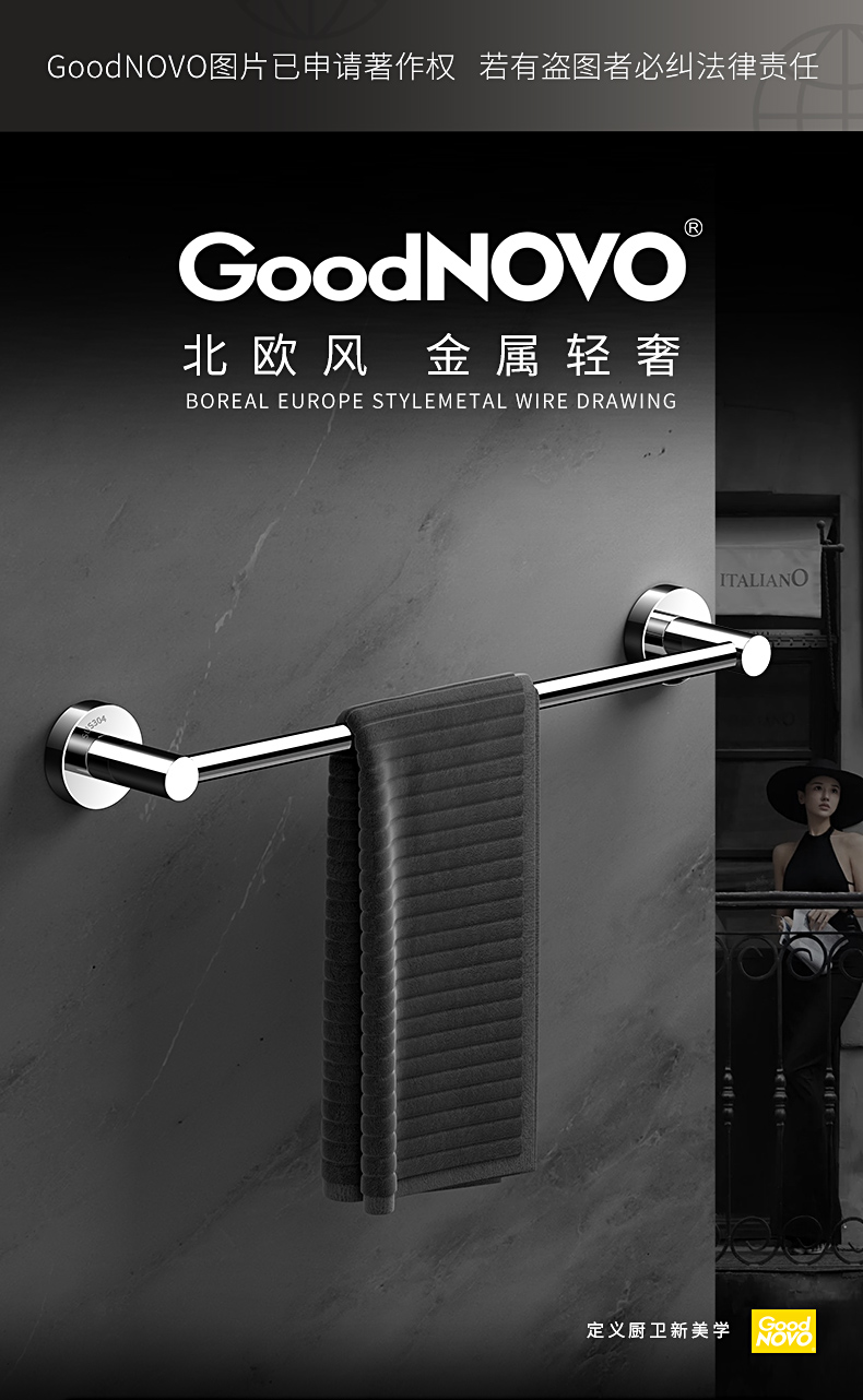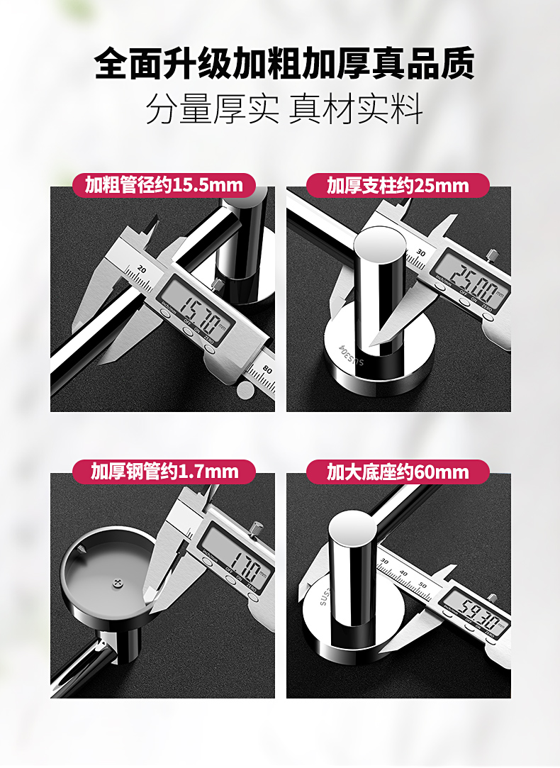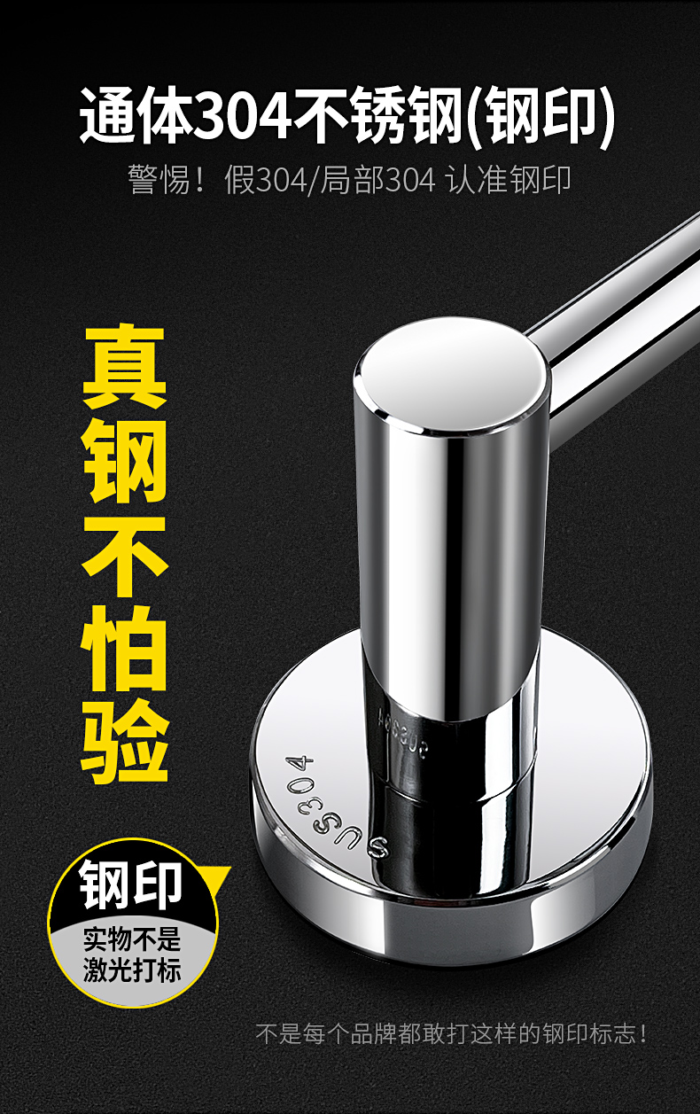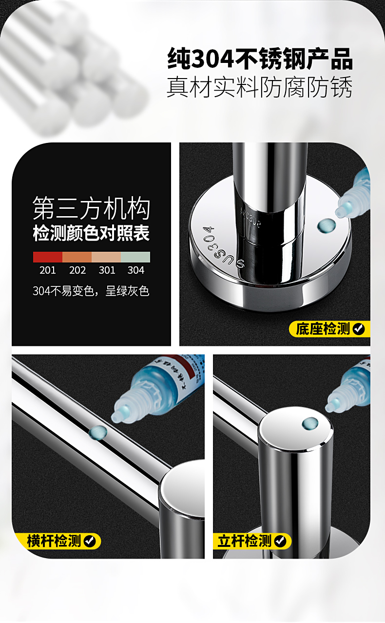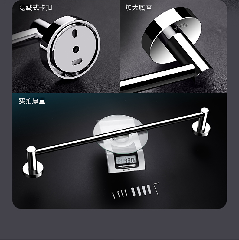 毛巾杆单杆免打孔304不锈钢卫生间毛巾架加长厕所浴室浴巾置物架