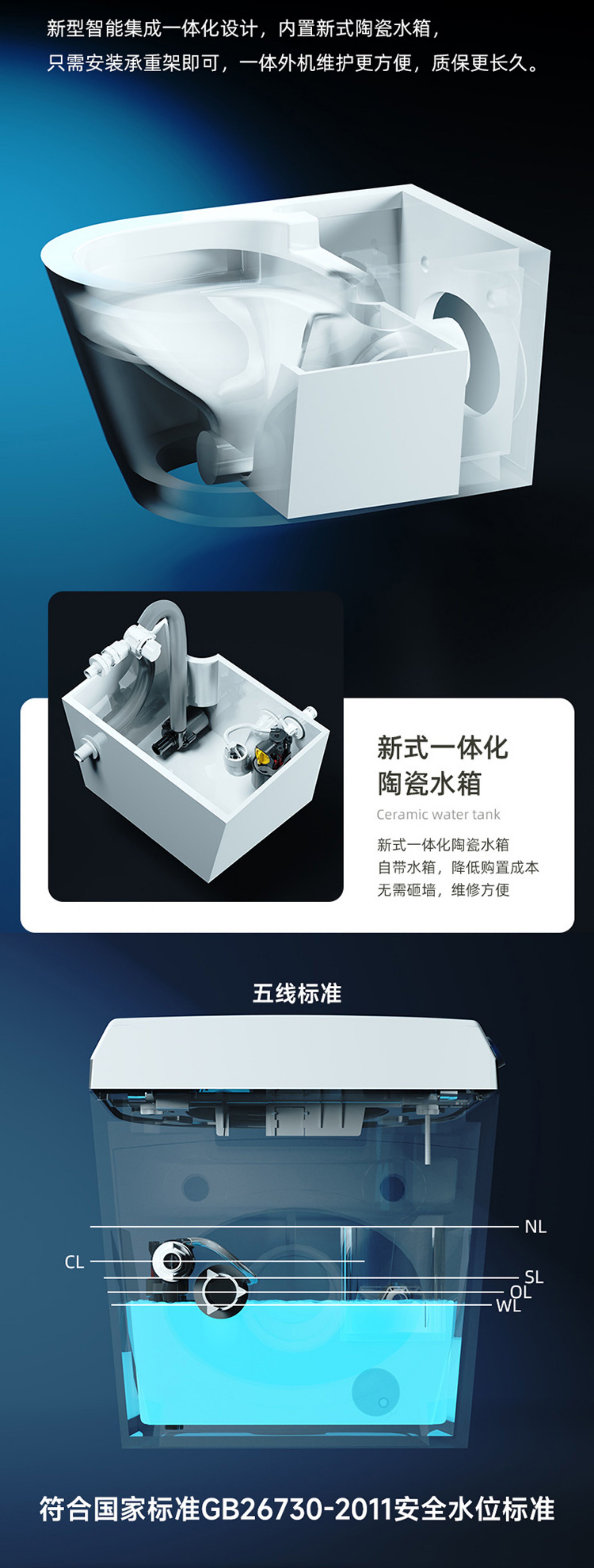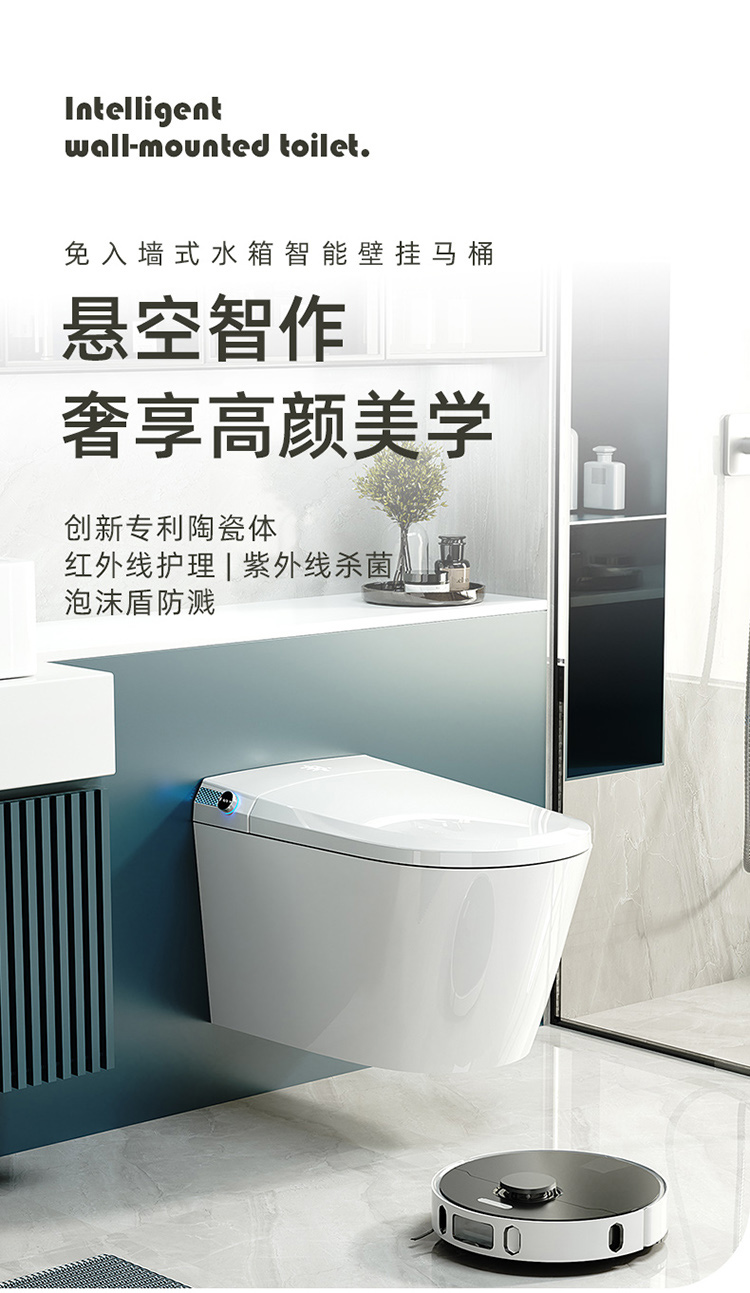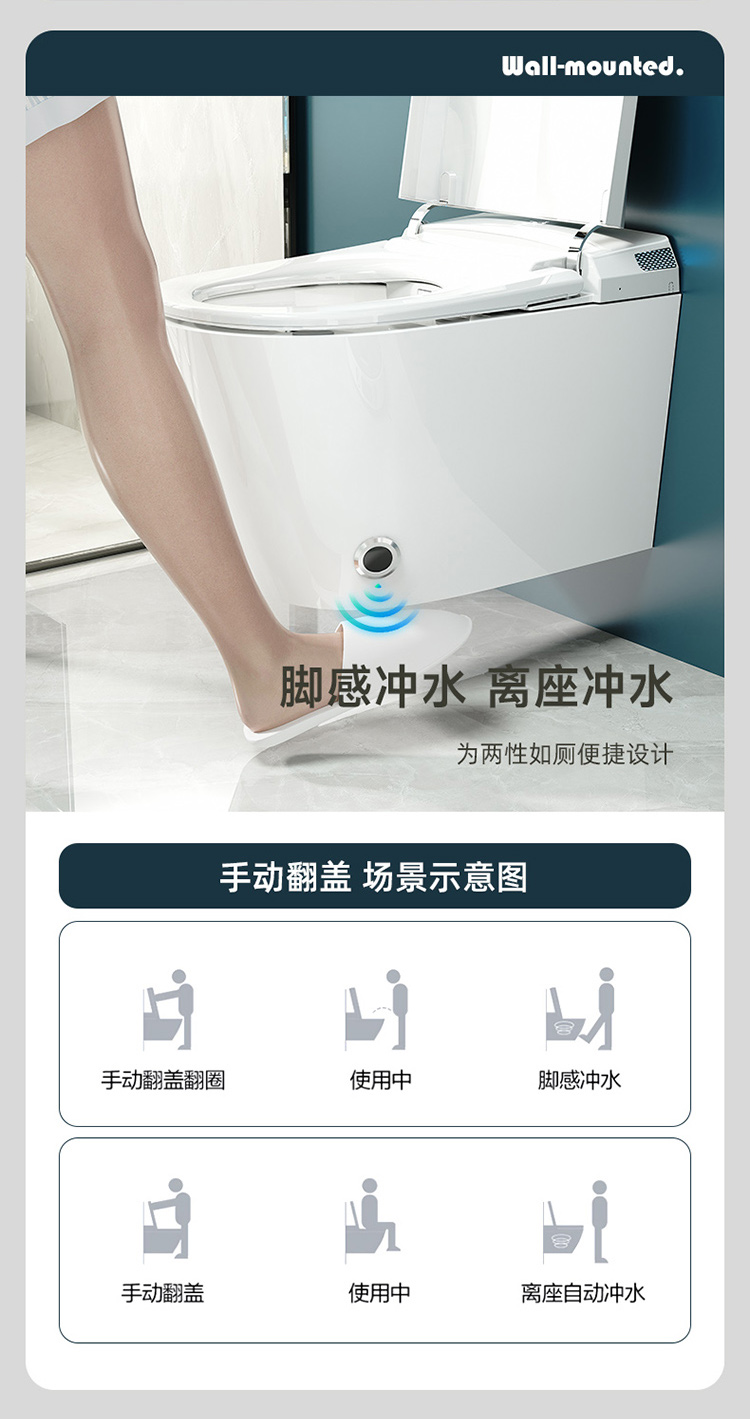 壁挂式智能马桶全自动虹吸冲水悬空内置泡沫盾入墙式挂壁坐便器