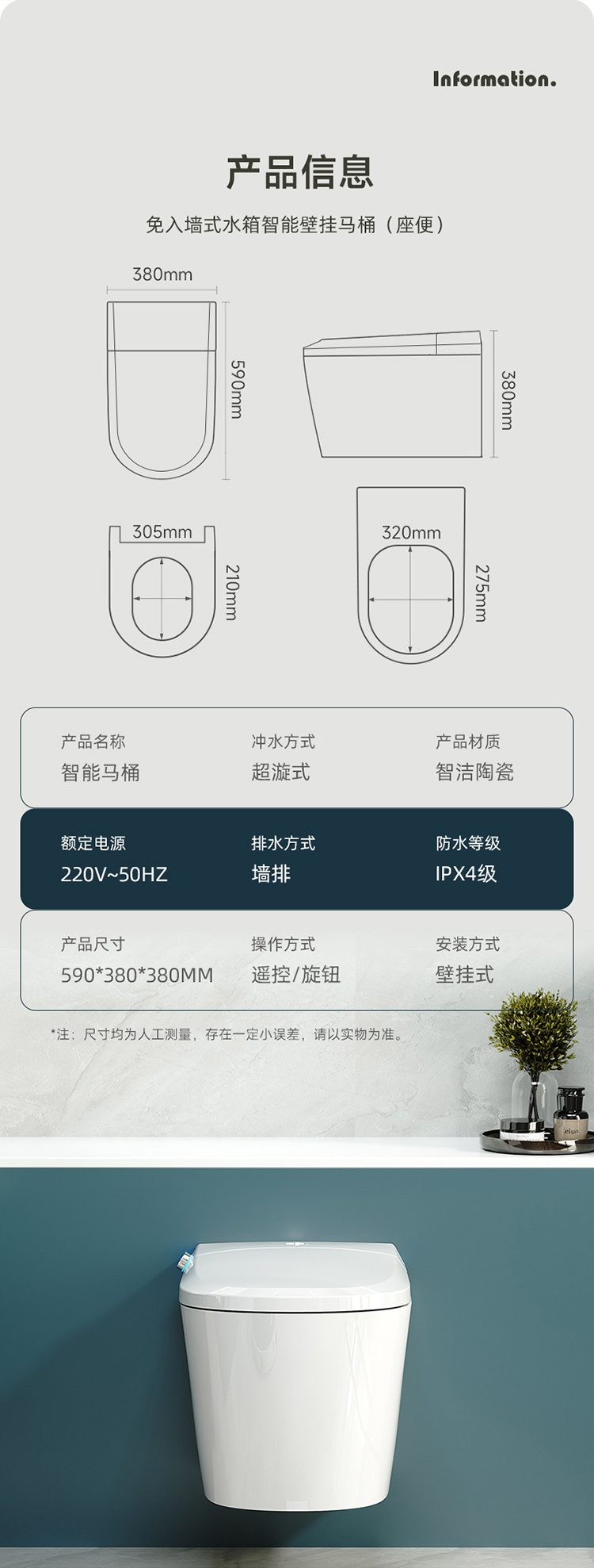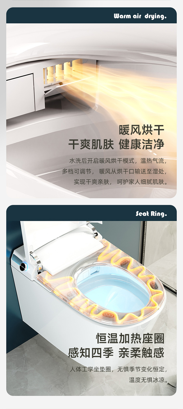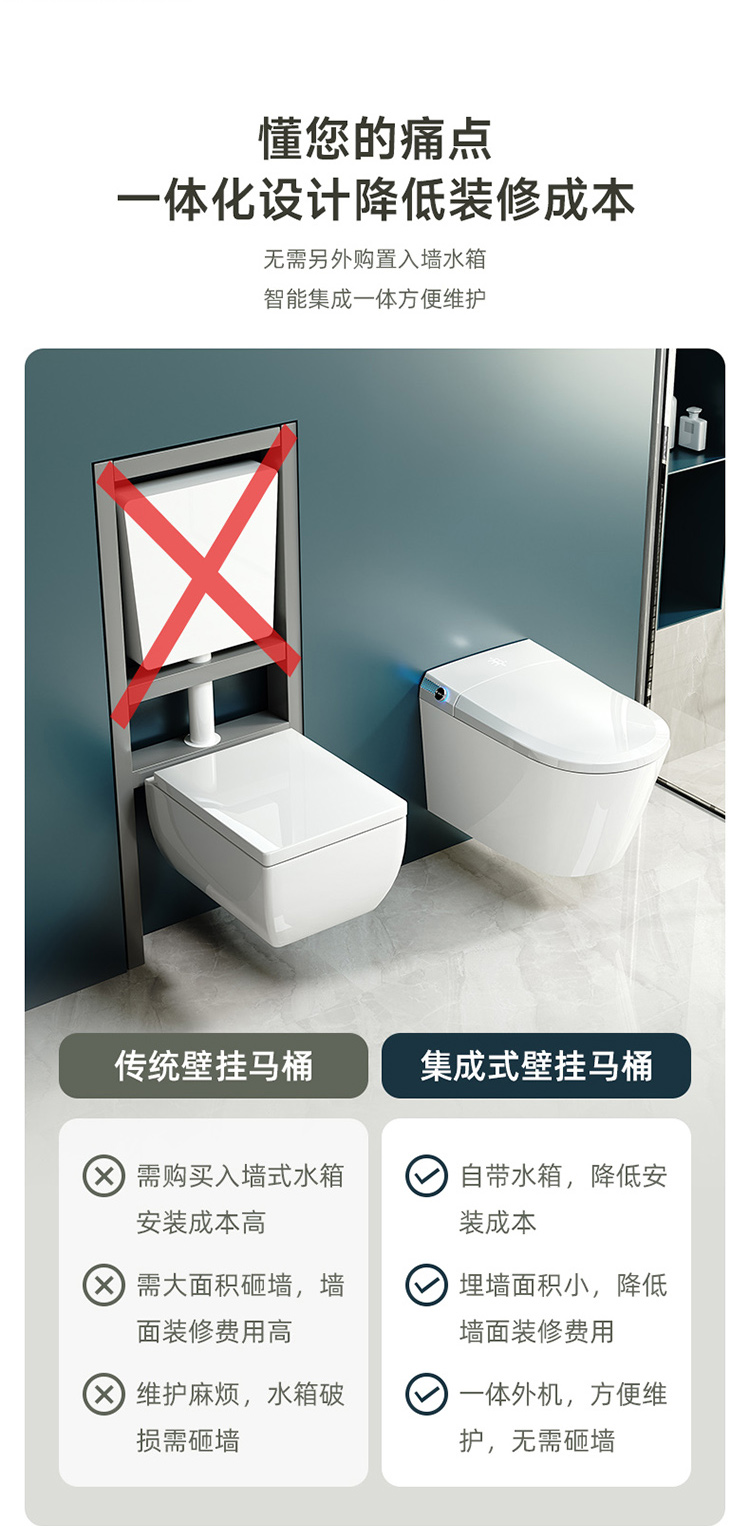 壁挂式智能马桶全自动虹吸冲水悬空内置泡沫盾入墙式挂壁坐便器