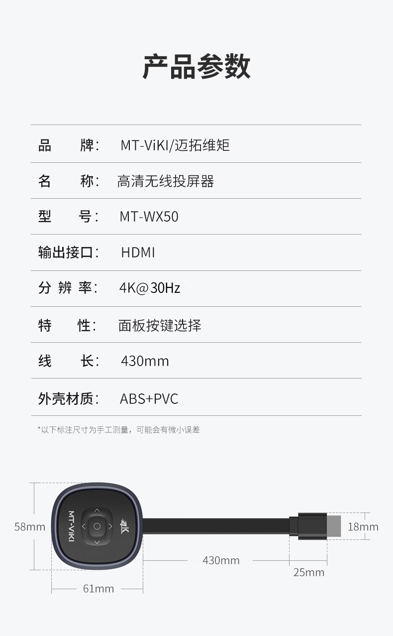 迈拓维矩WX50无线投屏器手机平板连HDMI电视机投影仪安卓苹果投屏