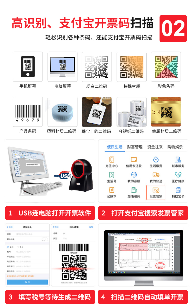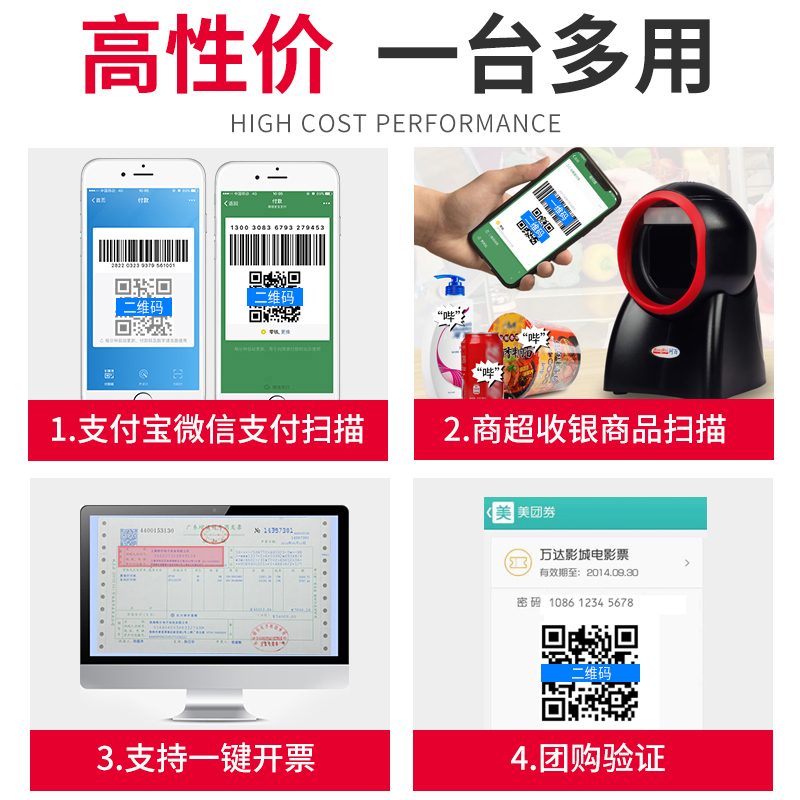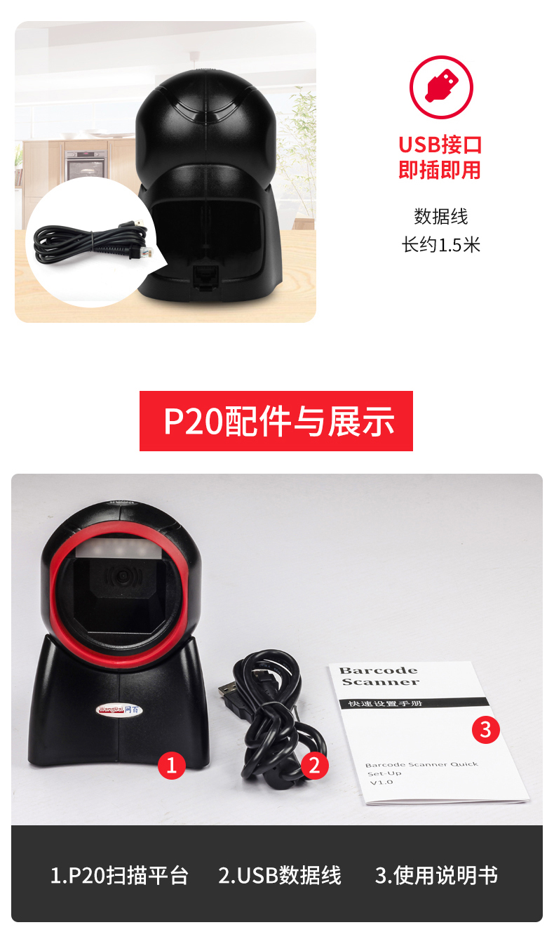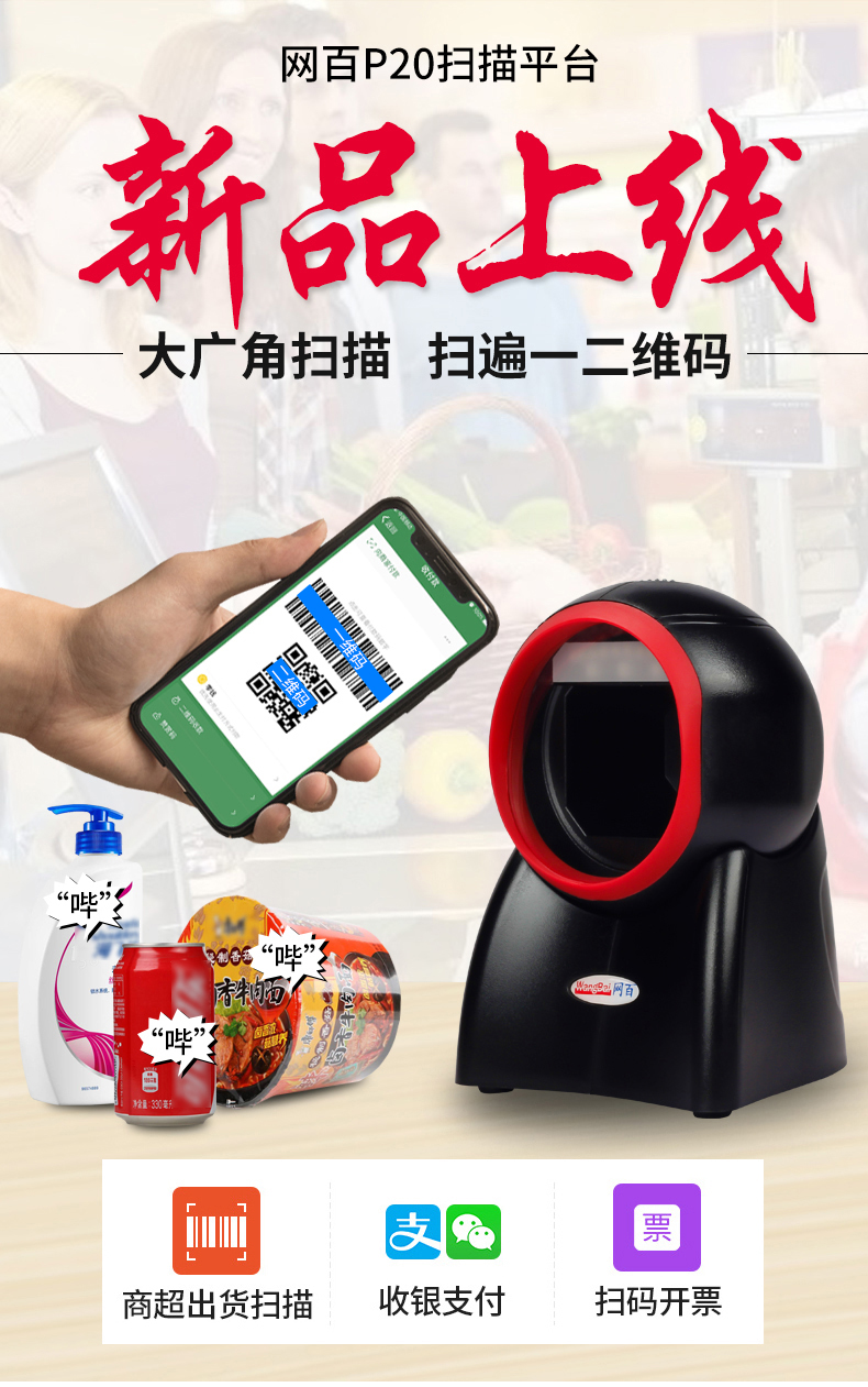 网百P20扫码器扫描平台商品条码二维码扫码枪超市仓库药店医保卡收银台扫码机一体机商用付款码一维码扫描器