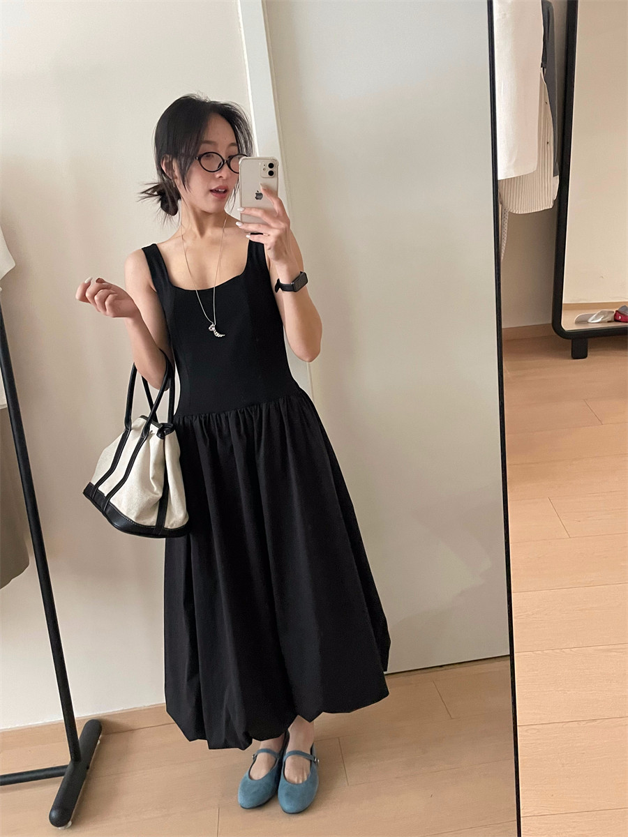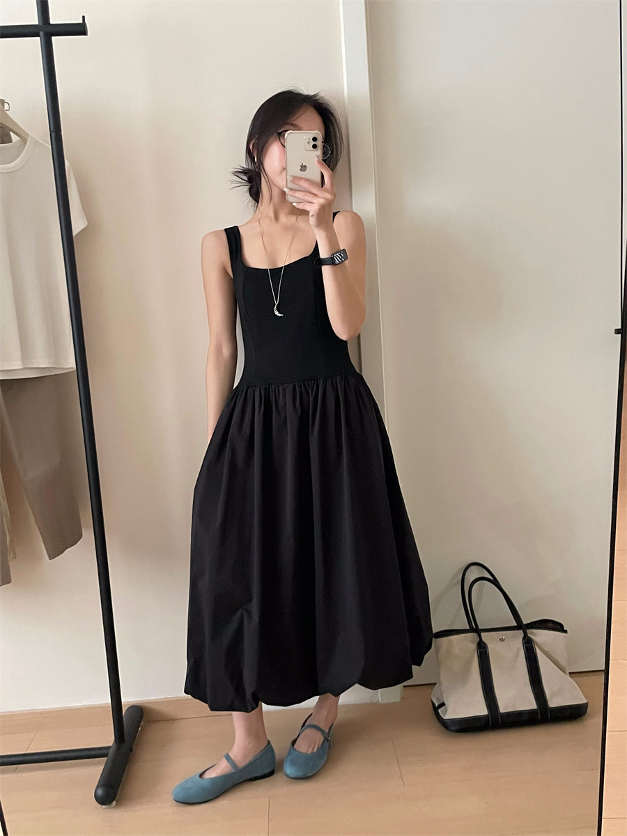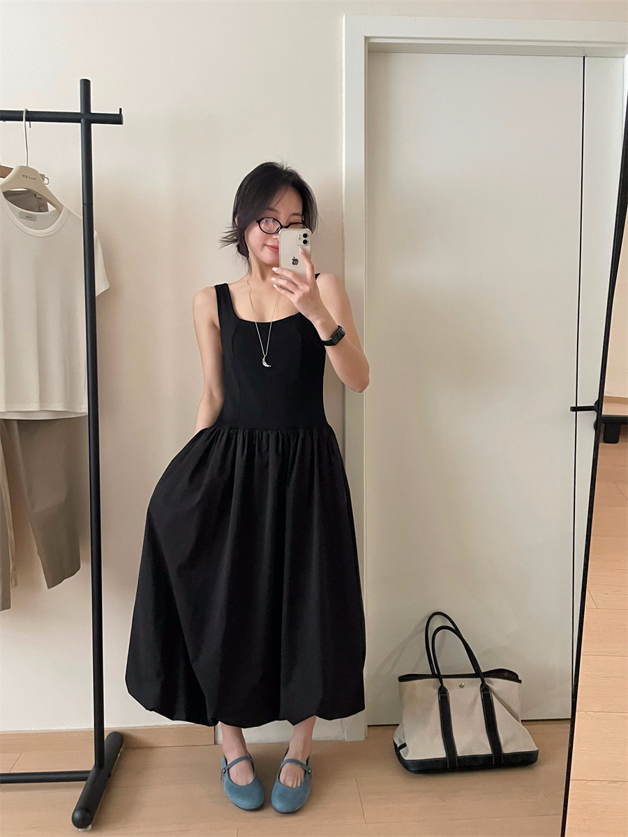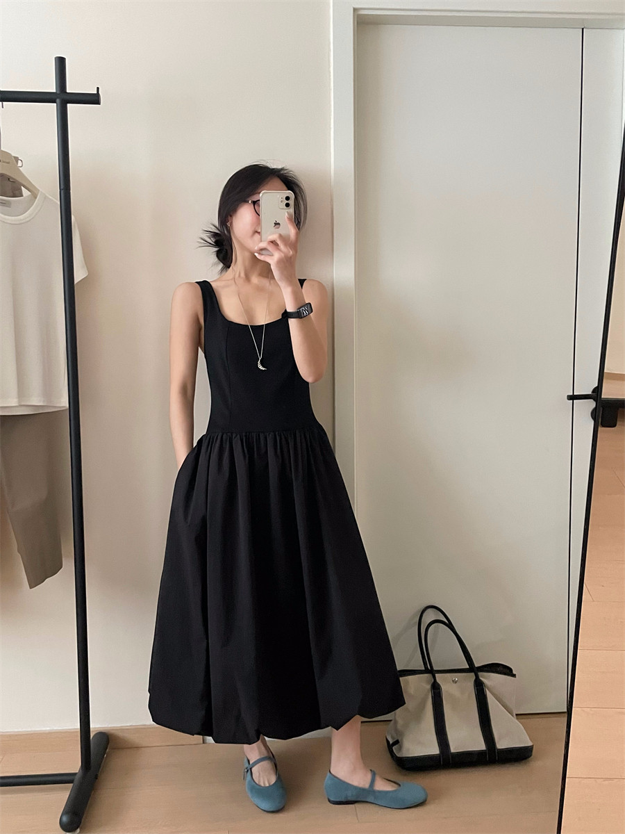 韩版气质修身遮肉显瘦背心裙2025夏季新款内搭百搭长款花苞连衣裙