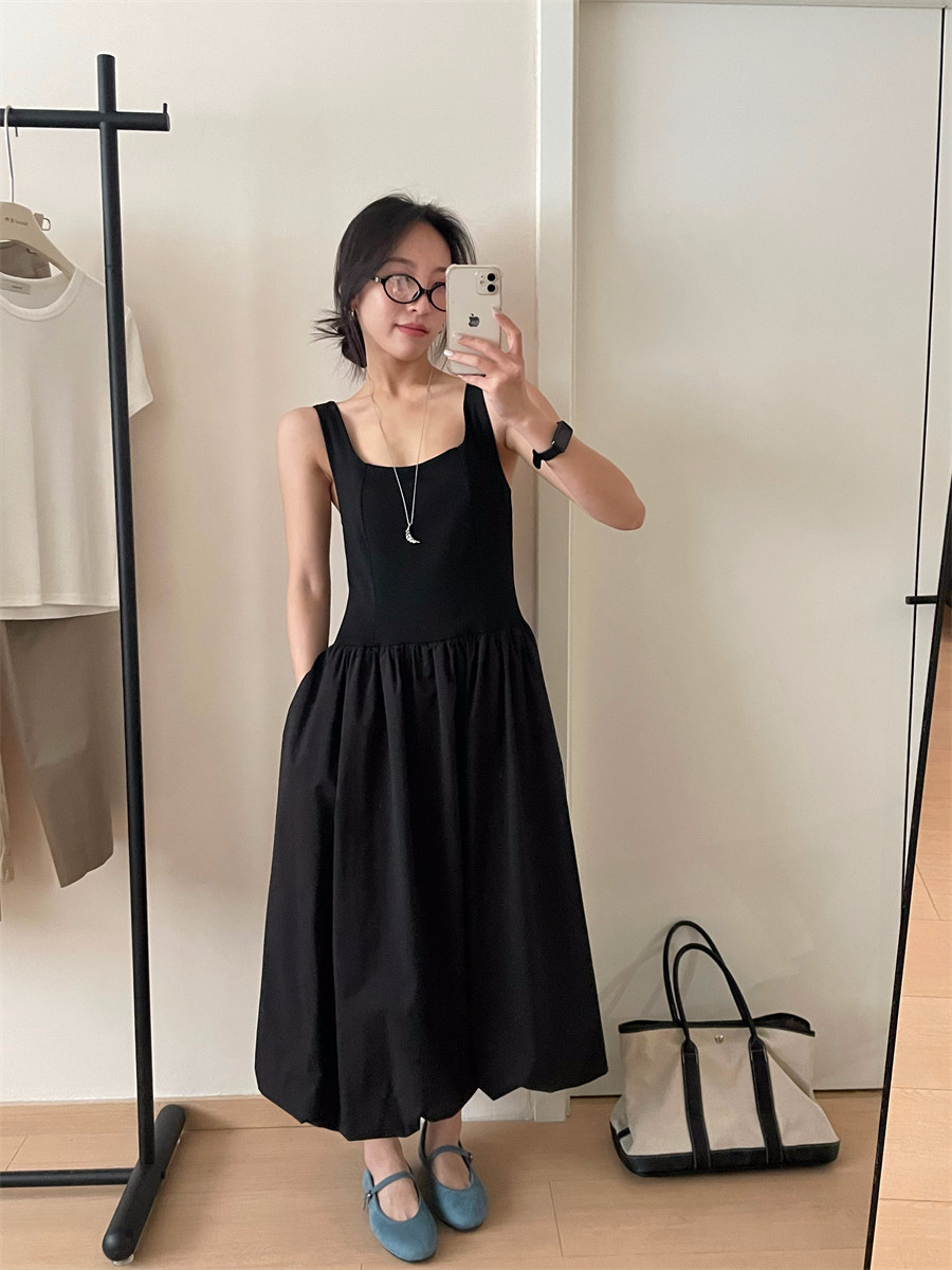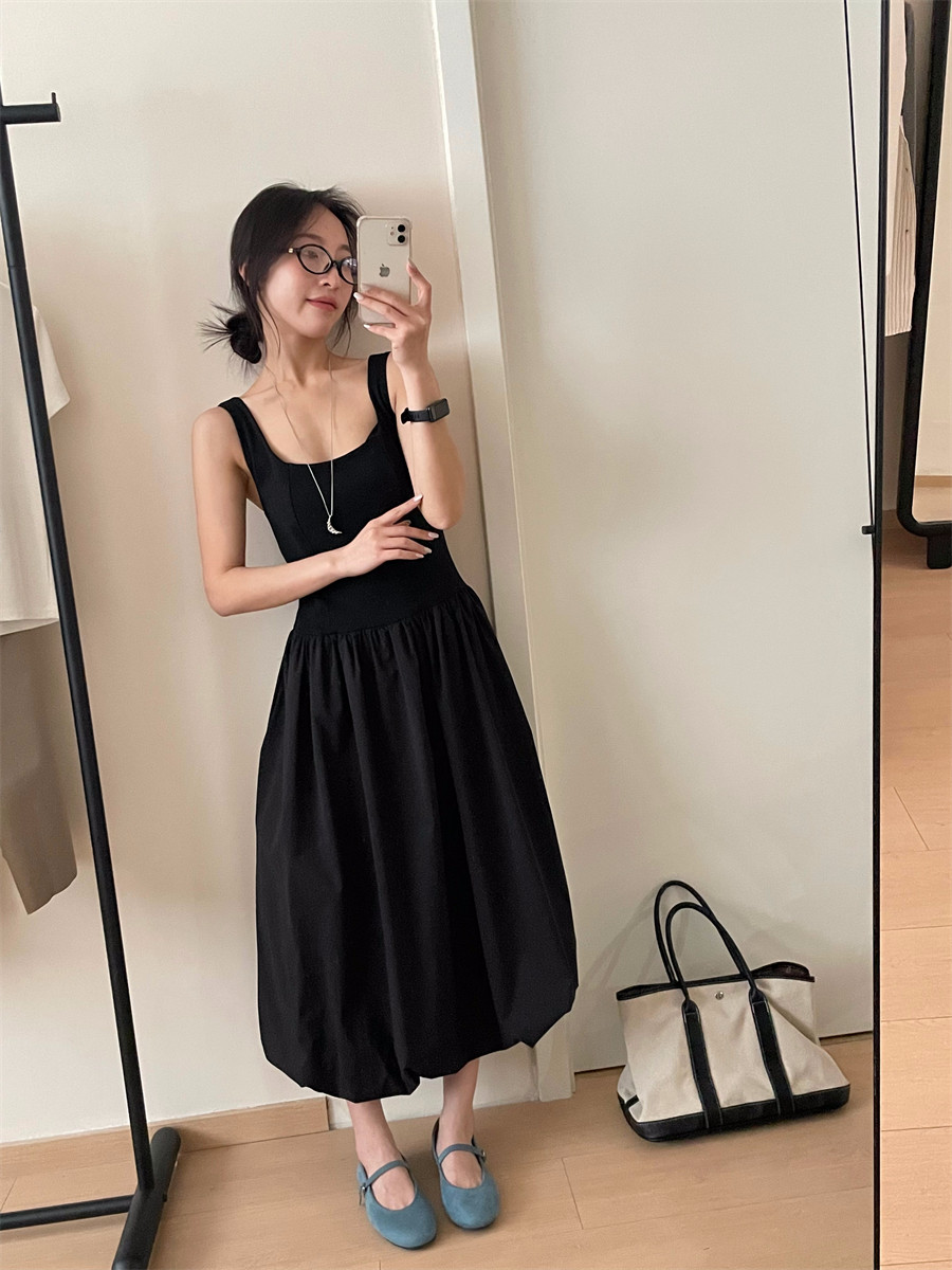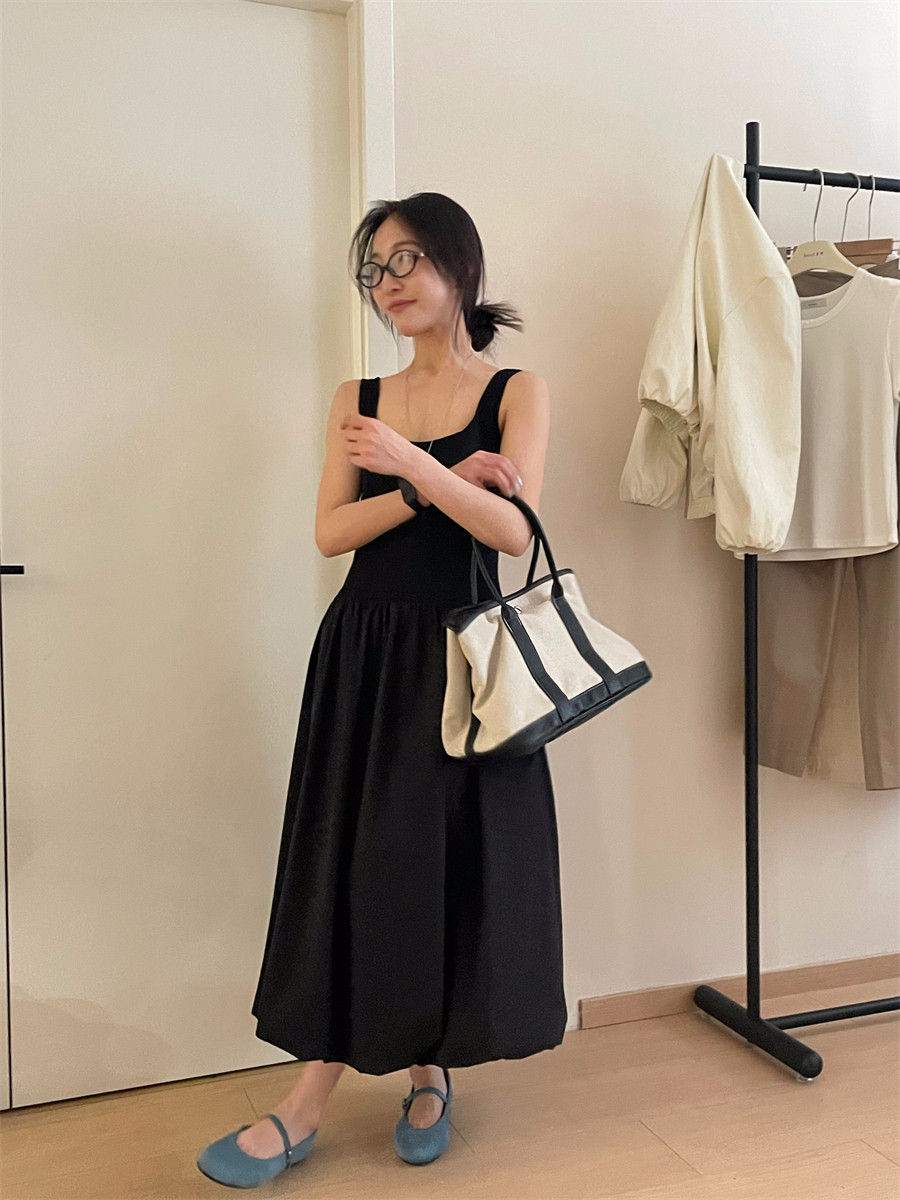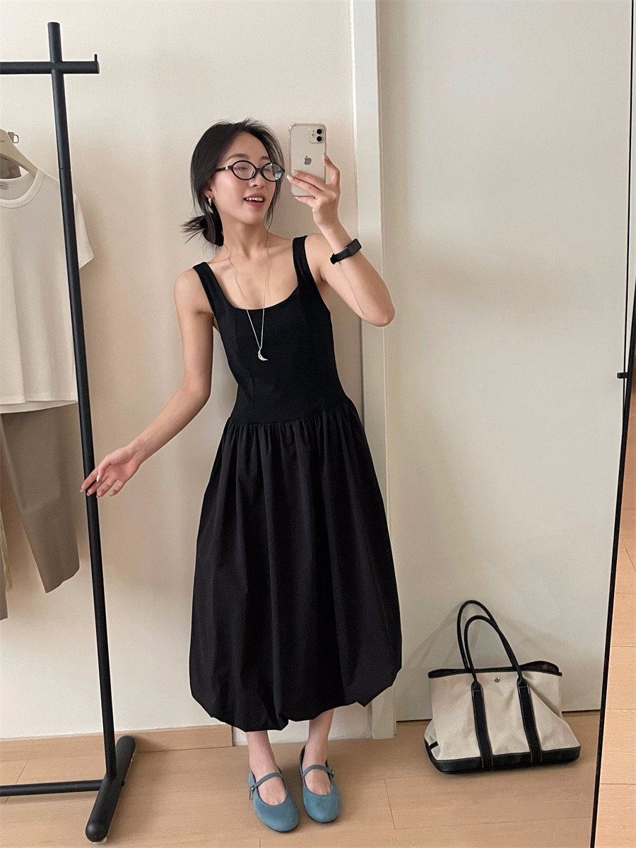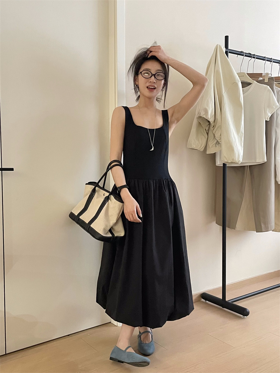 韩版气质修身遮肉显瘦背心裙2025夏季新款内搭百搭长款花苞连衣裙
