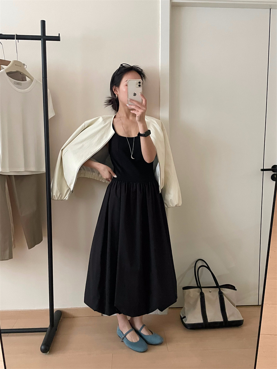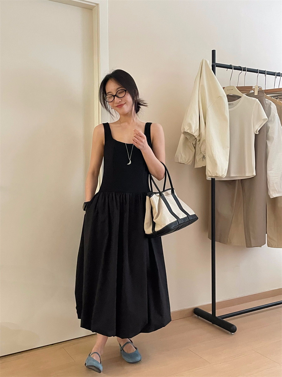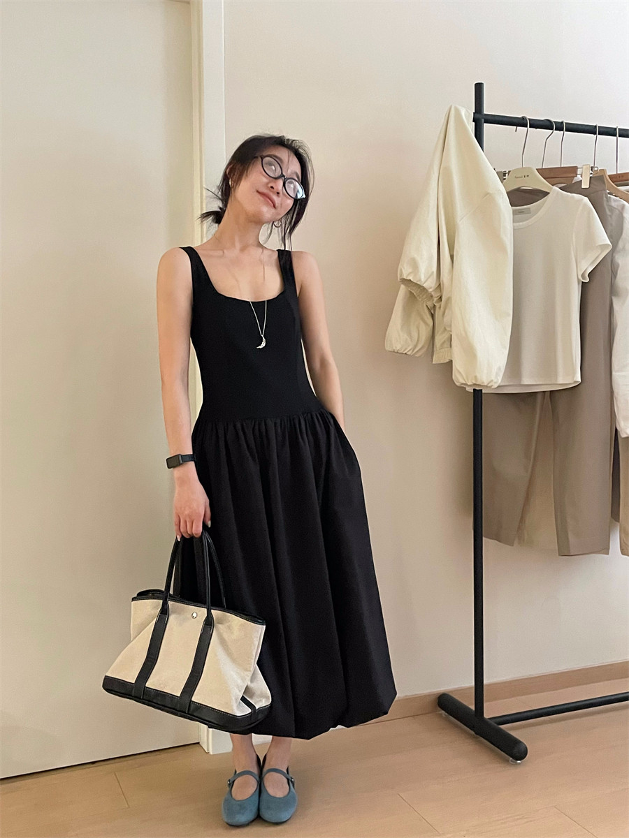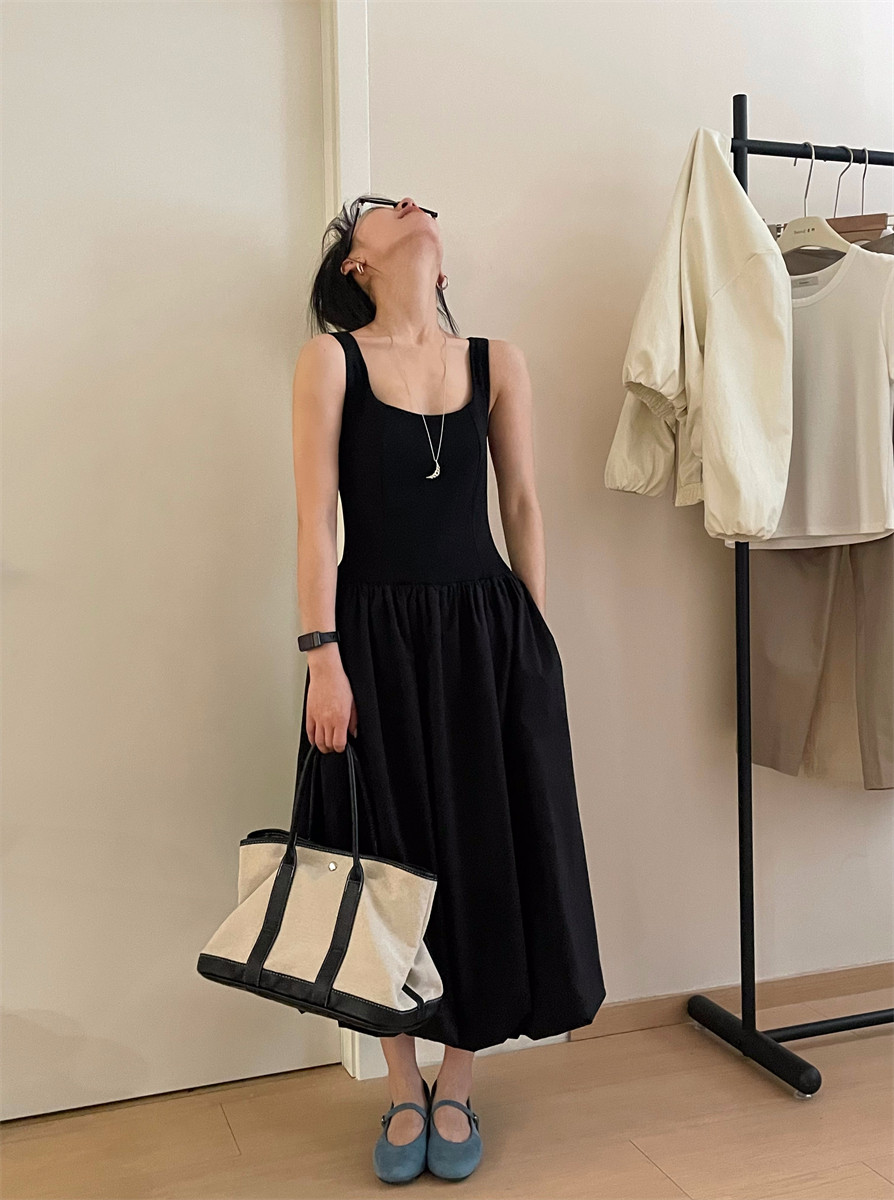 韩版气质修身遮肉显瘦背心裙2025夏季新款内搭百搭长款花苞连衣裙