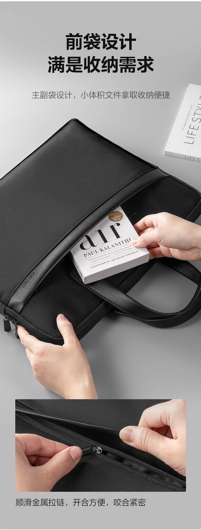 得力文件袋手提电脑包公文包皮质提手袋资料袋商务拉链多层男办公包文件公文包会议大容量办公用品收纳
