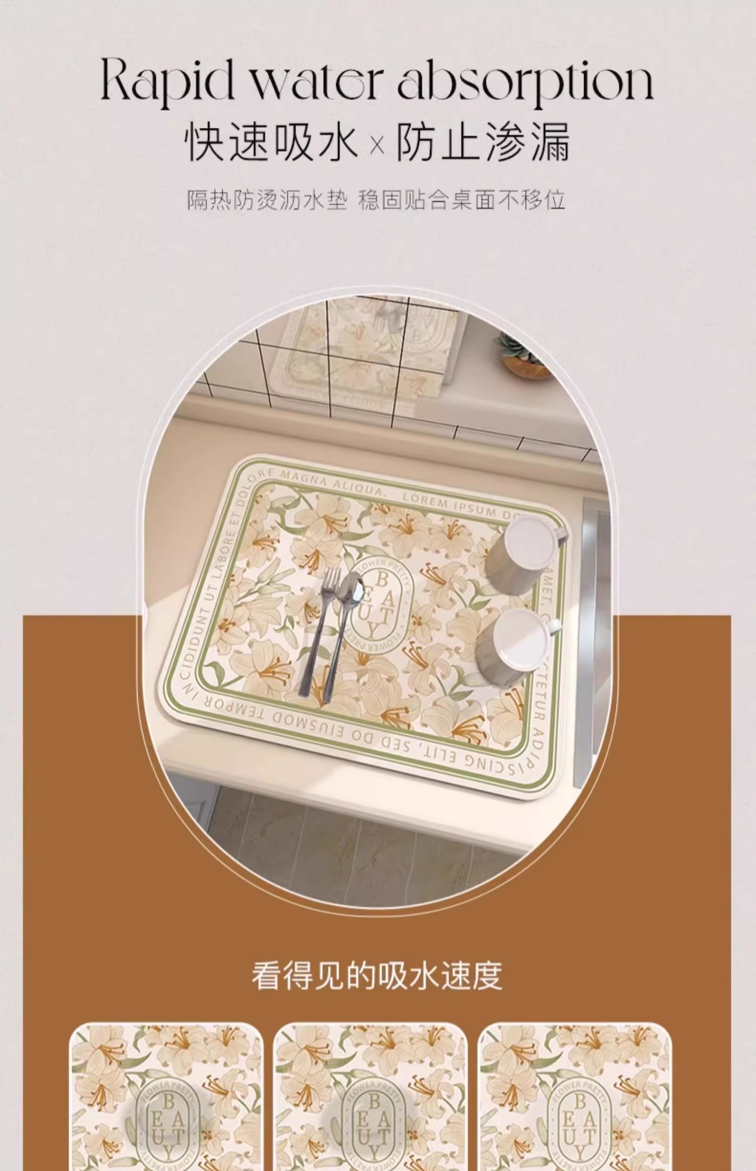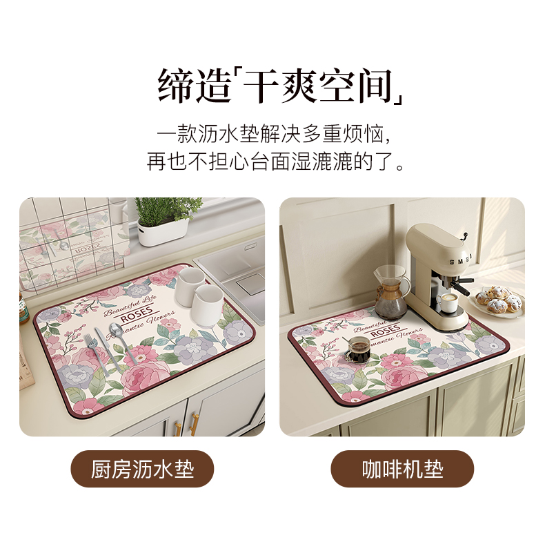 厨房沥水垫台面硅藻泥吸水垫碗碟控水垫咖啡机垫桌面隔热茶水垫子